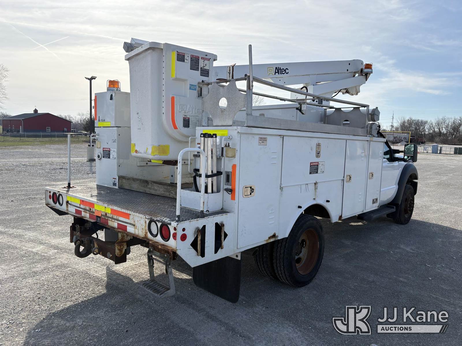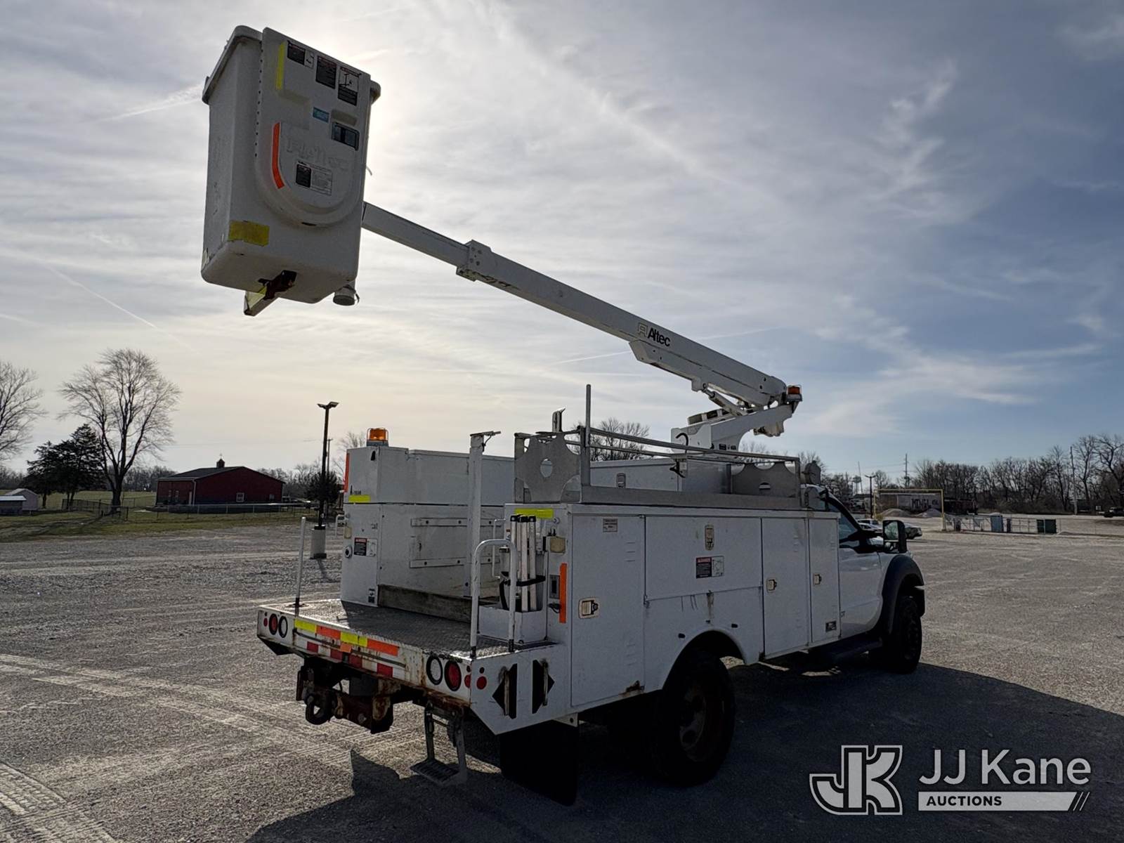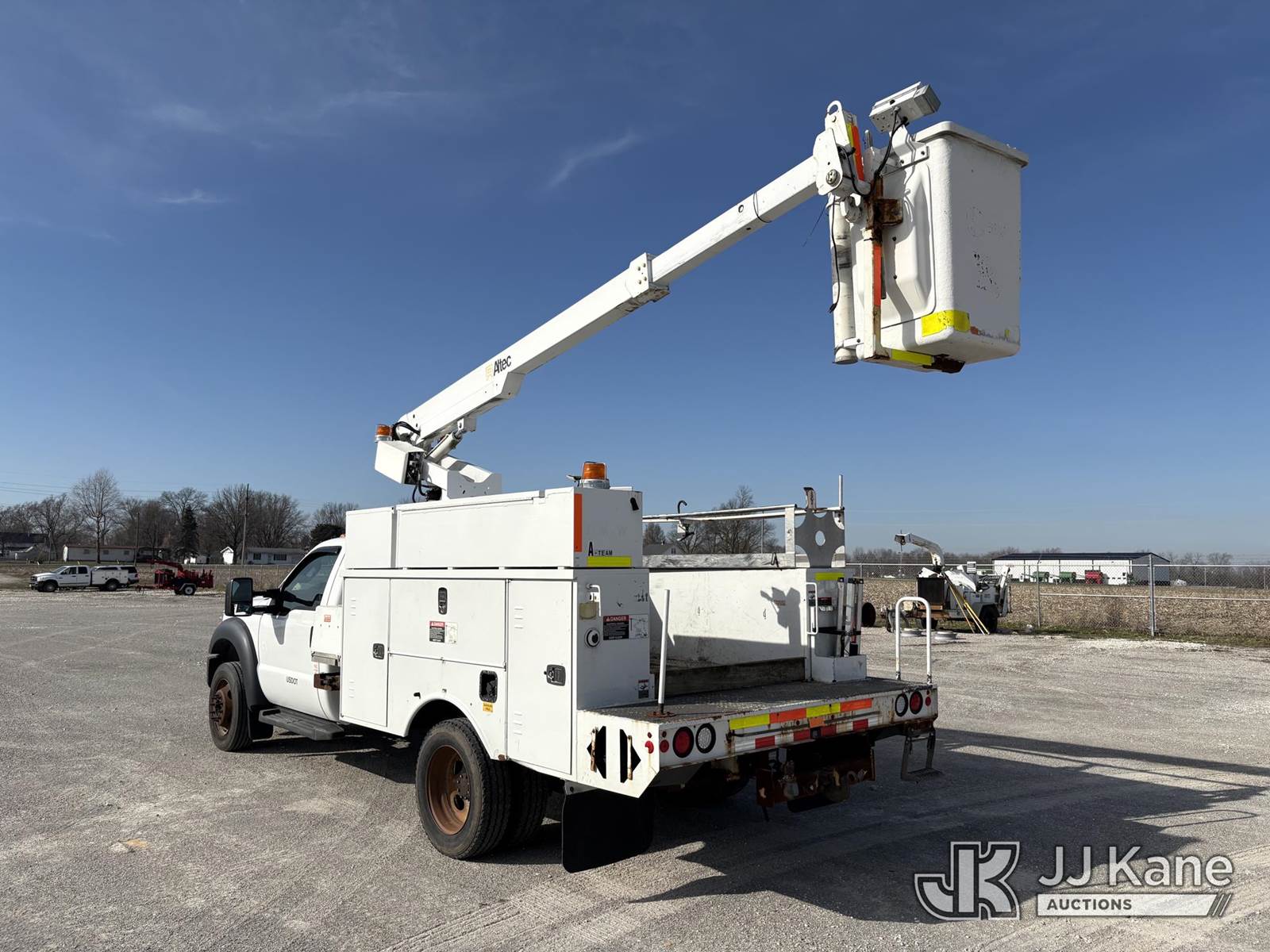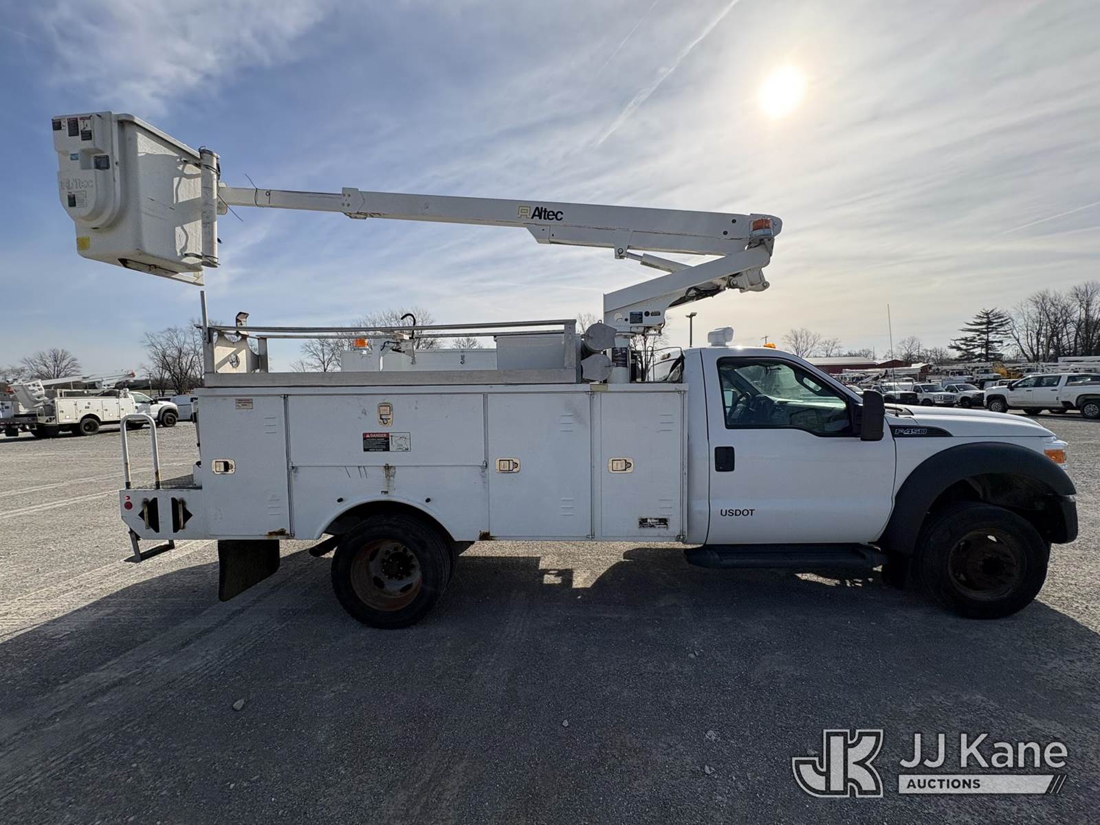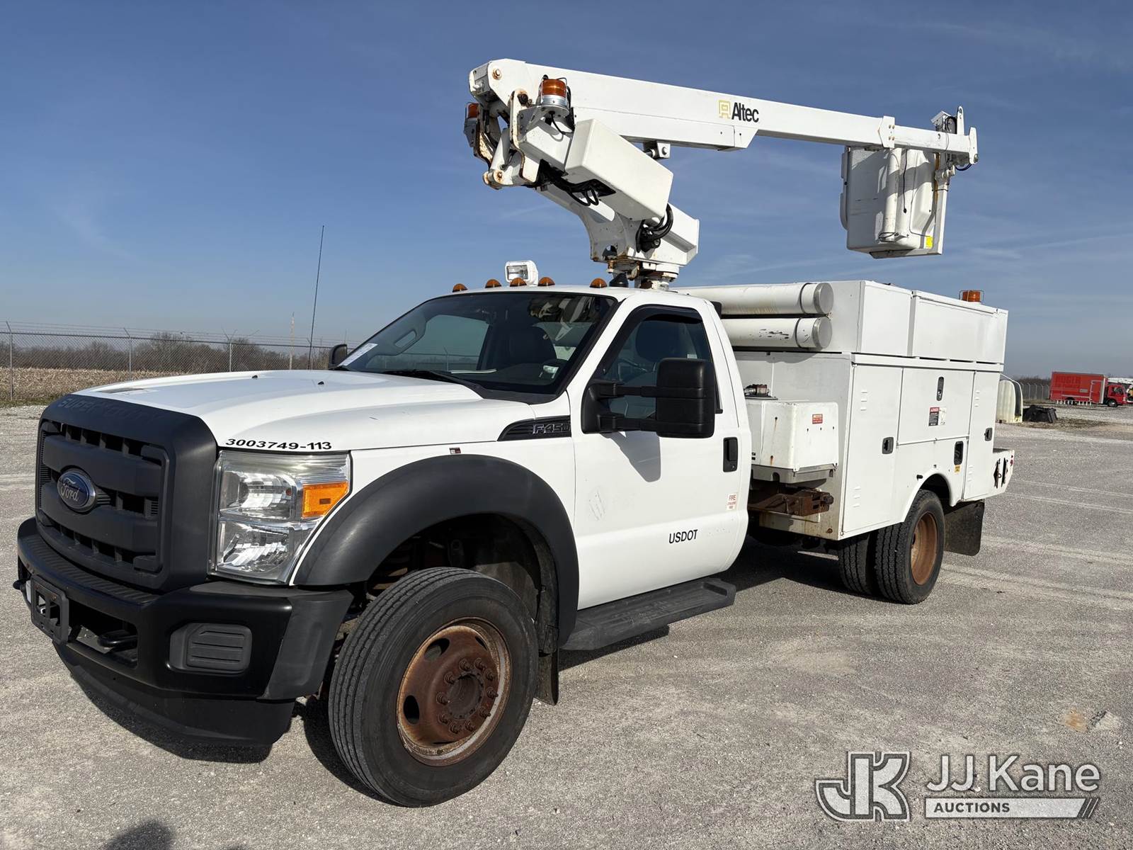 Altec AT200A, 35 ft, Telescopic Non-Insulated Bucket Truck s/n 0613BV20558, with single man bucket, mounted behind cab on 2013 Ford F-450 SD Service Truck, 10-cyl gas, RWD, Auto, A/C, (83,152 miles) (Runs, Moves, & Upper Operates, Generator Jump To Start) (Minor Rust On Utility Box) (Reads 6,279 hours) This is a Titled Item NOTE: This unit is being sold AS IS/WHERE IS via Timed Auction and is located in Hawk Point, MO. Inspection & preview days for this unit are the 2 business days prior to the first day of items closing for this auction, item is located at 25 State Highway A Hawk Point, MO 63349 and hours of operations are 8a-4p. For pre-sale questions, please contact Adam Stanek at (636) 295-1594. (Manuals provided in cab) (Buyer is responsible for removal. Assistance by consignor or JJ Kane Auctions is not assured.)