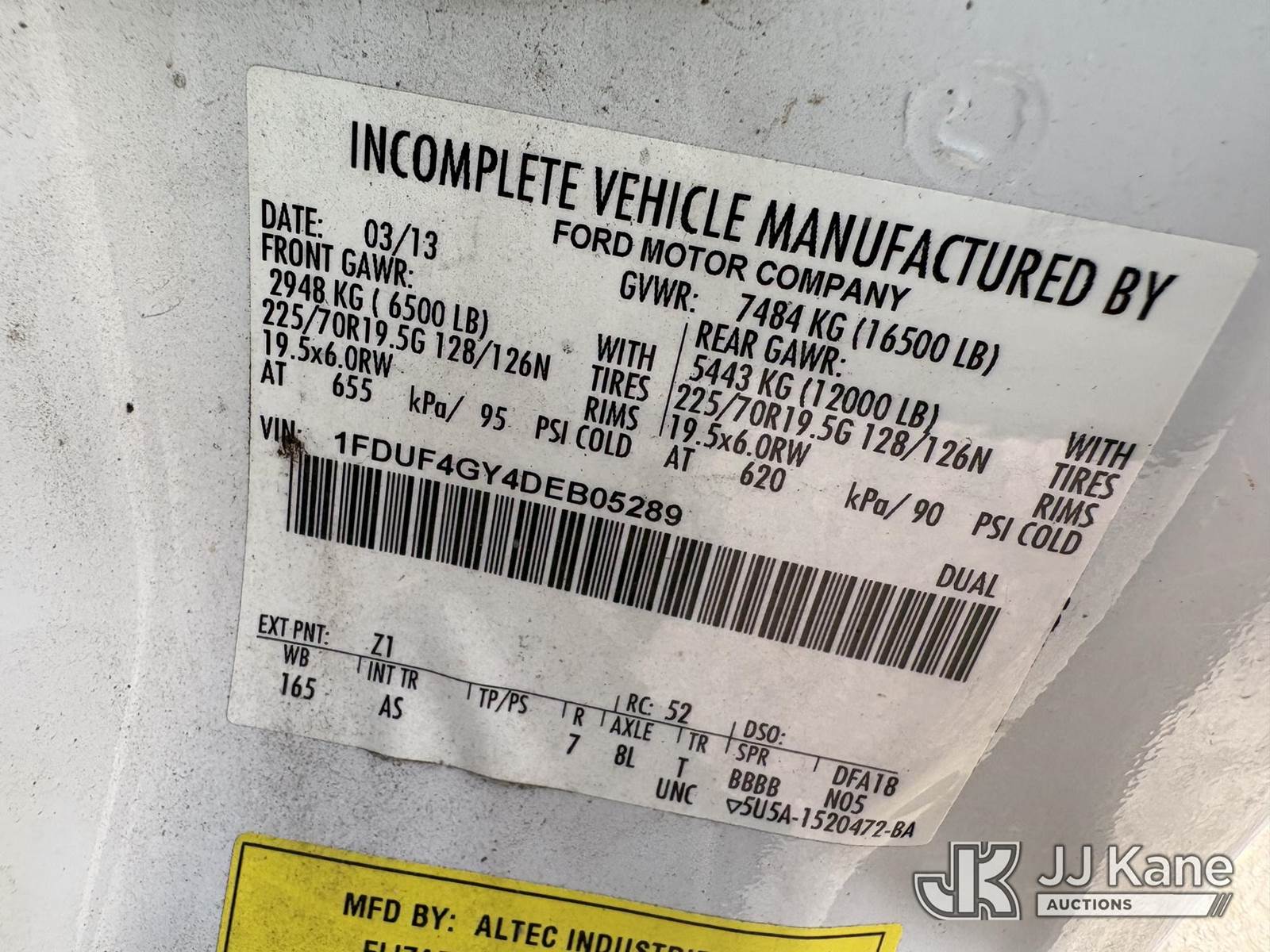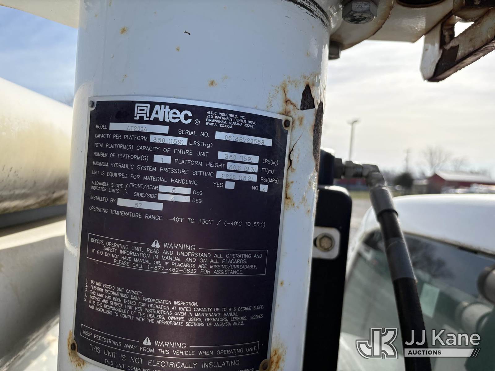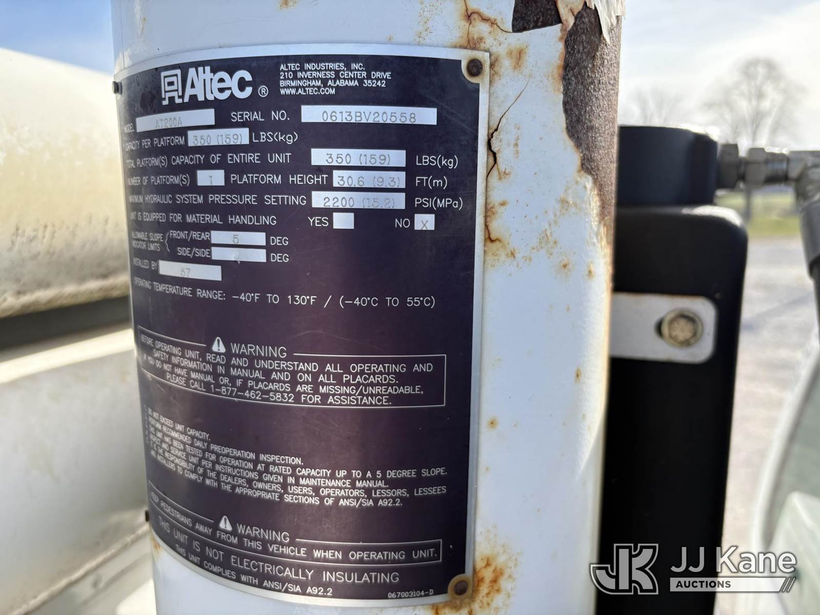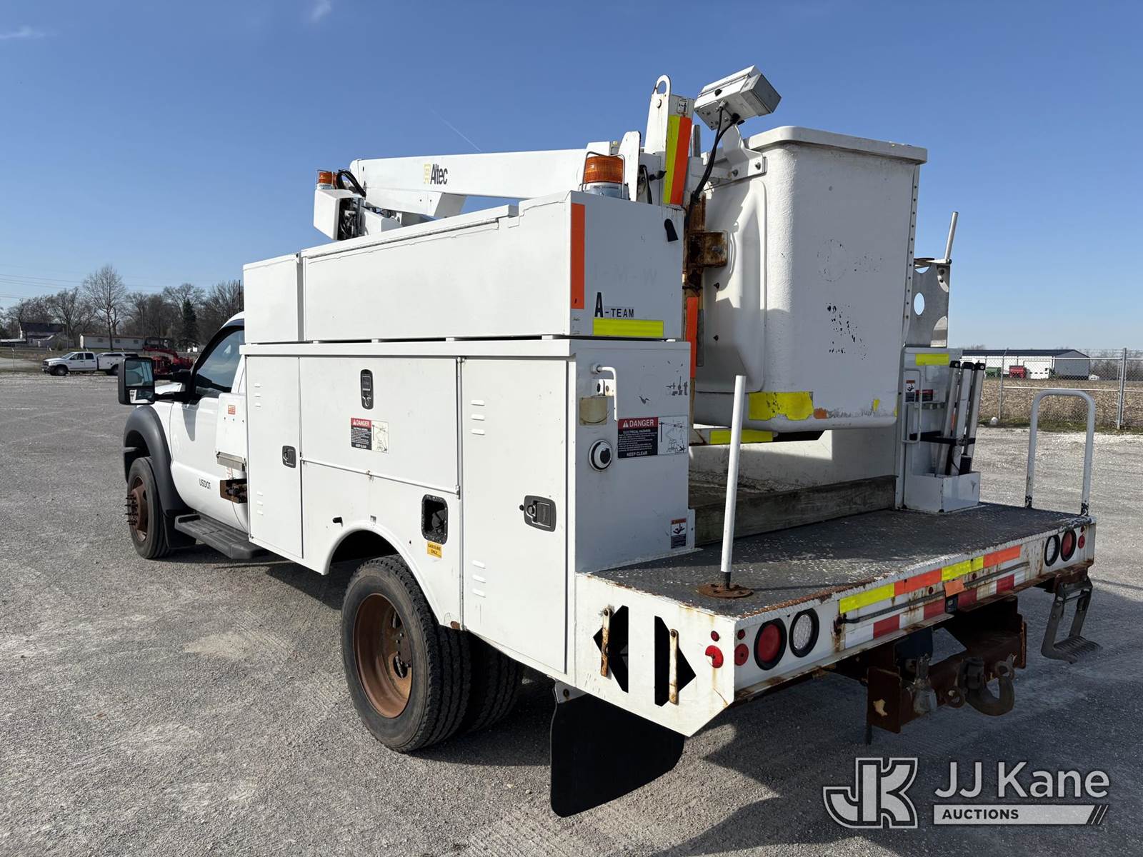 Altec AT200A, 35 ft, Telescopic Non-Insulated Bucket Truck s/n 0613BV20558, with single man bucket, mounted behind cab on 2013 Ford F-450 SD Service Truck, 10-cyl gas, RWD, Auto, A/C, (83,152 miles) (Runs, Moves, & Upper Operates, Generator Jump To Start) (Minor Rust On Utility Box) (Reads 6,279 hours) This is a Titled Item NOTE: This unit is being sold AS IS/WHERE IS via Timed Auction and is located in Hawk Point, MO. Inspection & preview days for this unit are the 2 business days prior to the first day of items closing for this auction, item is located at 25 State Highway A Hawk Point, MO 63349 and hours of operations are 8a-4p. For pre-sale questions, please contact Adam Stanek at (636) 295-1594. (Manuals provided in cab) (Buyer is responsible for removal. Assistance by consignor or JJ Kane Auctions is not assured.)