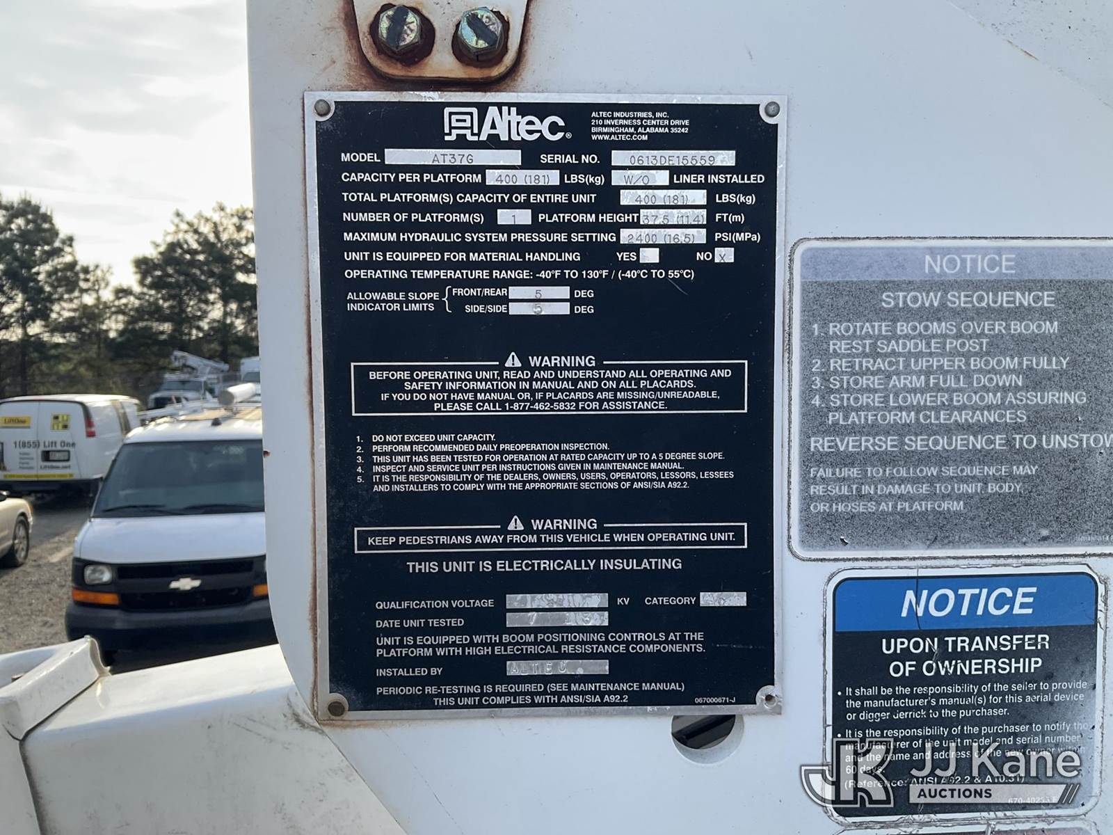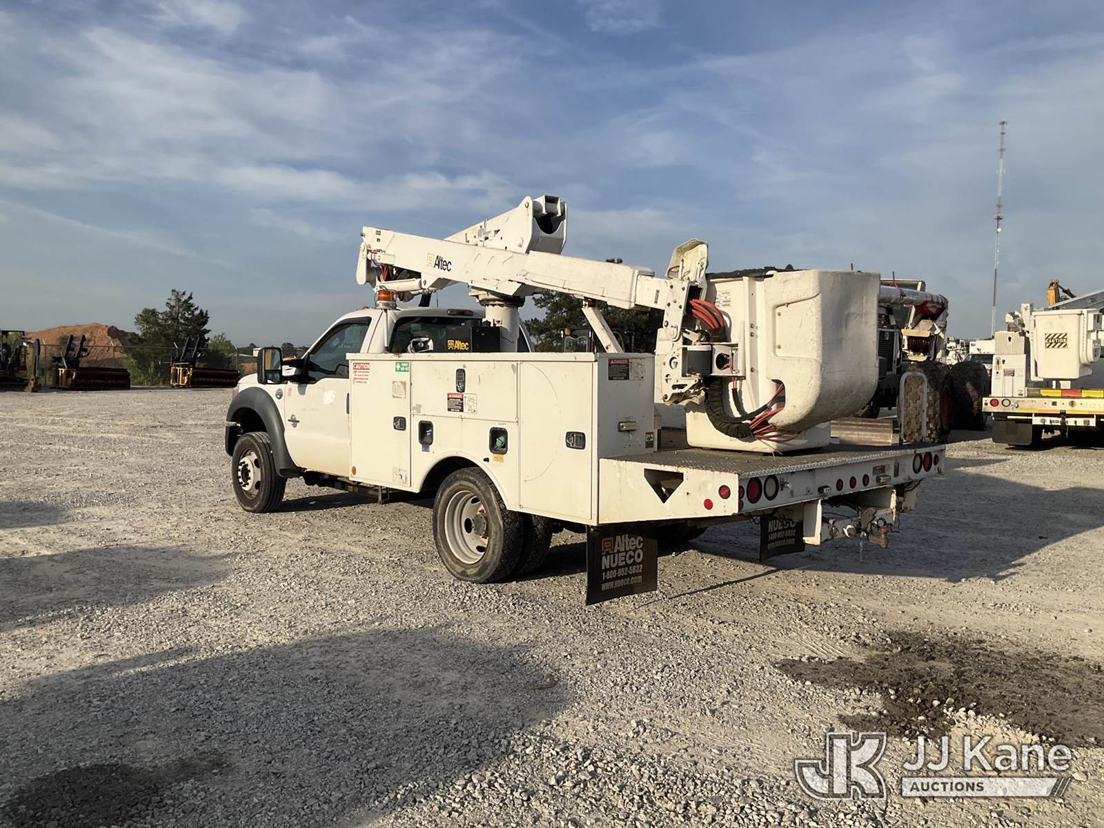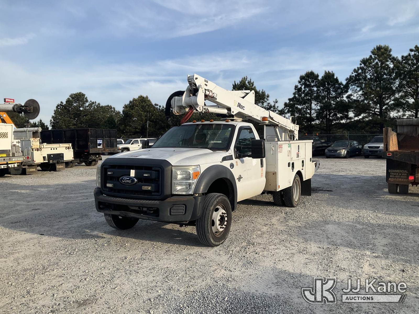 Altec AT37G, 42 ft, Articulating & Telescopic Bucket Truck s/n 0613DE15559, with single man bucket, mounted behind cab on 2013 Ford F-550 Service Truck, 6.7L V8 OHV 16V Diesel, RWD, Auto, A/C, (214,012 miles) (Runs & Moves) (Transmission Issues, Engine Smoke, PTO Will Not Engage, PTO Condition Unknown, Check Engine Light On, ) This is a Titled Item NOTE: This unit is being sold AS IS/WHERE IS via Timed Auction and is located in Villa Rica, GA. Inspection & preview days for this unit are the 2 business days prior to the first day of items closing for this auction, item is located at 100 Liberty Rd Villa Rica, GA 30180 and hours of operations are 8a-4p. For pre-sale questions, please contact Office Staff @ (470) 590-8453. (Manuals provided in cab) (Buyer is responsible for removal. Assistance by consignor or JJ Kane Auctions is not assured.)