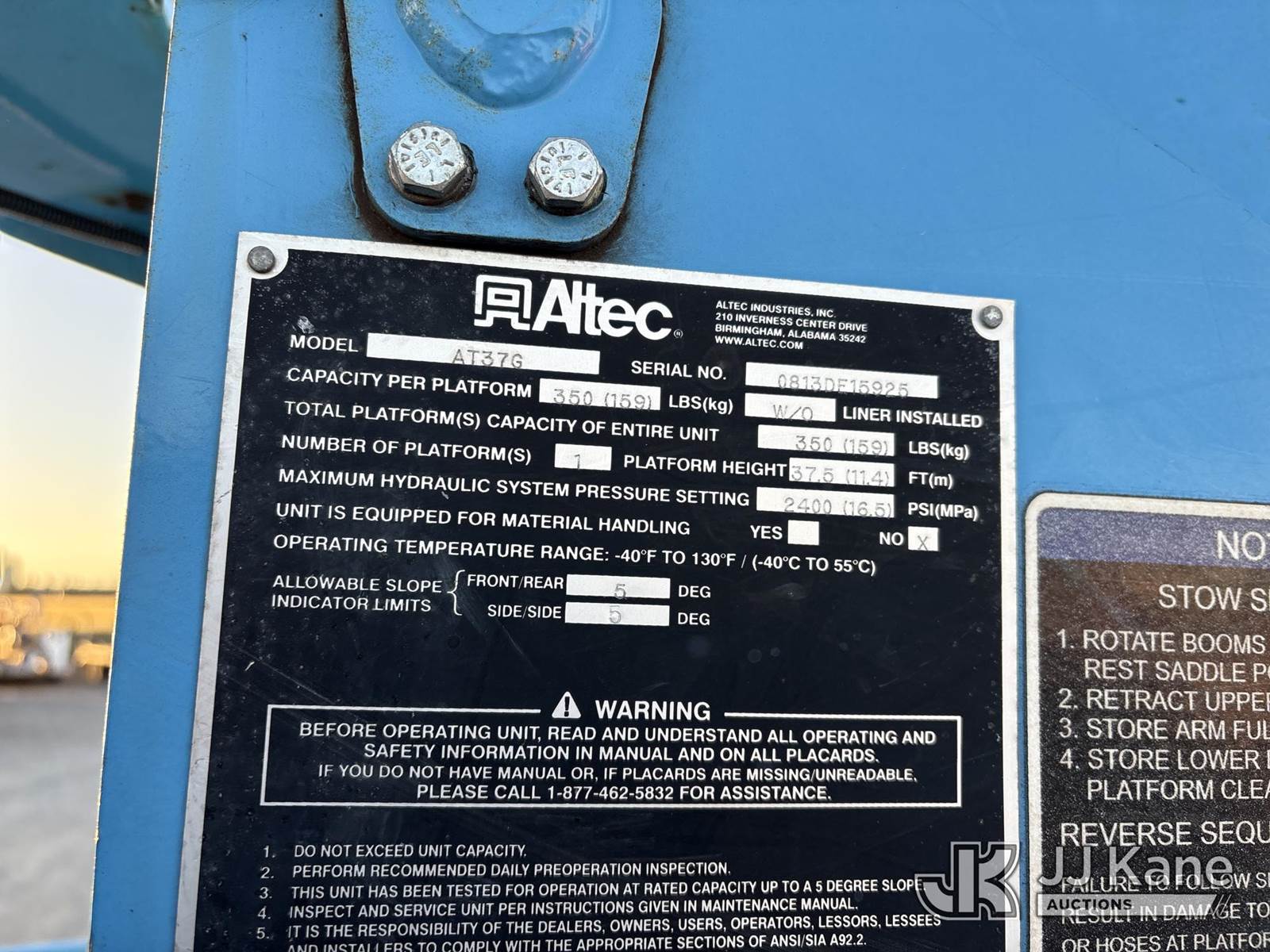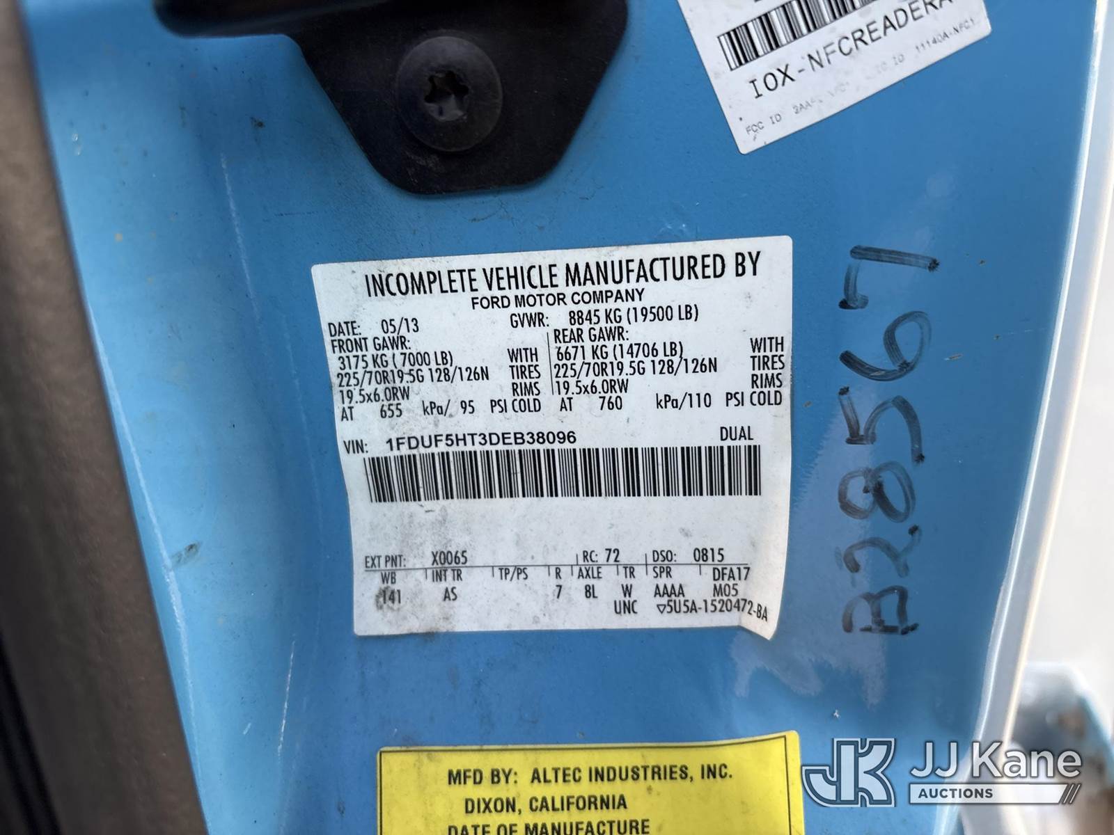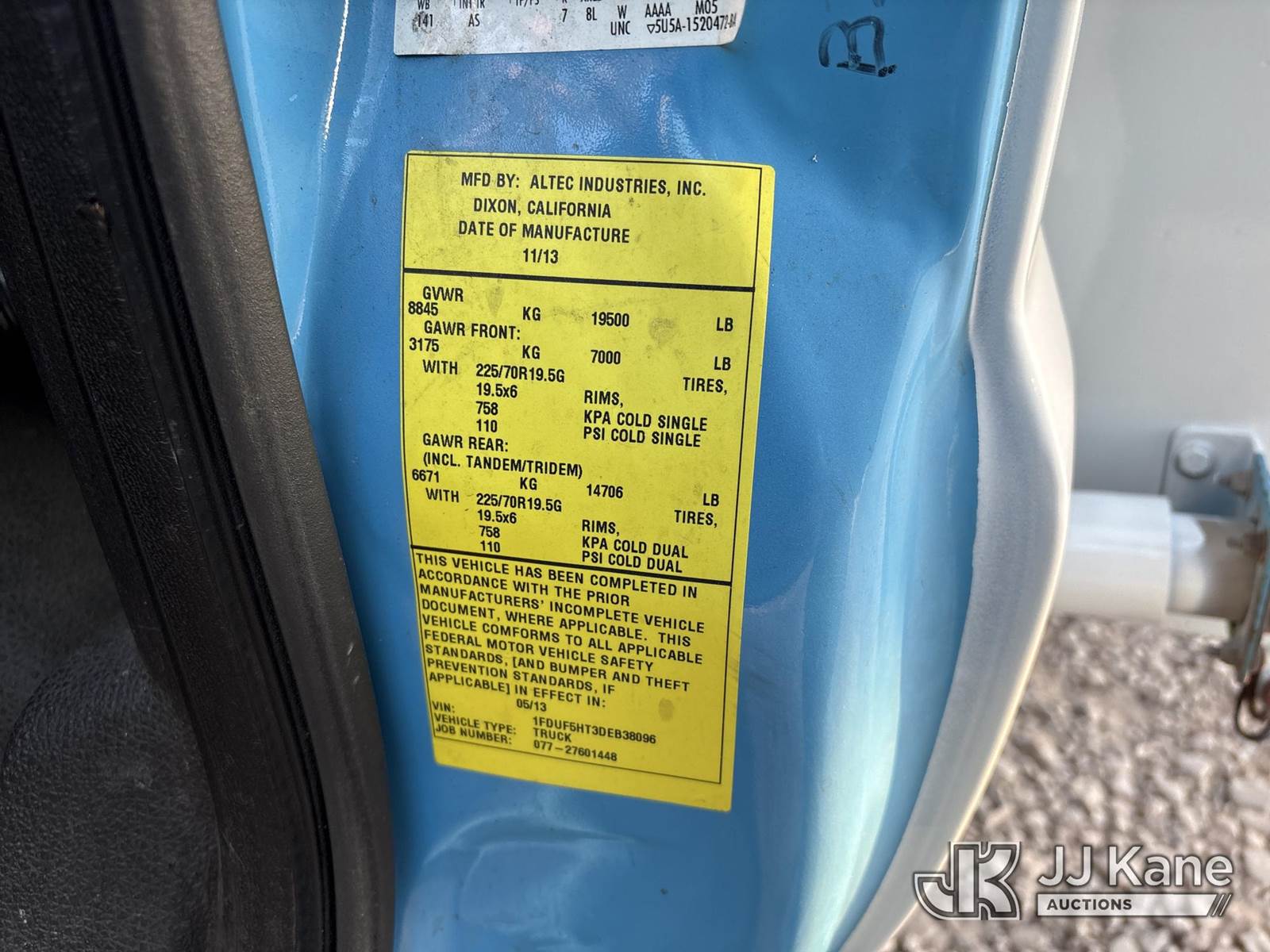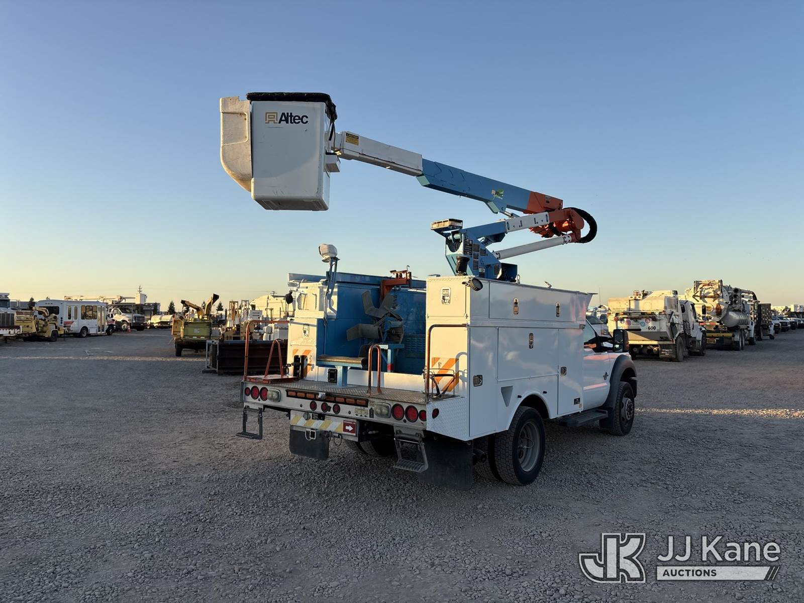 Altec AT37G, 42 ft, Articulating & Telescopic Bucket s/n 0813DE15925, with single-man bucket, mounted behind cab on 2013 Ford F-550 Regular Cab DRW 4WD Service Truck, 6.7L V8 OHV 16V DIESEL, Auto, A/C, (81,371 miles) (Runs, Moves & Operates, Check Engine Light On, Windshield Damaged) (Reads 9,636 hours) (Bidding Restricted to Licensed Vehicle Dealers Only), May be subject to ARB Regulations This is a Titled Item NOTE: This unit is being sold AS IS/WHERE IS via Timed Auction and is located in Dixon, CA. Inspection & preview days for this unit are the 2 business days prior to the first day of items closing for this auction, item is located at 8668 Sparling Ln Dixon, CA 95620 and hours of operations are 8a-4p. For pre-sale questions, please contact JJ Kane Staff at (707) 678-8060 (dixon@jjkane.com). Dealer License Number 45696. (Missing manuals, See Auction Company for Manufacturers Information to obtain manuals) (Buyer is responsible for removal. Assistance by consignor or JJ Kane Auctions is not assured.)