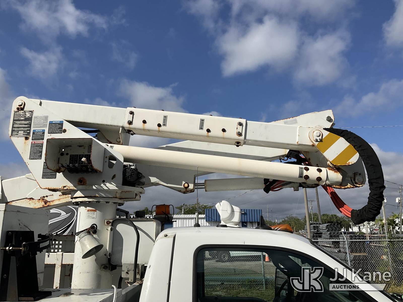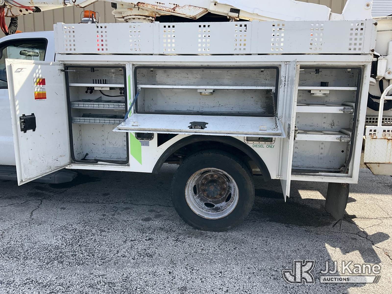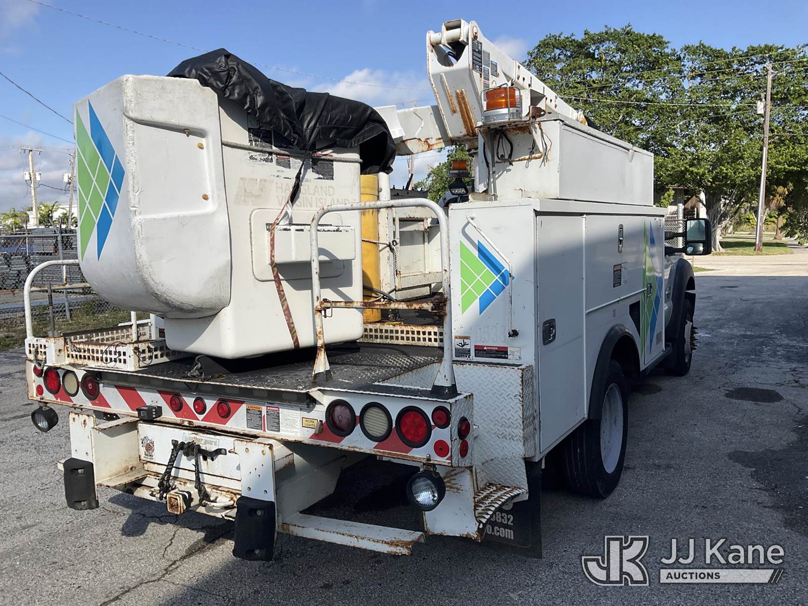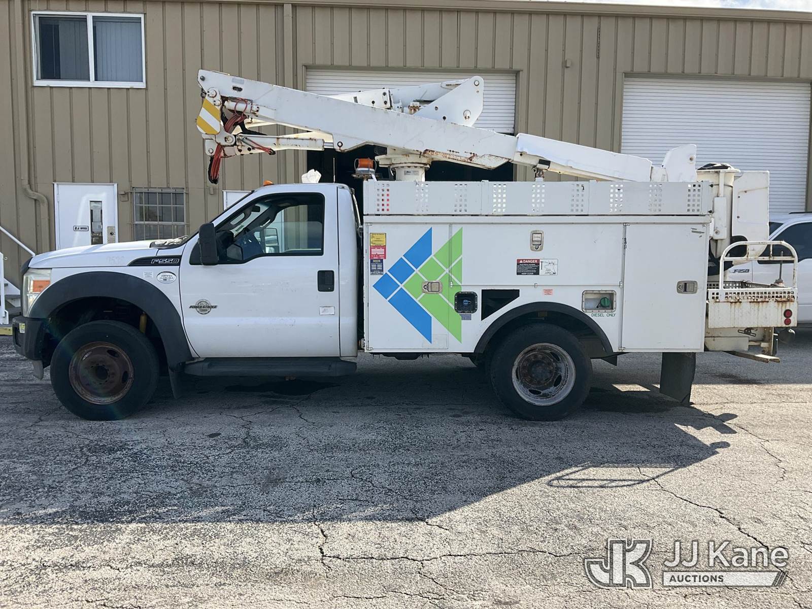 Altec AT37G, 42 ft, Articulating & Telescopic Bucket Truck s/n 0113DE15097, with single-man bucket, mounted behind cab on 2013 Ford F-550 Regular Cab DRW Service Truck, 6.7L V8 OHV 16V DIESEL Auto, RWD, A/C, (127,957 miles) (Runs & Moves) (Do Not Engage PTO Bucket Hydraulic Leak, Upper Unit Operating Condition Unknown, Check Engine Light On, Body Damage & Rust) (FL Residents Purchasing Titled Items - tax, title & registration fees will be collected at the maximum rate of $400.00 under 25,999 and $800.00 for Over 26,000 and $250.00 for Trailers - Proof of insurance is mandatory; Out of State Residents Purchasing Title Items - tax will be collected based upon your state rate) (Reads 9,016 hours) This is a Titled Item NOTE: This unit is being sold AS IS/WHERE IS via Timed Auction and is located in West Palm Beach, FL. Inspection & preview days for this unit are the 2 business days prior to the first day of items closing for this auction, item is located at 2570 Old Okeechobee Rd West Palm Beach, FL 33409 and hours of operations are 8a-4p. For pre-sale questions, please contact Andy Garcia@ 561-215-0085 (Manuals provided in cab) (Buyer is responsible for removal. Assistance by consignor or JJ Kane Auctioneers is not assured.)