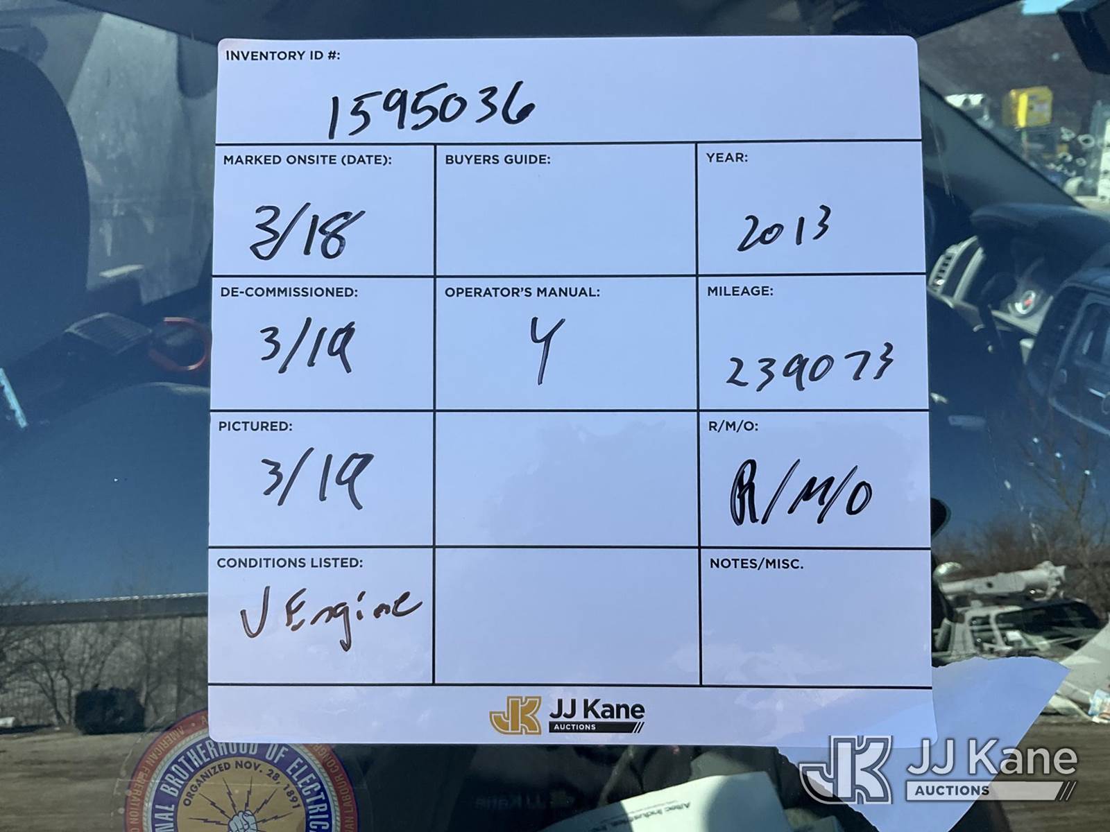 Altec AT37G, 42 ft, Articulating & Telescopic Bucket Truck s/n 0913DE15979, with Single man bucket , mounted behind cab on 2013 RAM 5500 Regular Cab 4WD Service Truck, 6.7L L6 OHV 24V DIESEL, Auto, A/C, with 1221 PTO Hours , (239,073 miles) (Runs, Moves, Operates (Check Engine Light)) (Reads 4,118 hours) This is a Titled Item NOTE: This unit is being sold AS IS/WHERE IS via Timed Auction and is located in Des Moines, IA. Inspection & preview days for this unit are the 2 business days prior to the first day of items closing for this auction, item is located at 1600 NE 66th Ave Des Moines, IA 50313 and hours of operations are 8a-4p. For pre-sale questions, please contact Eric Stewart @ (515) 626-0492. (Manuals provided in cab) (Buyer is responsible for removal. Assistance by consignor or JJ Kane Auctions is not assured.)