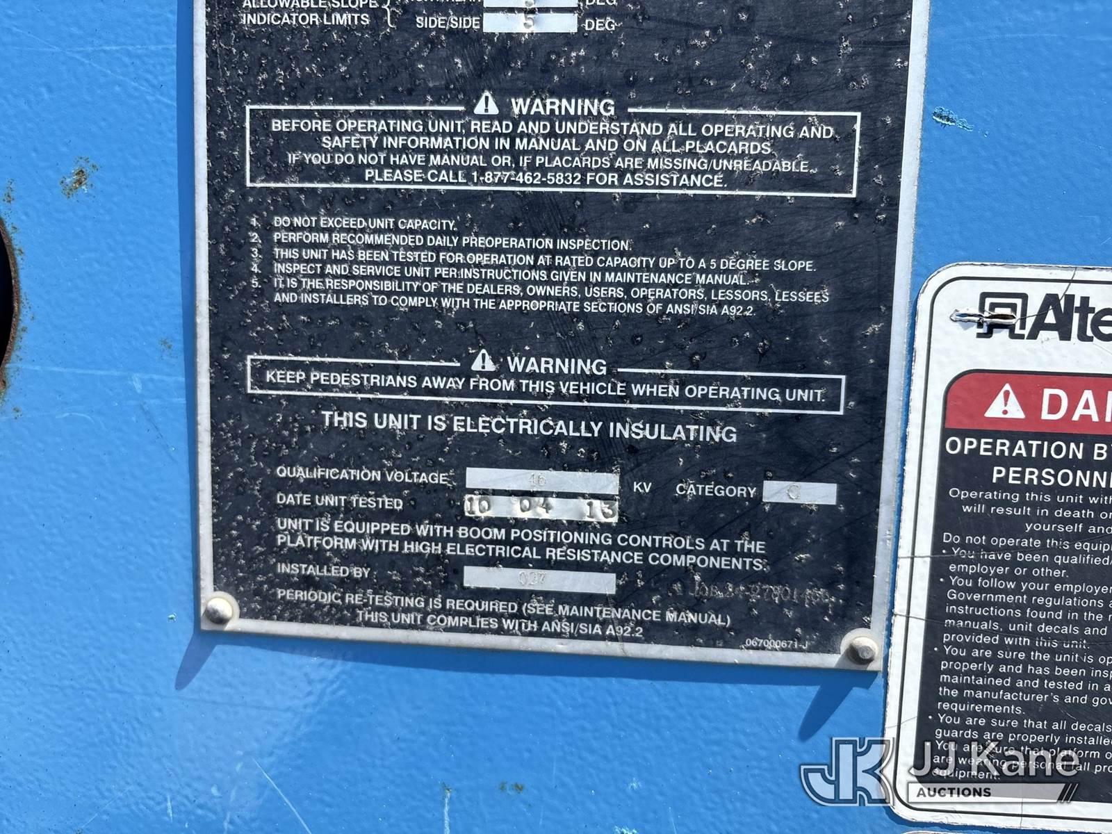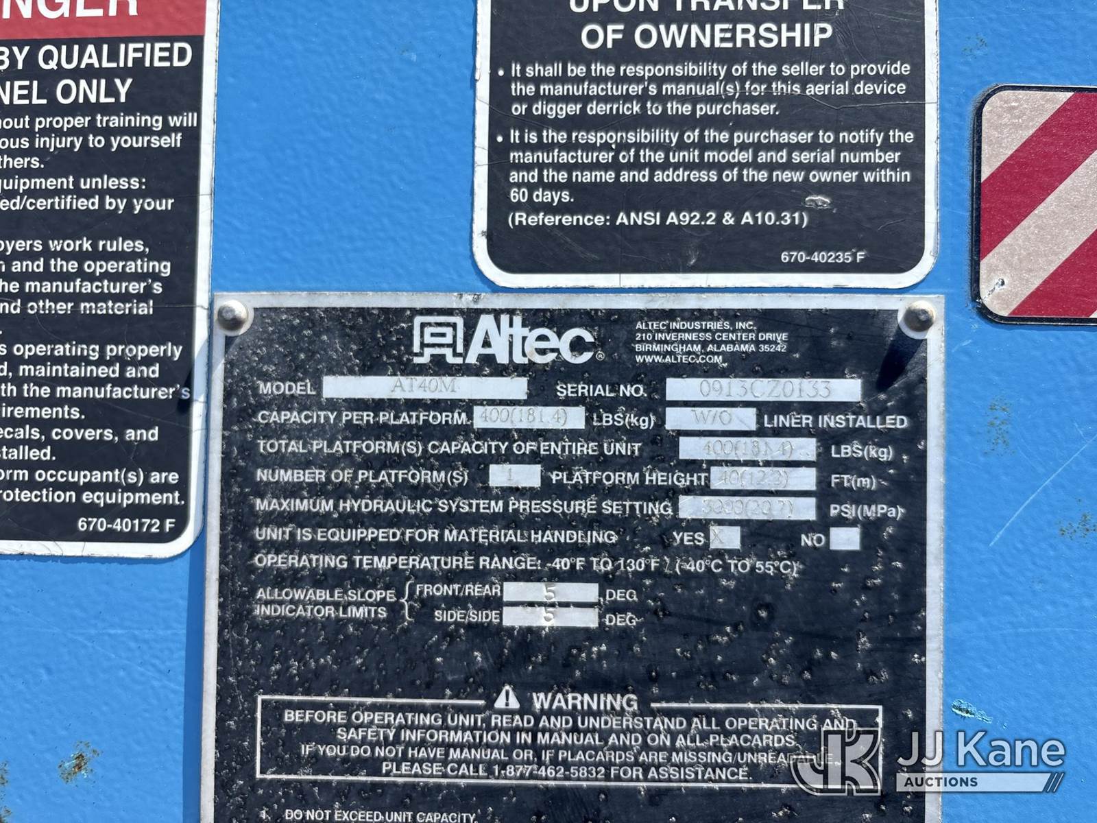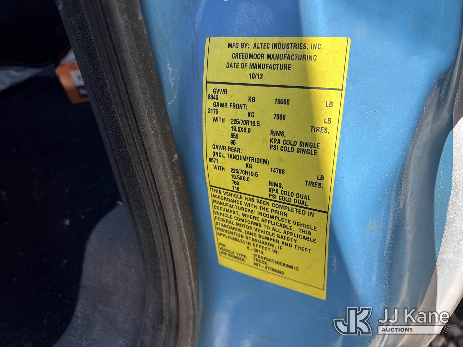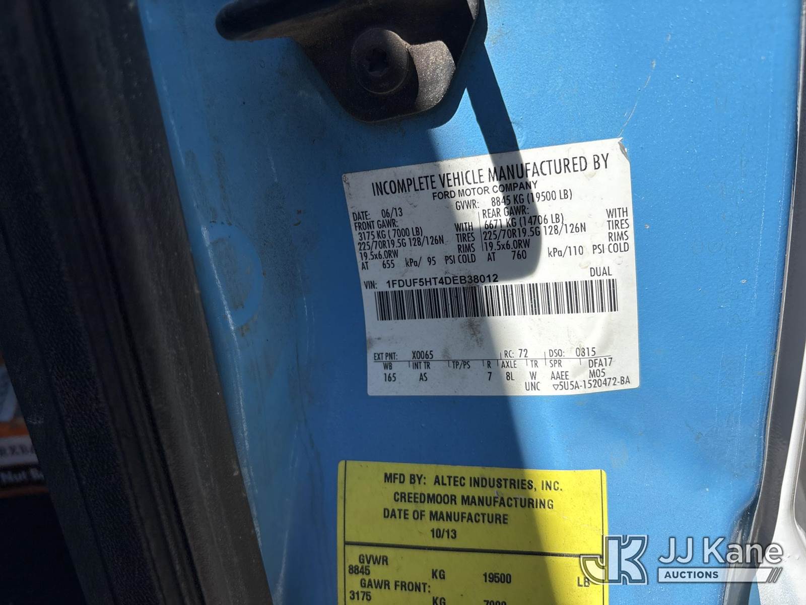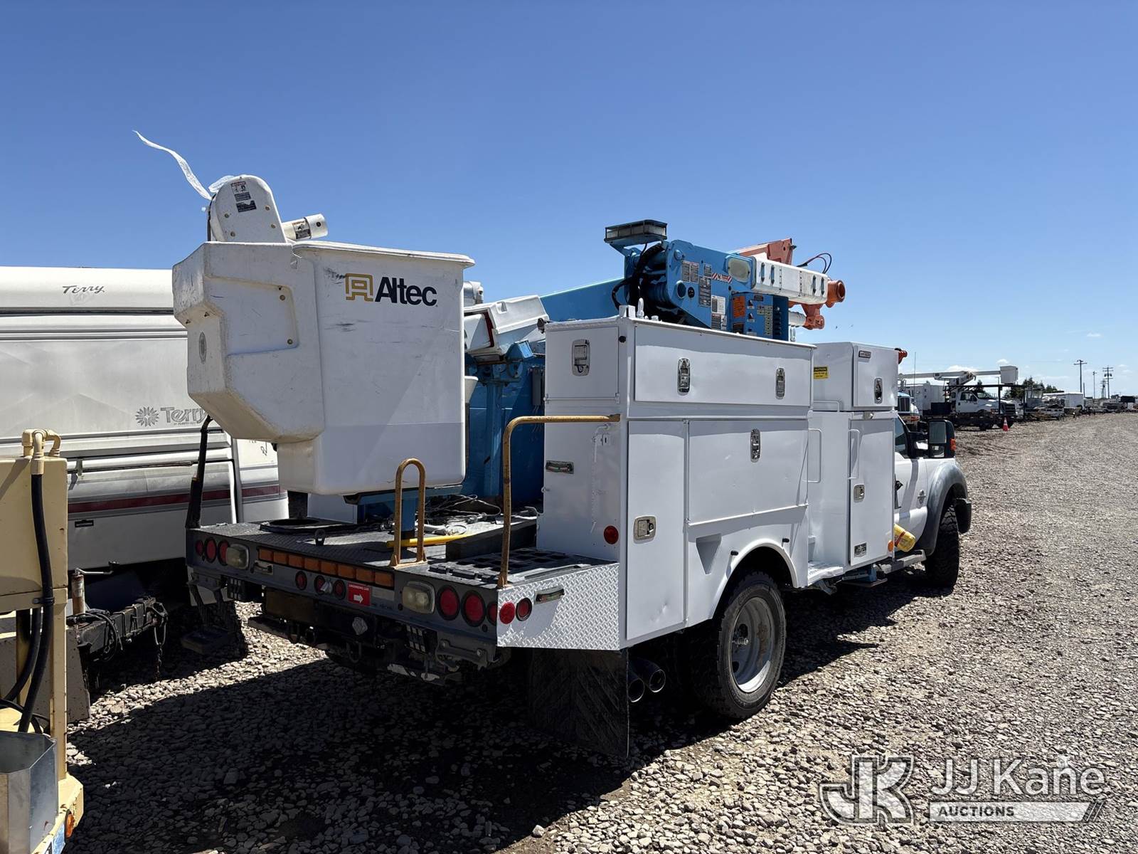 Altec AT40-MH, 45 ft, Articulating & Telescopic Material Handling Bucket Truck s/n 0913CZ0133, with single-man bucket, mounted behind cab on 2013 Ford F-550 Regular Cab DRW 4WD Service Truck, s/n 1FDUF5HT4DEB38012, 6.7L V8 OHV 16V DIESEL, Auto, A/C, (Not Running, Condition Unknown) (Wrecked, Ignition Damaged, No Key) (Bidding Restricted to Licensed Vehicle Dealers Only), May be subject to ARB Regulations This is a Titled Item NOTE: This unit is being sold AS IS/WHERE IS via Timed Auction and is located in Dixon, CA. Inspection & preview days for this unit are the 2 business days prior to the first day of items closing for this auction, item is located at 8668 Sparling Ln Dixon, CA 95620 and hours of operations are 8a-4p. For pre-sale questions, please contact JJ Kane Staff at (707) 678-8060 (dixon@jjkane.com). Dealer License Number 45696. (Missing manuals, See Auction Company for Manufacturers Information to obtain manuals) (Buyer is responsible for removal. Assistance by consignor or JJ Kane Auctions is not assured.)