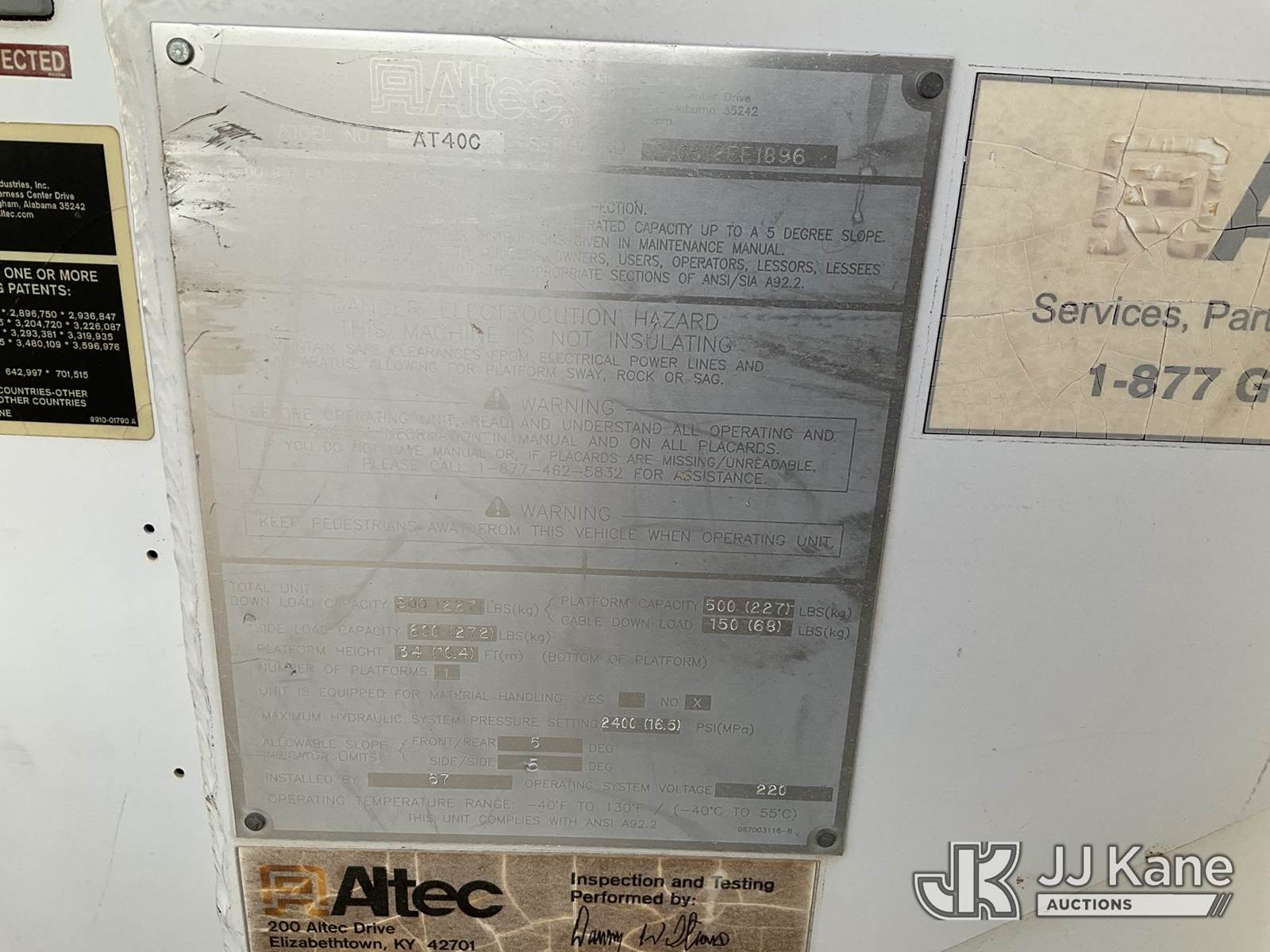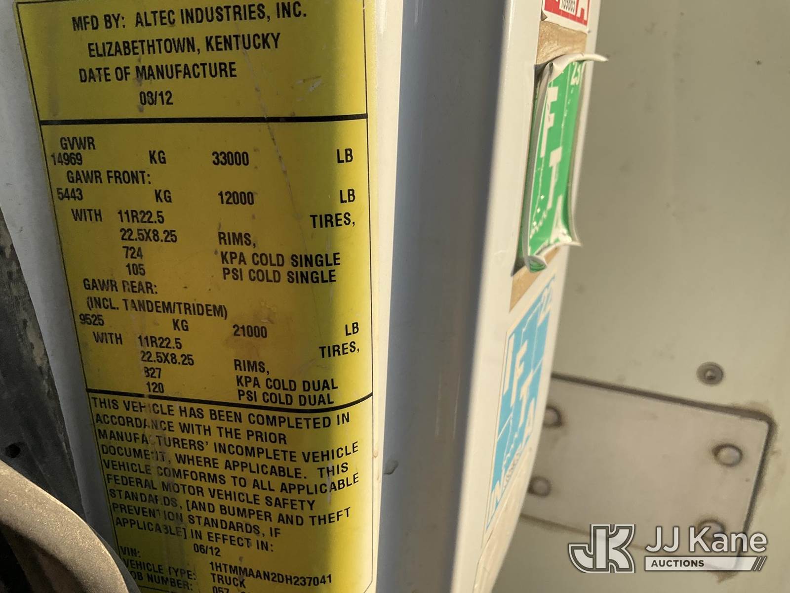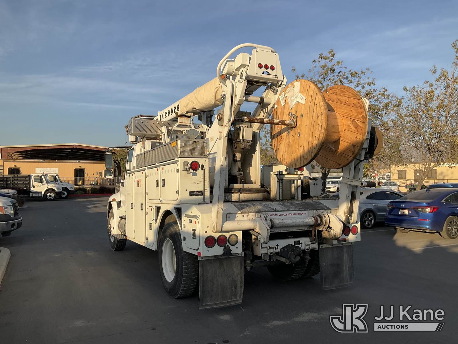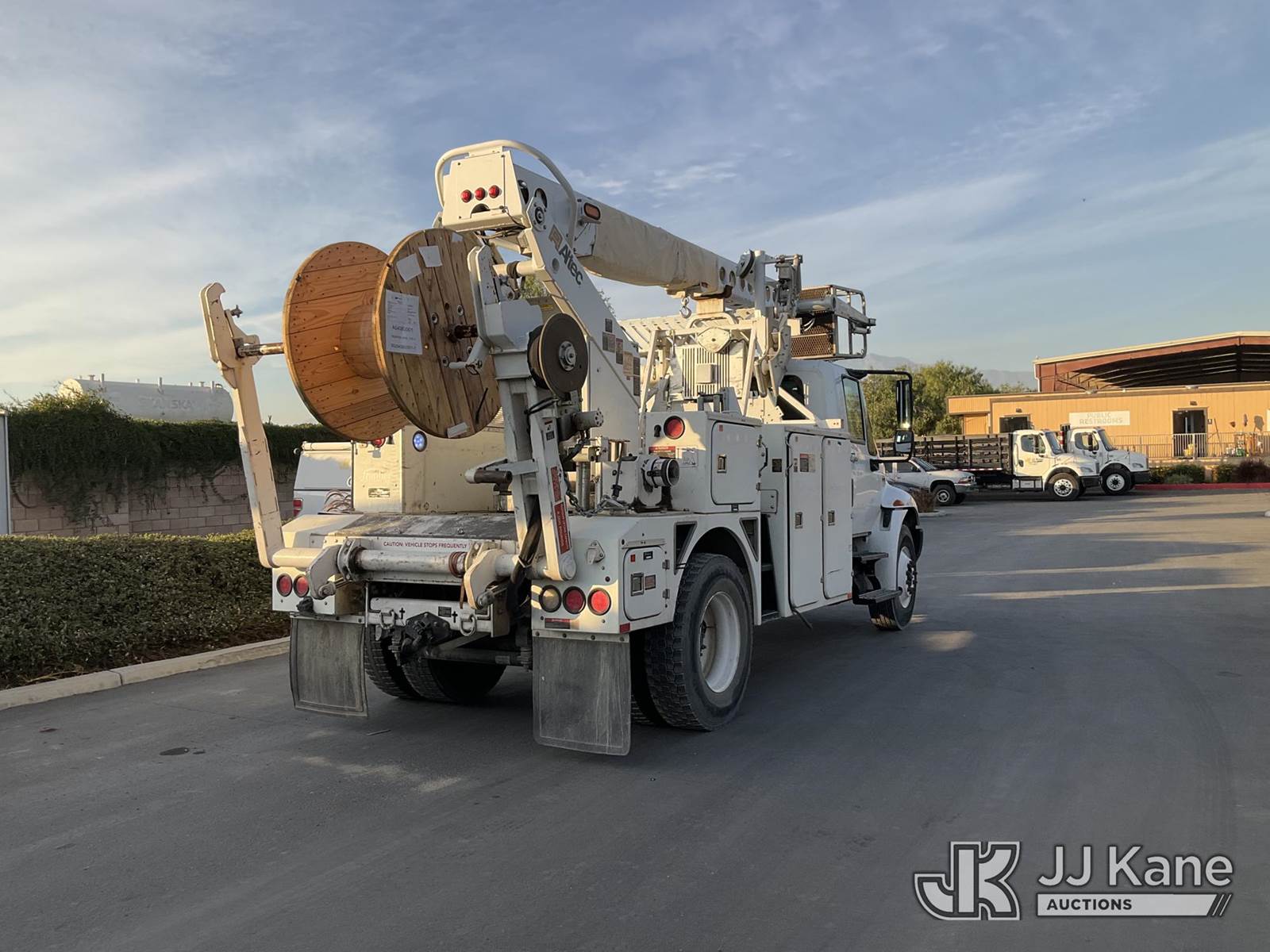 Altec AT40C, 39 ft, Articulating & Telescopic Bucket s/n 0812EE1896, with single man aluminum bucket, rear mounted on 2013 International 4300 Service Truck, s/n 1HTMMAAN2DH237041, 7.6L L6 DIESEL Auto, 4X2, A/C, with tow package, large reel, (58,773 miles) (Runs, Moves, & Upper Operates ) May be subject to ARB Regulations This is a Titled Item NOTE: This unit is being sold AS IS/WHERE IS via Timed Auction and is located in Jurupa Valley, CA. Inspection & preview days for this unit are the 2 business days prior to the first day of items closing for this auction, item is located at 4510 Muth Way Jurupa Valley, CA 92509 and hours of operations are 8a-4p. For pre-sale questions, please contact please contact Office Staff @ (310) 353-7140. Dealer License Number 45696. (Manuals provided in cab) (Buyer is responsible for removal. Assistance by consignor or JJ Kane Auctions is not assured.)