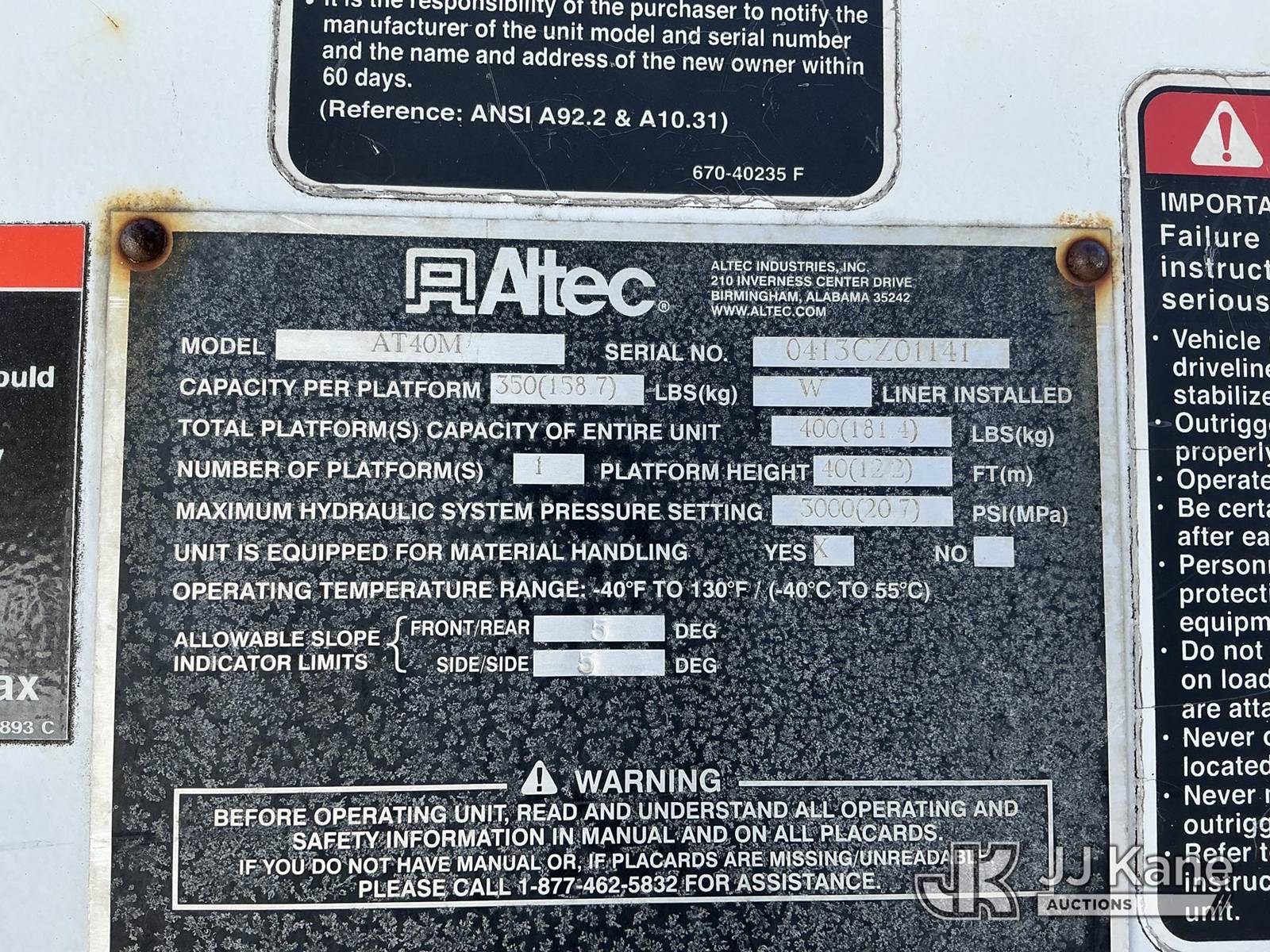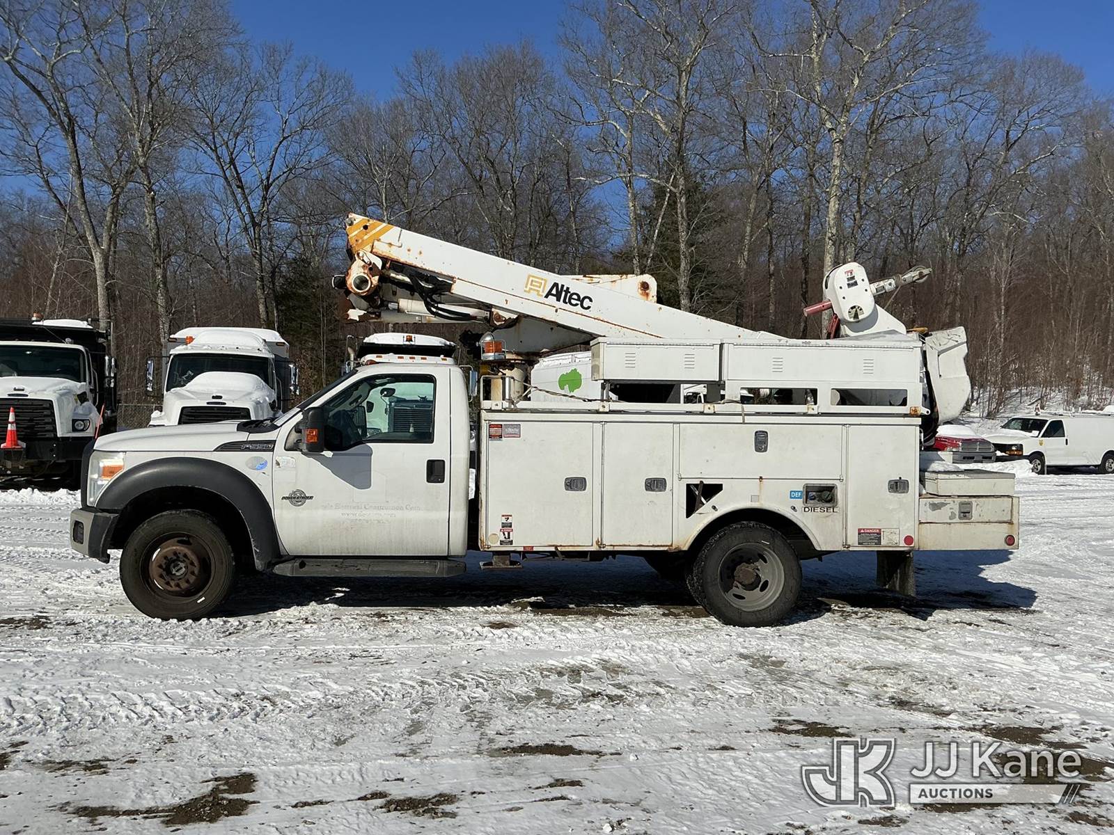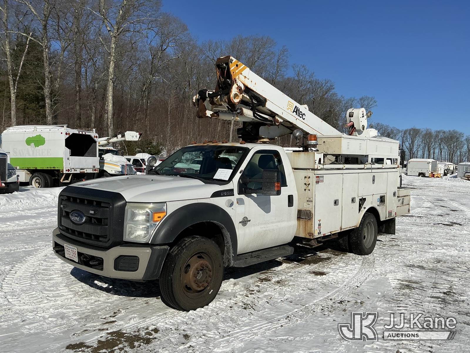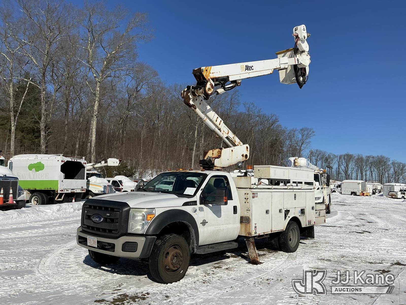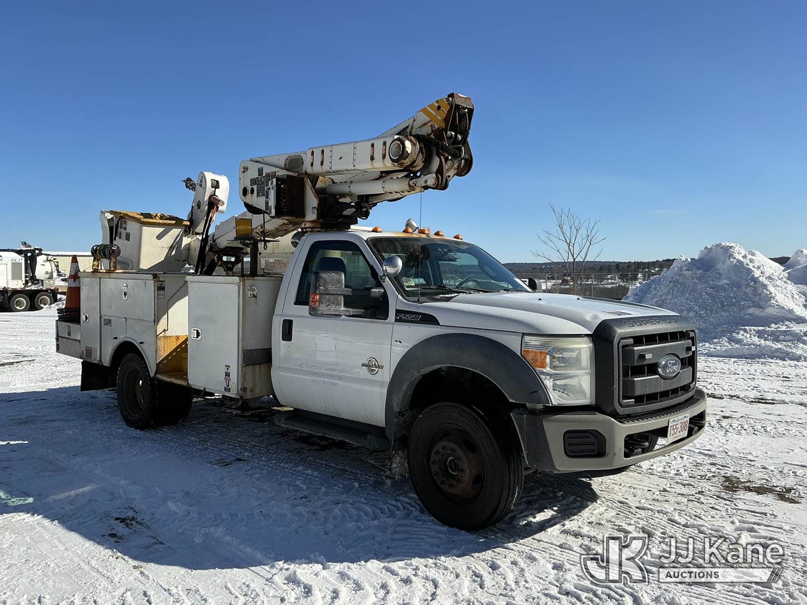 Altec AT40M, 45 ft, Articulating & Telescopic Material Handling Bucket Truck s/n 0413CZ01141, with single-man bucket & 2 hyd outriggers, mounted behind cab on 2013 Ford F-550 Utility Truck, 6.7L V8 4wd, diesel, Auto, A/C, (280,076 miles) (Runs, Moves & Upper Operates) (Check Engine Light On) This is a Titled Item NOTE: This unit is being sold AS IS/WHERE IS via Timed Auction and is located in Shrewsbury, MA. Inspection & preview days for this unit are the 2 business days prior to the first day of items closing for this auction, item is located at 11 Fortune Blvd Shrewsbury, MA 01545 and hours of operations are 8a-4p. For pre-sale questions, please contact Rob Gifford @ (508) 864-4126. (Manuals provided in cab) (Buyer is responsible for removal. Assistance by consignor or JJ Kane Auctions is not assured.)