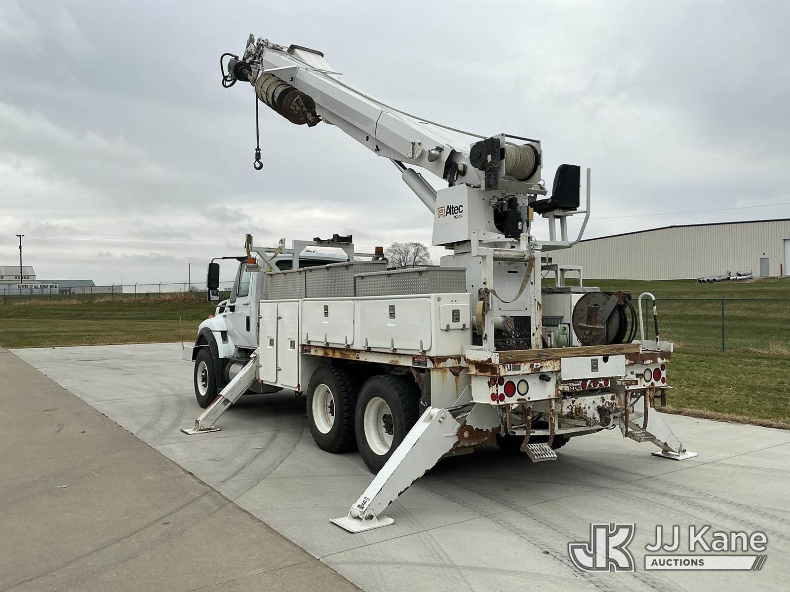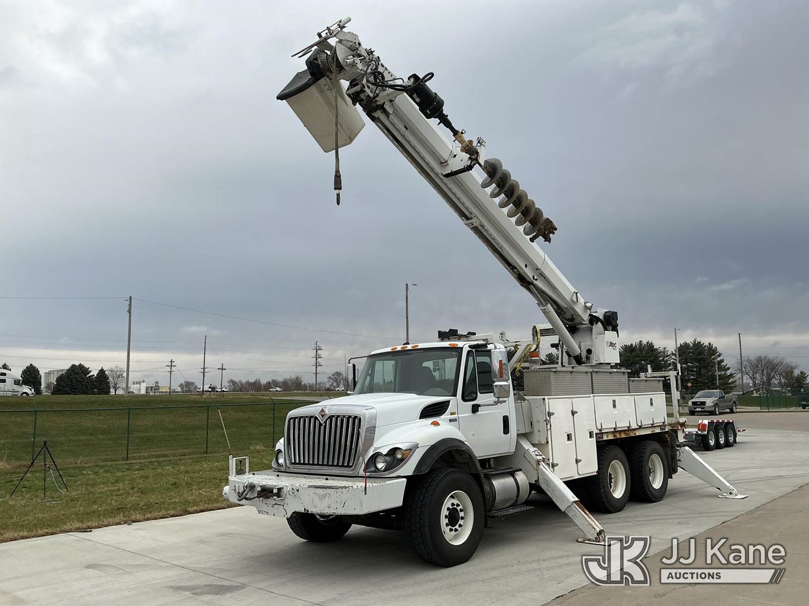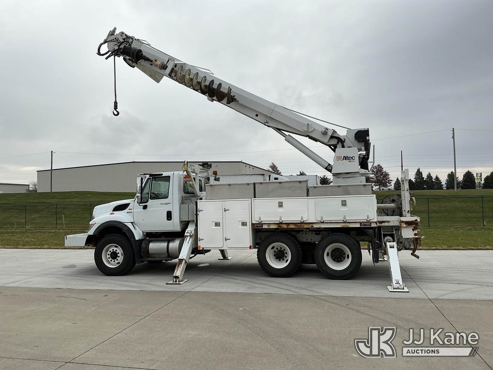Altec D3055B-TR, 26,570 Lb Digger Derrick s/n 0912FU0085, with 55 ft. sheave height, 2 spd digger, heel winch, riding seat, wireless remote, pole guides, pin-on bucket & 4 hyd outriggers, rear mounted on 2013 International 7400 T/A Utility Truck, 7.6L Auto, 6X4, diesel, A/C, with front bumper winch w/ capstan, (113,899 miles) CO-OP Owned & Maintained, Garage Kept (Runs, Moves & Upper Operates) (Rust Damage) (Reads 2,738 hours) This is a Titled Item NOTE: This unit is being sold AS IS/WHERE IS via Timed Auction and is located in Wilton, IA. For more information contact Austin Scott @ 816-205-2291. Removal by appointment only, Buyer/Hauler must present copy of paid invoice or release form upon arrival. Purchaser acknowledges ALL lots must be removed within 10 business days of Auction, or a storage fee may be incurred. For load out and pick up information, please reference the release form sent out after purchase. (Buyer is responsible for removal. Assistance by consignor or JJ Kane Auctions is not assured.) (Manuals provided in cab) (Buyer is responsible for removal. Assistance by consignor or JJ Kane Auctioneers is not assured.)