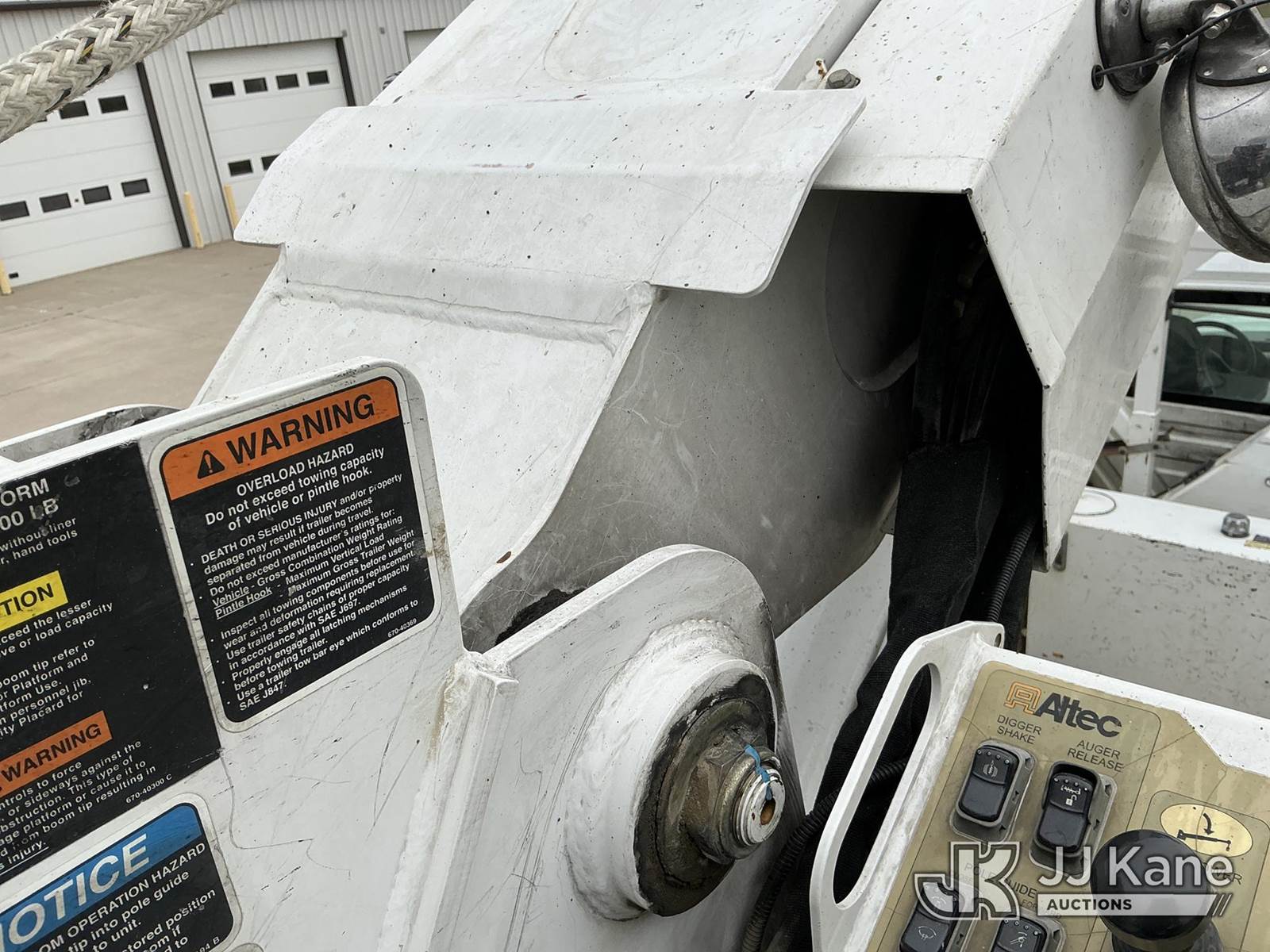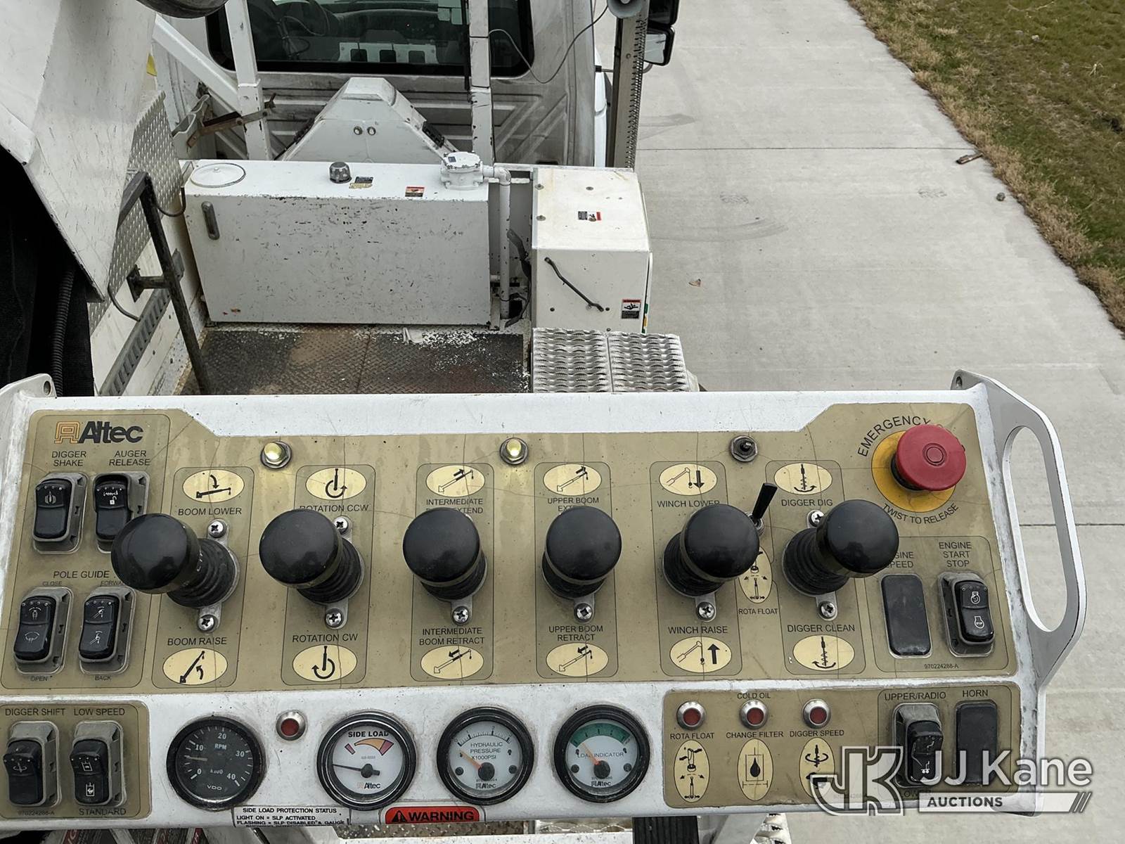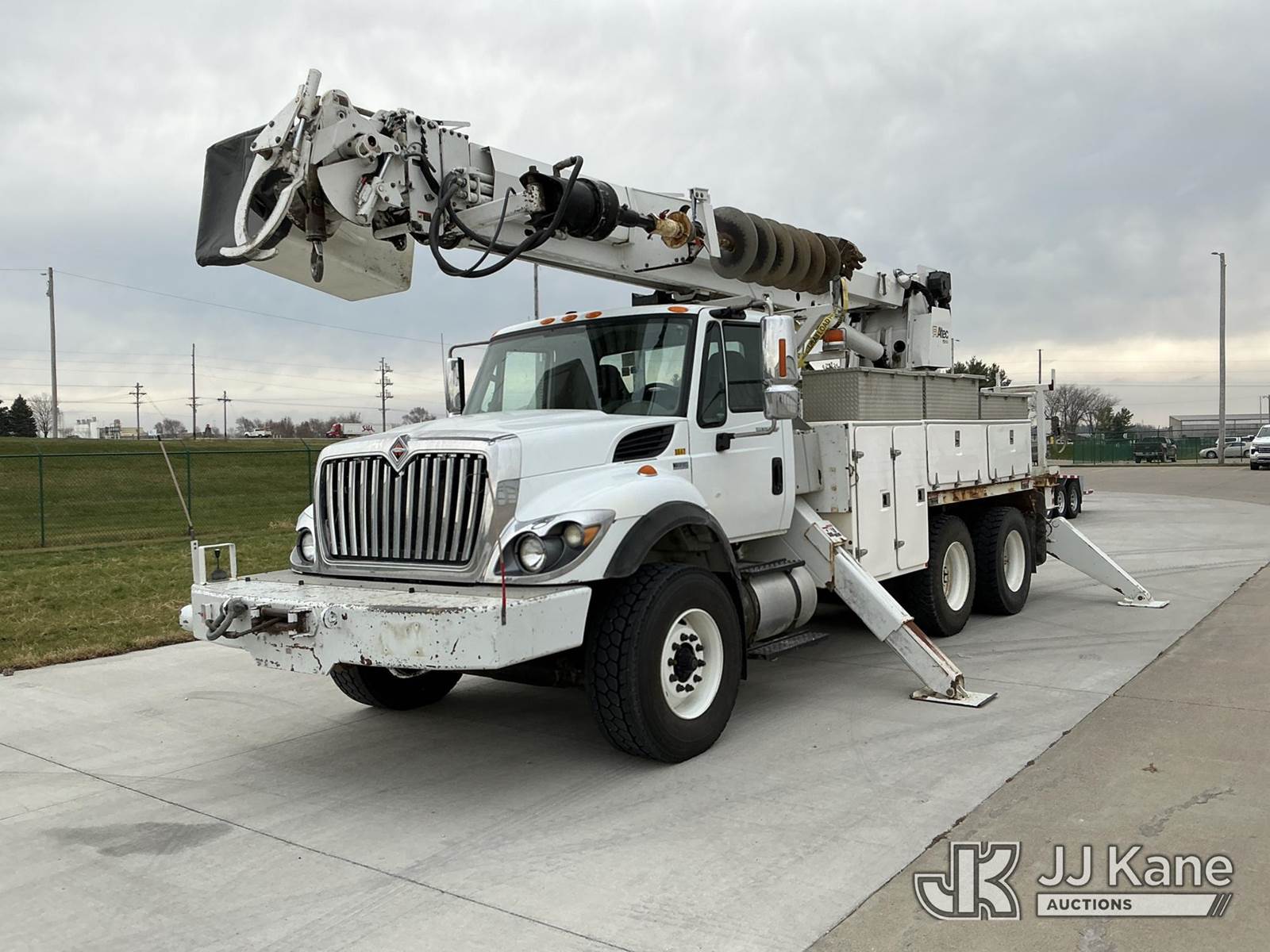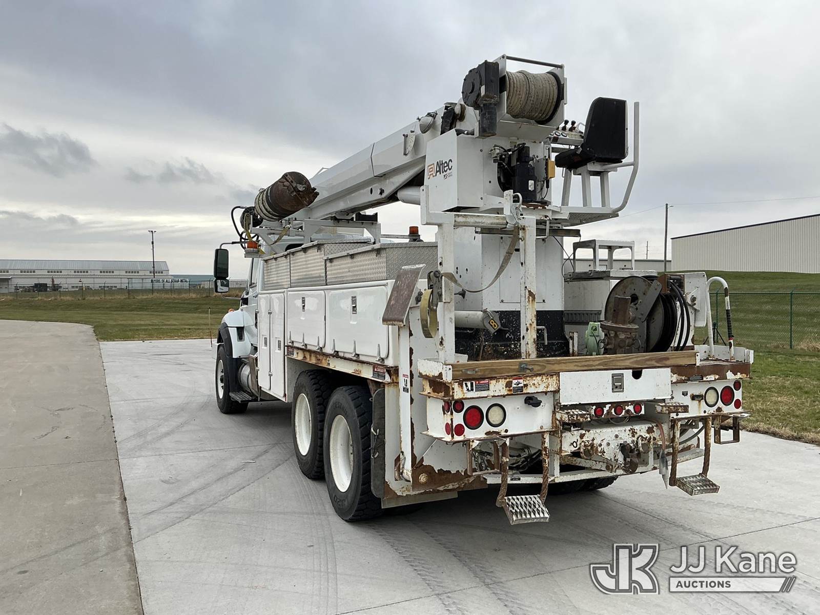 Altec D3055B-TR, 26,570 Lb Digger Derrick s/n 0912FU0085, with 55 ft. sheave height, 2 spd digger, heel winch, riding seat, wireless remote, pole guides, pin-on bucket & 4 hyd outriggers, rear mounted on 2013 International 7400 T/A Utility Truck, 7.6L Auto, 6X4, diesel, A/C, with front bumper winch w/ capstan, (113,899 miles) CO-OP Owned & Maintained, Garage Kept (Runs, Moves & Upper Operates) (Rust Damage) (Reads 2,738 hours) This is a Titled Item NOTE: This unit is being sold AS IS/WHERE IS via Timed Auction and is located in Wilton, IA. For more information contact Austin Scott @ 816-205-2291. Removal by appointment only, Buyer/Hauler must present copy of paid invoice or release form upon arrival. Purchaser acknowledges ALL lots must be removed within 10 business days of Auction, or a storage fee may be incurred. For load out and pick up information, please reference the release form sent out after purchase. (Buyer is responsible for removal. Assistance by consignor or JJ Kane Auctions is not assured.) (Manuals provided in cab) (Buyer is responsible for removal. Assistance by consignor or JJ Kane Auctioneers is not assured.)