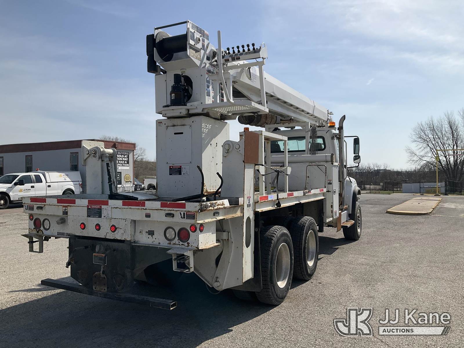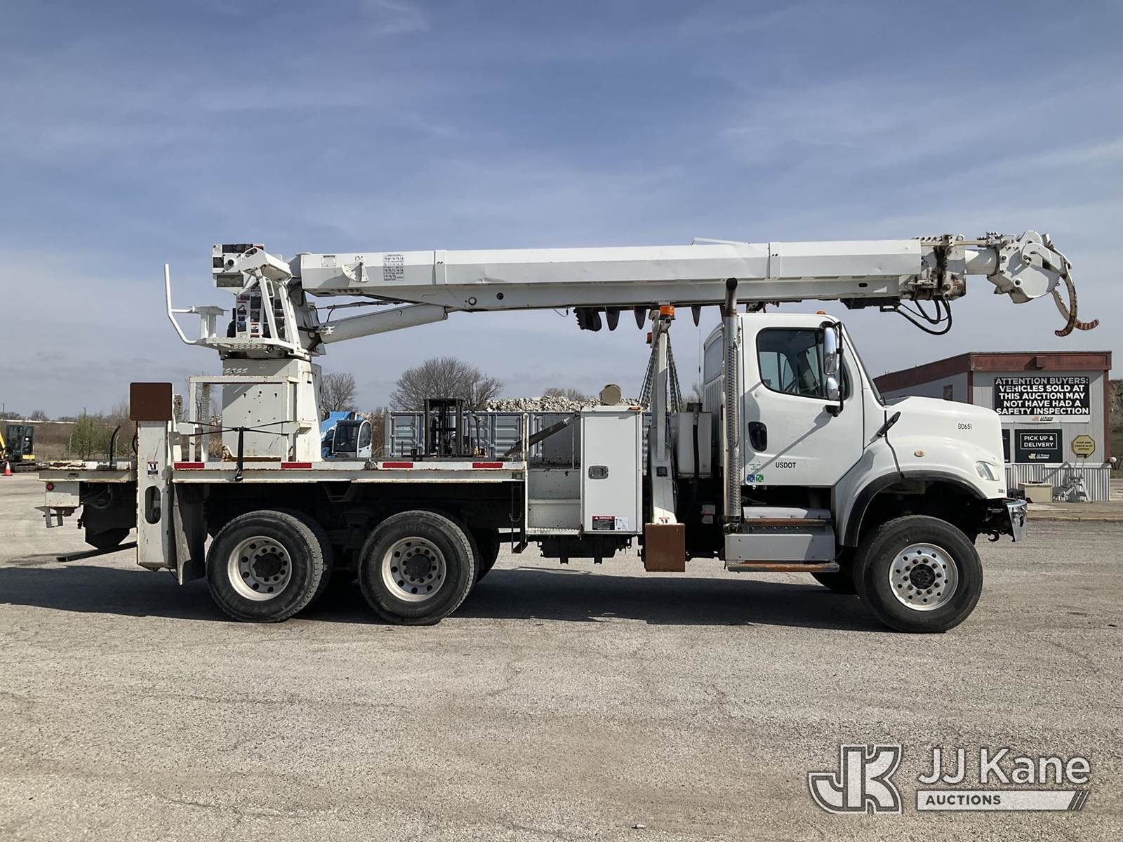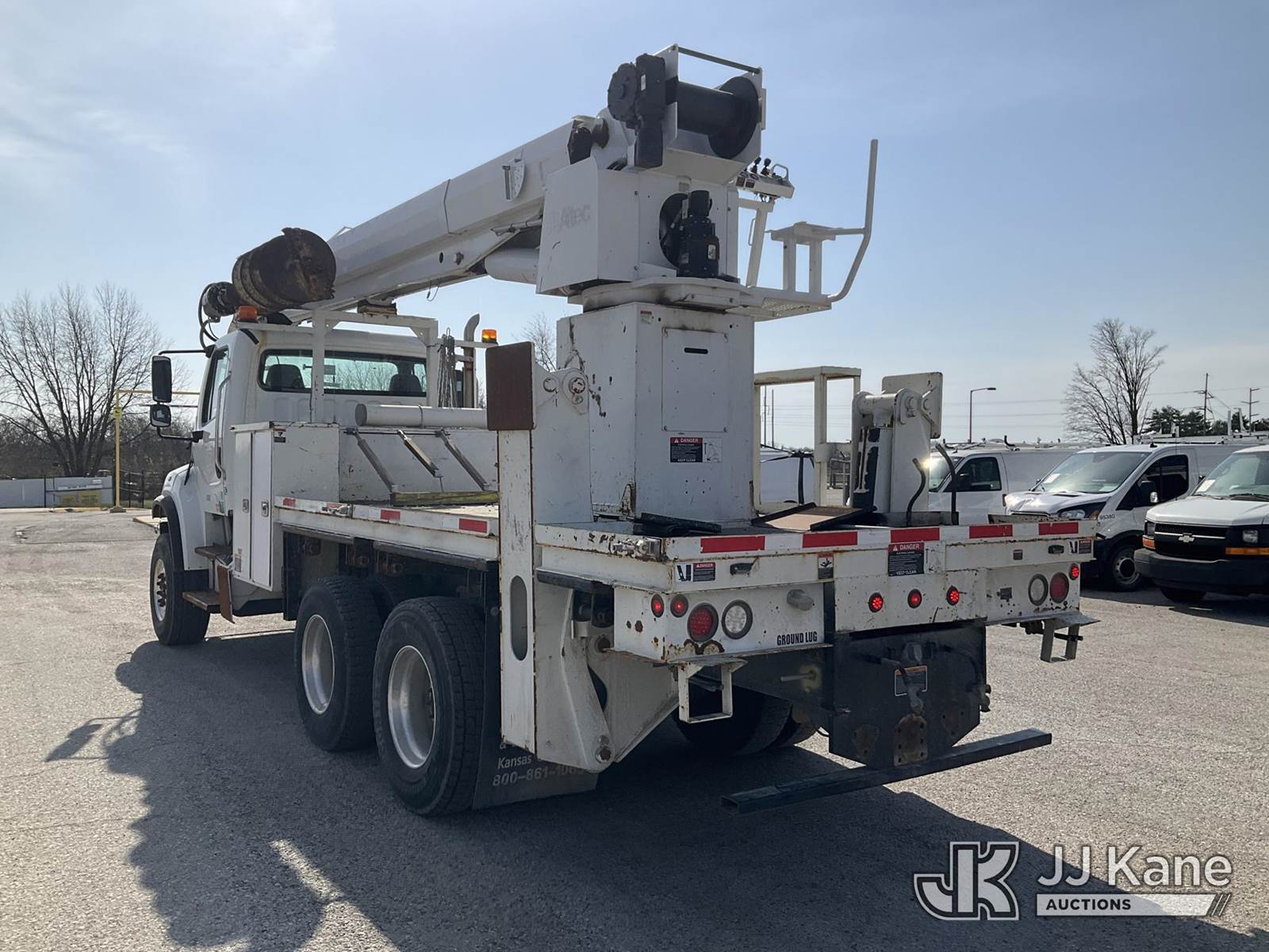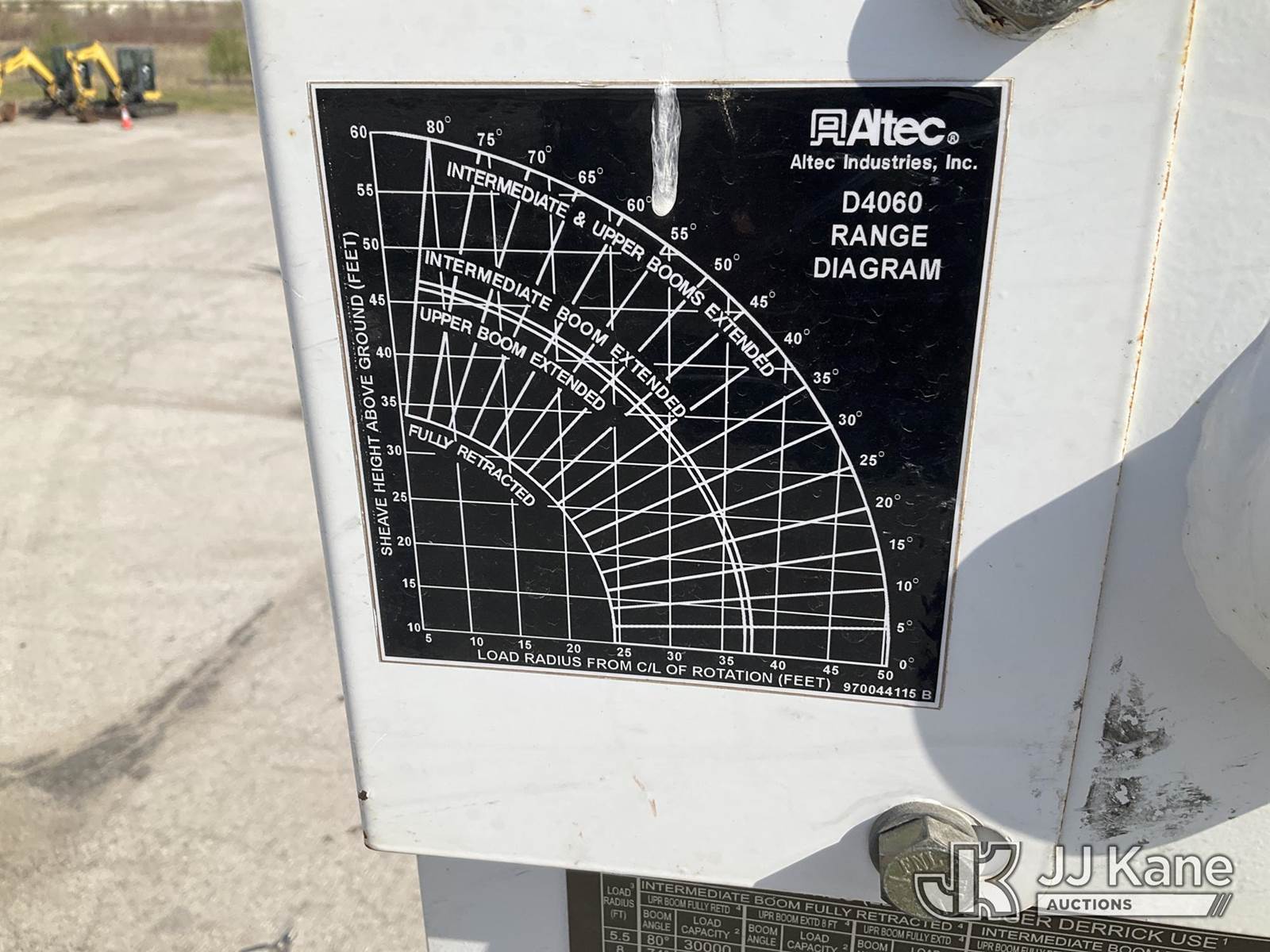 Altec D4060A-TR, 30,000 Lb Digger Derrick s/n 0212DF0475, with 60’ sheave height, 3 section hyd boom, 2 spd digger, heel winch, pole grabs, riding console & 4 hyd outriggers, rear mounted on 2013 Freightliner M2 T/A Flatbed/Utility Truck, Cummins 6X6, diesel, Auto, A/C, (44,741 miles) (Runs, Moves Slow & PTO Not Engaging, Upper Unit Untested) (Starts W/ Jump, Engine Derated/Limp Mode, No Power, Check Engine Lights On, PTO Not Engaging, Upper Unit Untested, Conditions Unknown, Front Diff Pinion Bearing Out, DEF Doser & Heater Lines Need Replaced, Upper Boom Extended Out Two Foot, Has Dents On Top Of Cab Corners, Missing Seat At Riding Seat & Winch Rope) (Reads 5,180 hours) This is a Titled Item NOTE: This unit is being sold AS IS/WHERE IS via Timed Auction and is located in Kansas City, MO. Inspection & preview days for this unit are the 2 business days prior to the first day of items closing for this auction, item is located at 962 Tel Aviv Ave Kansas City, MO 64153 and hours of operations are 8a-4p. For pre-sale questions, please contact Ricky McPherson @ (816) 610-2250. (Manuals provided in cab) (Buyer is responsible for removal. Assistance by consignor or JJ Kane Auctions is not assured.)