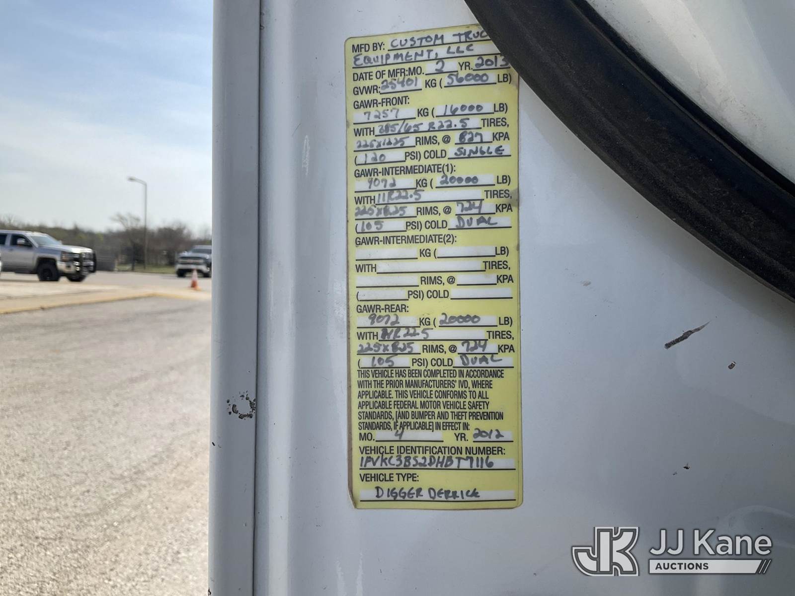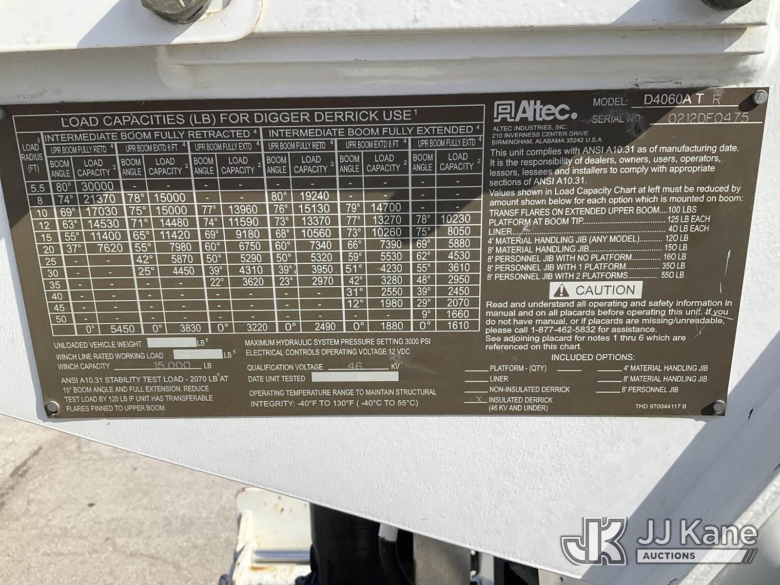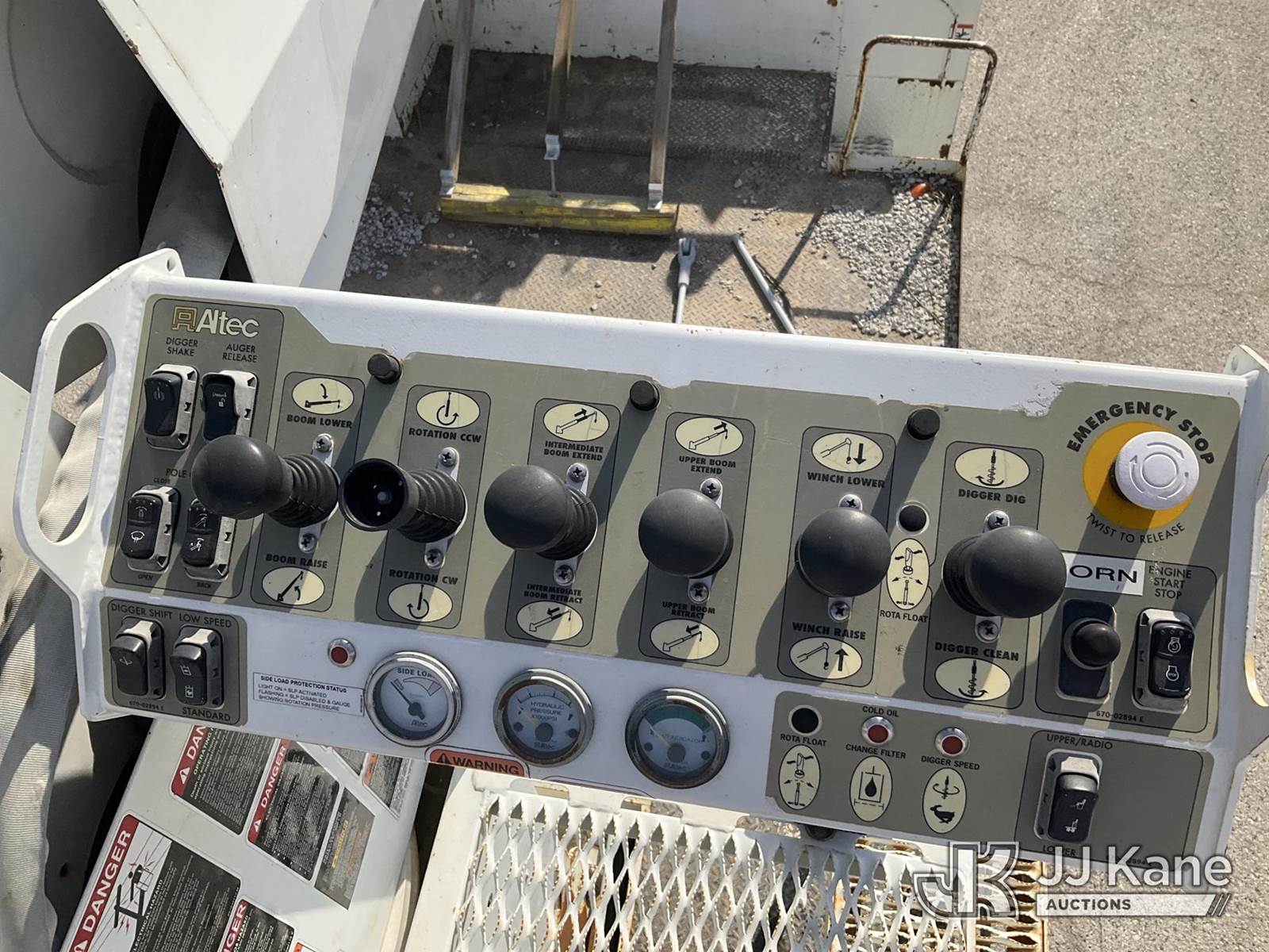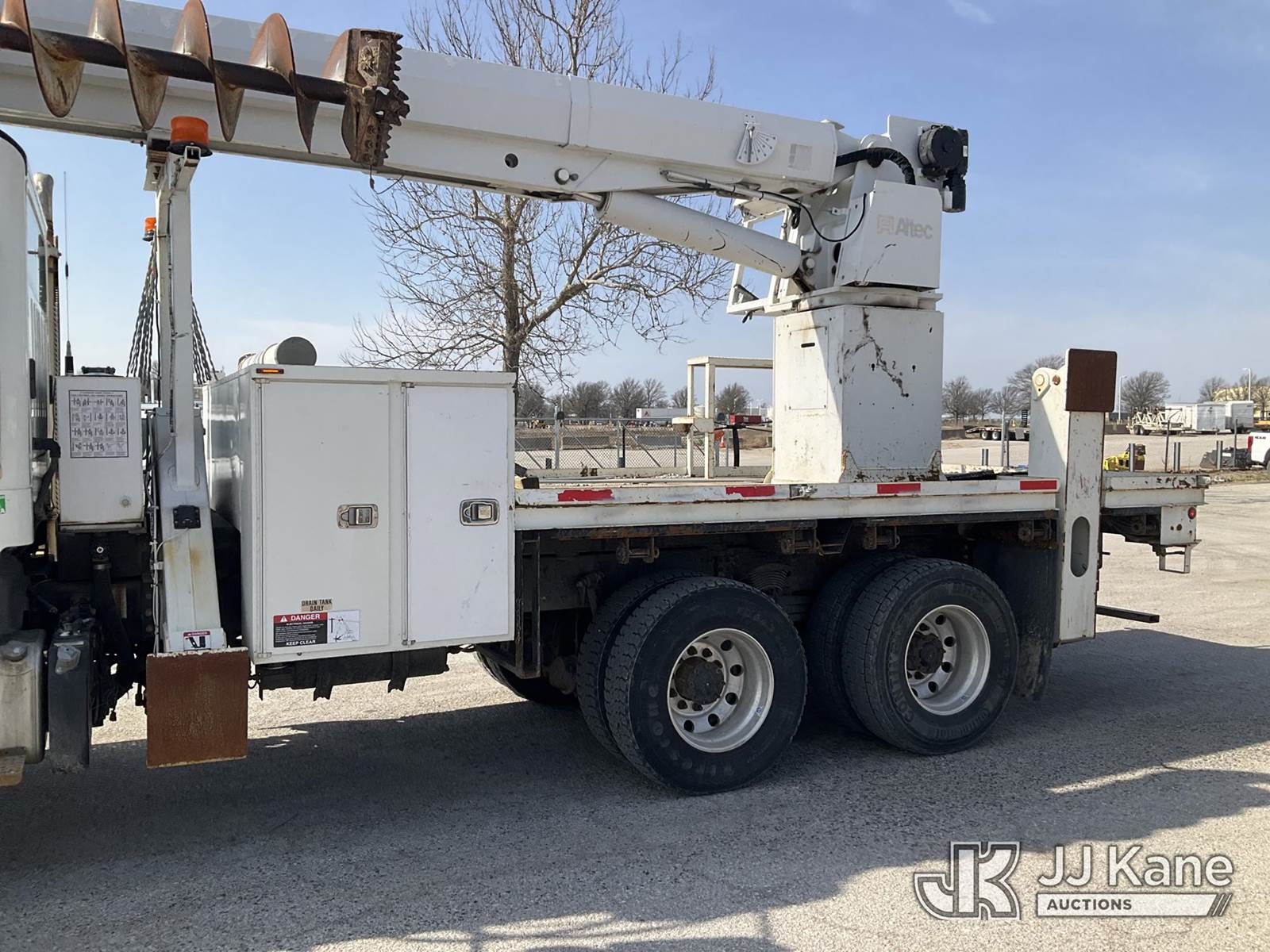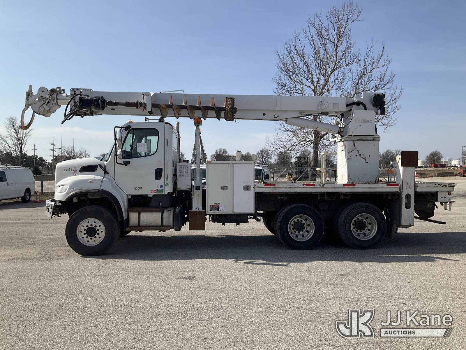 Altec D4060A-TR, 30,000 Lb Digger Derrick s/n 0212DF0475, with 60’ sheave height, 3 section hyd boom, 2 spd digger, heel winch, pole grabs, riding console & 4 hyd outriggers, rear mounted on 2013 Freightliner M2 T/A Flatbed/Utility Truck, Cummins 6X6, diesel, Auto, A/C, (44,741 miles) (Runs, Moves Slow & PTO Not Engaging, Upper Unit Untested) (Starts W/ Jump, Engine Derated/Limp Mode, No Power, Check Engine Lights On, PTO Not Engaging, Upper Unit Untested, Conditions Unknown, Front Diff Pinion Bearing Out, DEF Doser & Heater Lines Need Replaced, Upper Boom Extended Out Two Foot, Has Dents On Top Of Cab Corners, Missing Seat At Riding Seat & Winch Rope) (Reads 5,180 hours) This is a Titled Item NOTE: This unit is being sold AS IS/WHERE IS via Timed Auction and is located in Kansas City, MO. Inspection & preview days for this unit are the 2 business days prior to the first day of items closing for this auction, item is located at 962 Tel Aviv Ave Kansas City, MO 64153 and hours of operations are 8a-4p. For pre-sale questions, please contact Ricky McPherson @ (816) 610-2250. (Manuals provided in cab) (Buyer is responsible for removal. Assistance by consignor or JJ Kane Auctions is not assured.)
