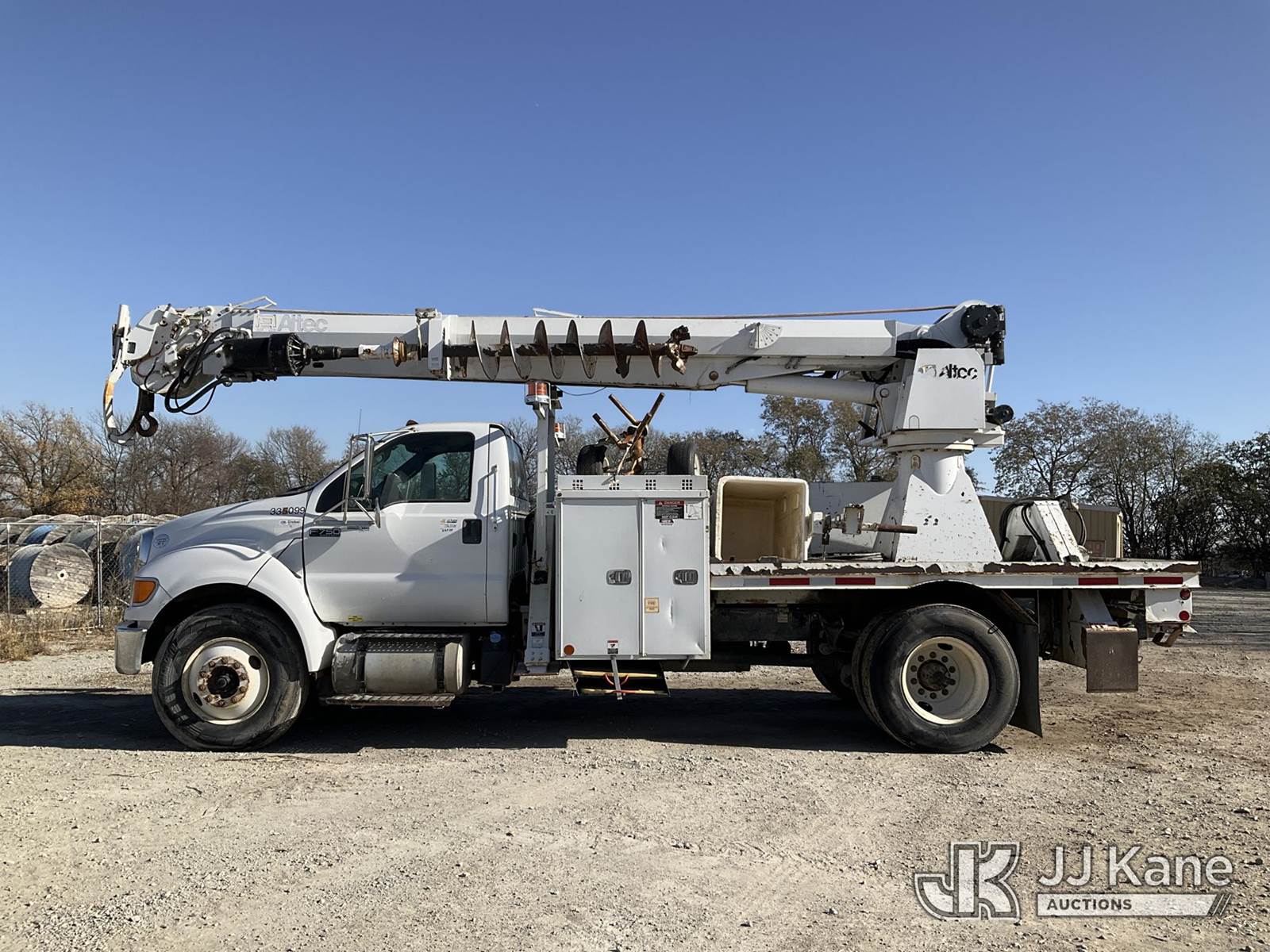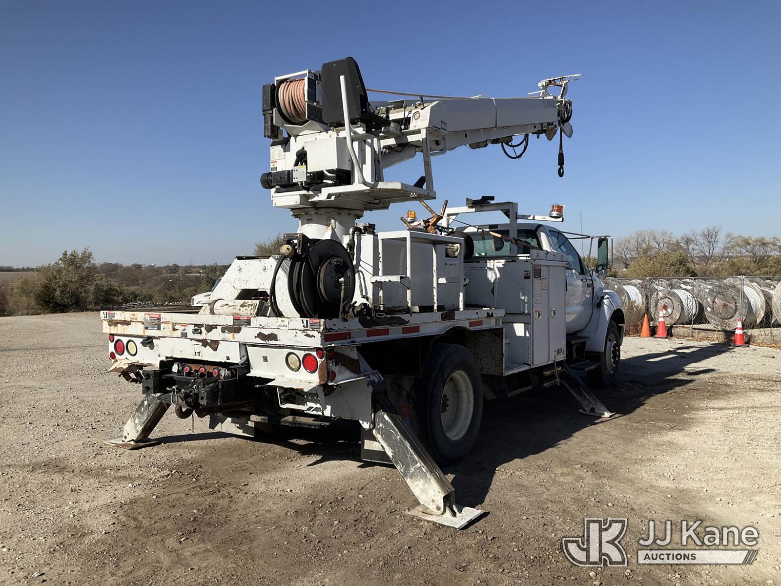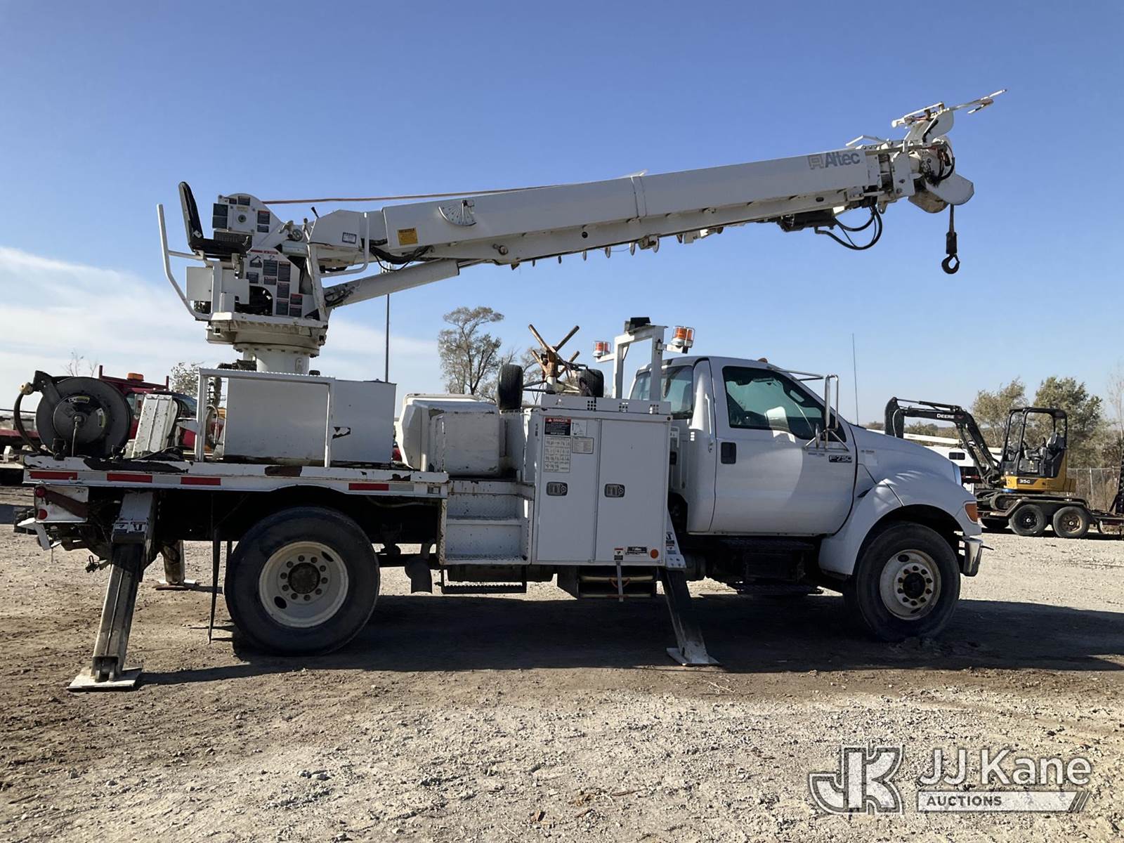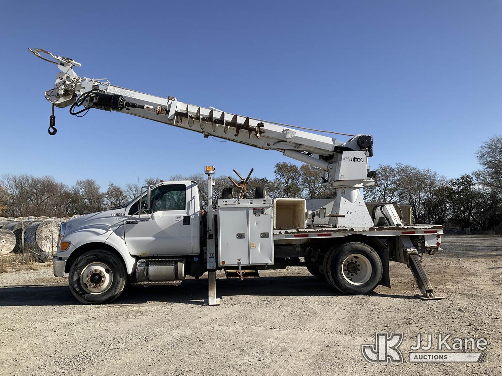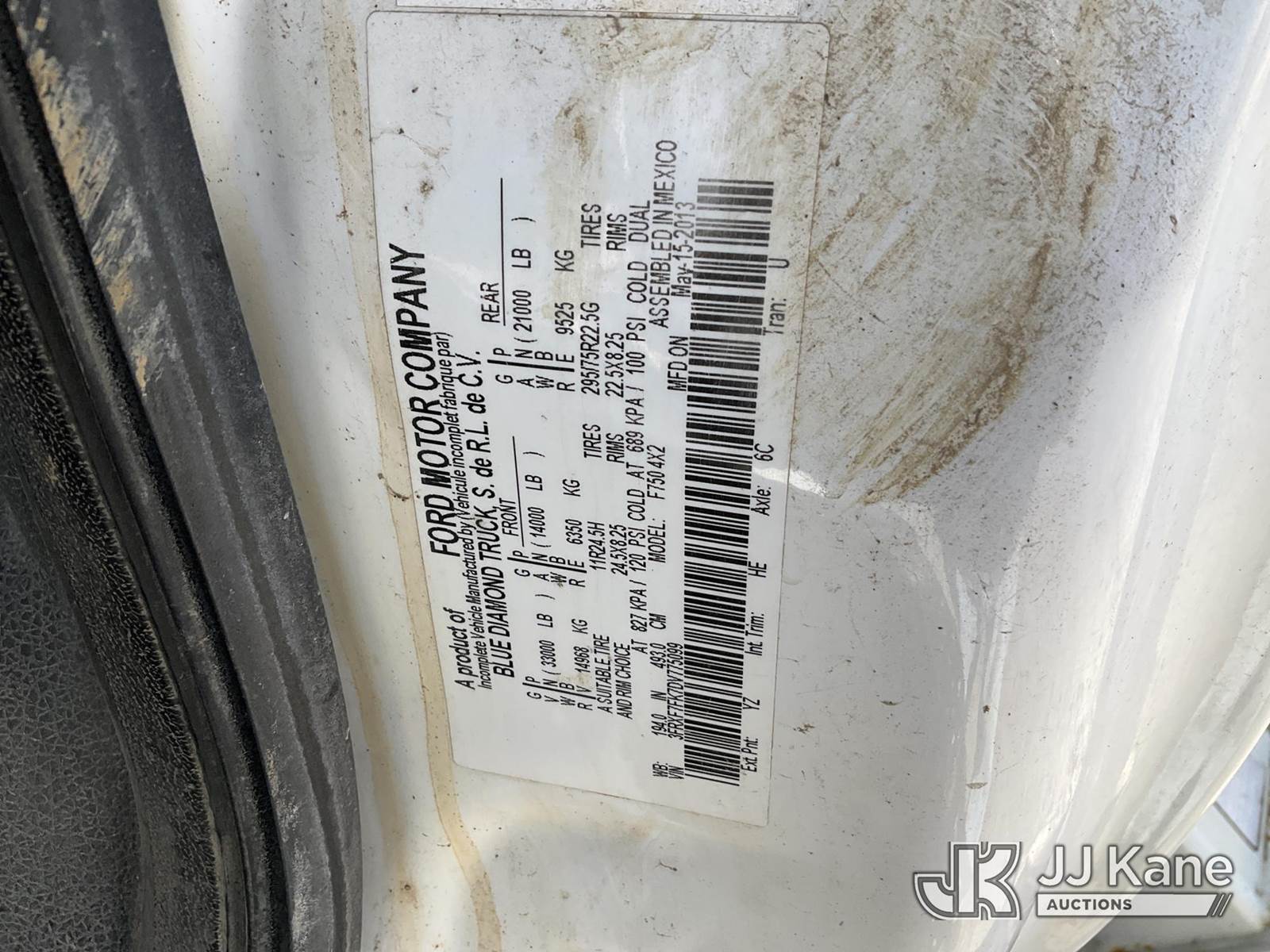 Altec DC47-TR, 23,790 Lb Digger Derrick s/n 0813EU0776, with 47' sheave height, 3 section hyd boom, 2 spd digger, heel winch, pole grabs & riding console, rear mounted on 2013 Ford F-750 Regular Cab 2WD DRW Flatbed/Utility Truck, 6.7L L6 DIESEL Auto, 4X2, diesel, A/C, (88,024 miles) (Runs, Moves, & Operates) (Check Engine Light On, Upper Controls Are Stiff, Boom Stow Pad Is Damaged, Interior Has Bad Odor) This is a Titled Item NOTE: This unit is being sold AS IS/WHERE IS via Timed Auction and is located in Papillion, NE. For more information & removal arrangements please contact Charlie de Kanter @ (281) 910-7147. Load out by appointment only, Buyer/Hauler must present copy of paid invoice upon arrival. Purchaser acknowledges ALL lots must be removed within 5 business days of Auction, or a storage fee may be incurred. For load out and pick up information, please reference the release form sent out after purchase. (Buyer is responsible for removal. Assistance by consignor or JJ Kane Auctioneers is not assured.)