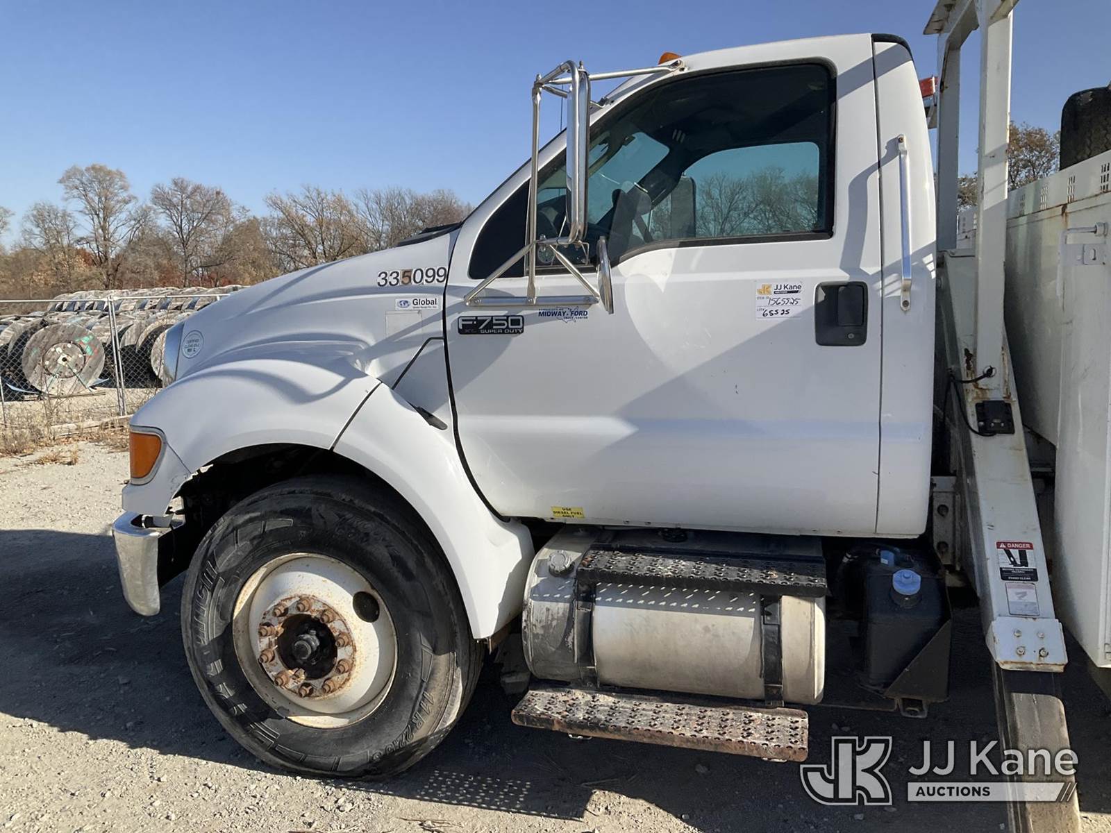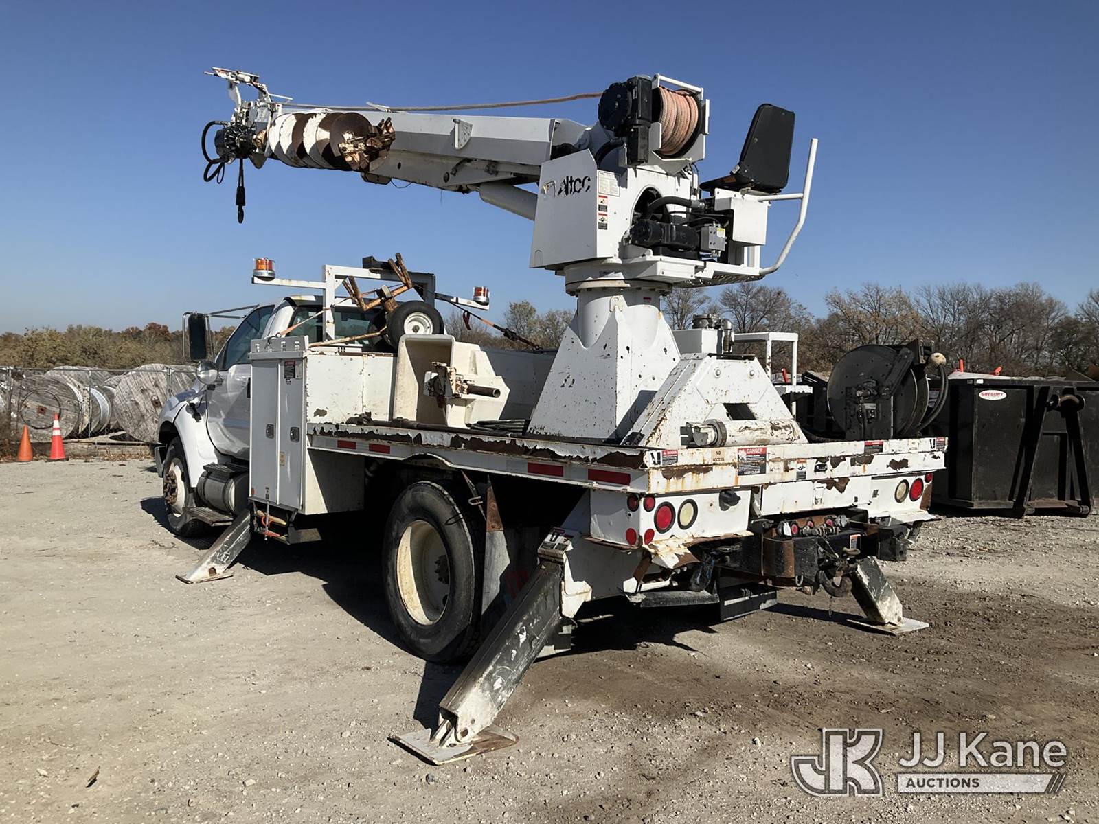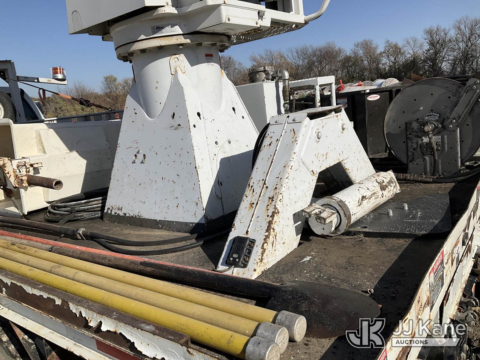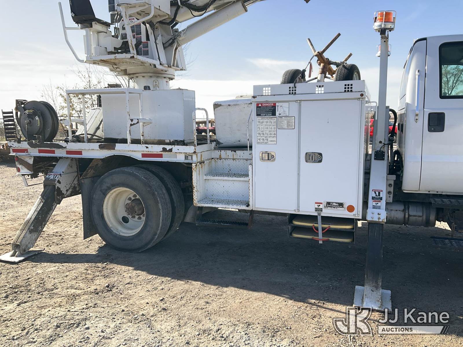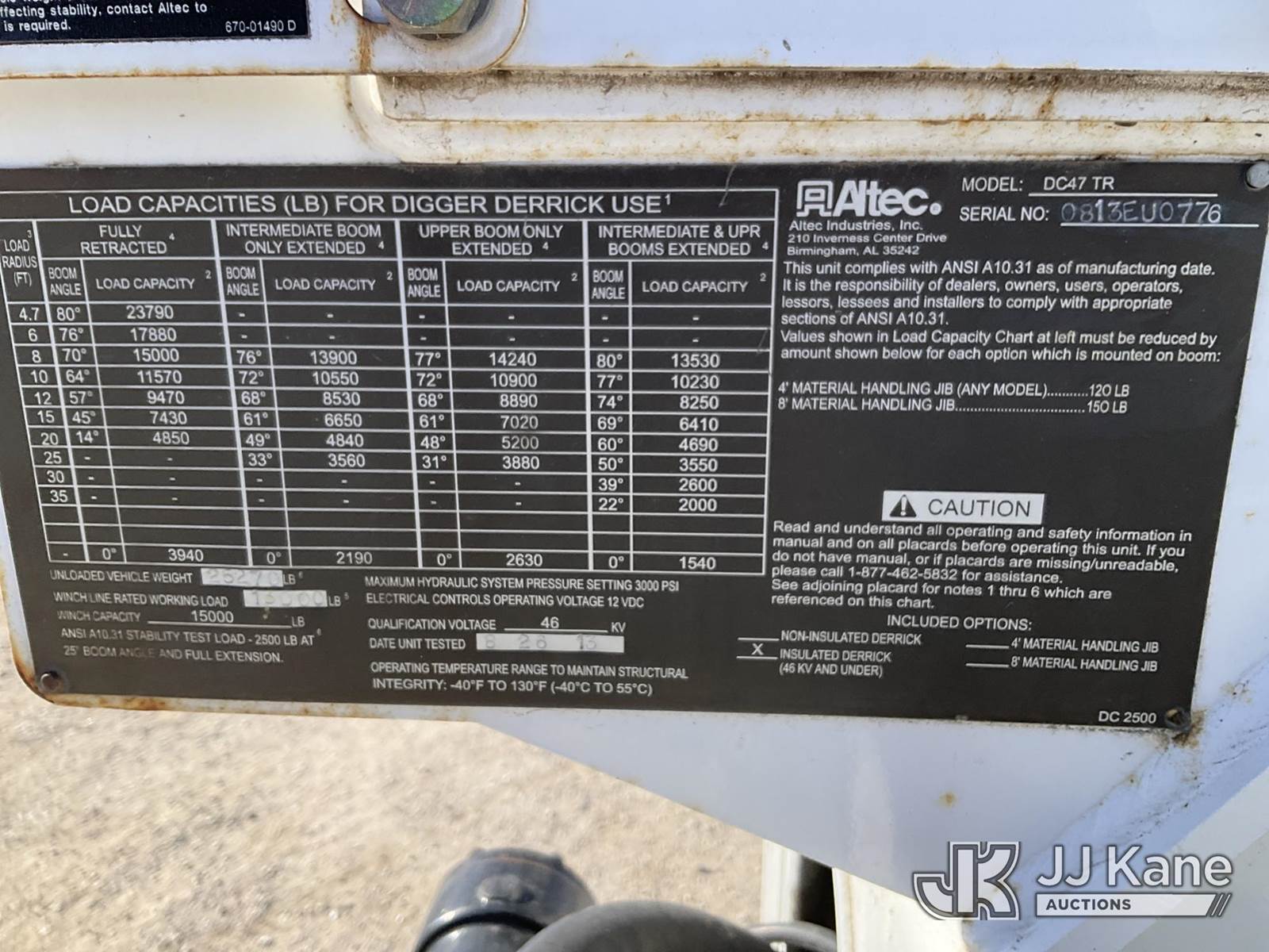 Altec DC47-TR, 23,790 Lb Digger Derrick s/n 0813EU0776, with 47' sheave height, 3 section hyd boom, 2 spd digger, heel winch, pole grabs & riding console, rear mounted on 2013 Ford F-750 Regular Cab 2WD DRW Flatbed/Utility Truck, 6.7L L6 DIESEL Auto, 4X2, diesel, A/C, (88,024 miles) (Runs, Moves, & Operates) (Check Engine Light On, Upper Controls Are Stiff, Boom Stow Pad Is Damaged, Interior Has Bad Odor) This is a Titled Item NOTE: This unit is being sold AS IS/WHERE IS via Timed Auction and is located in Papillion, NE. For more information & removal arrangements please contact Charlie de Kanter @ (281) 910-7147. Load out by appointment only, Buyer/Hauler must present copy of paid invoice upon arrival. Purchaser acknowledges ALL lots must be removed within 5 business days of Auction, or a storage fee may be incurred. For load out and pick up information, please reference the release form sent out after purchase. (Buyer is responsible for removal. Assistance by consignor or JJ Kane Auctioneers is not assured.)