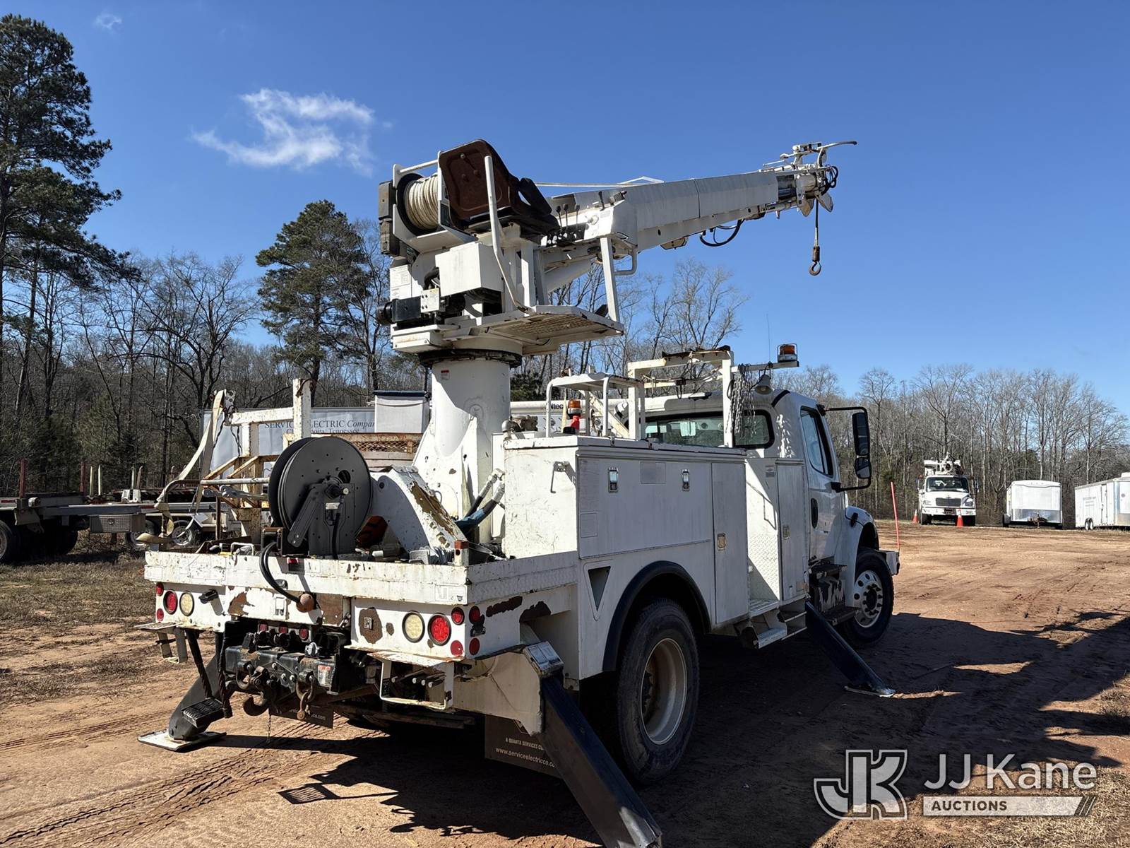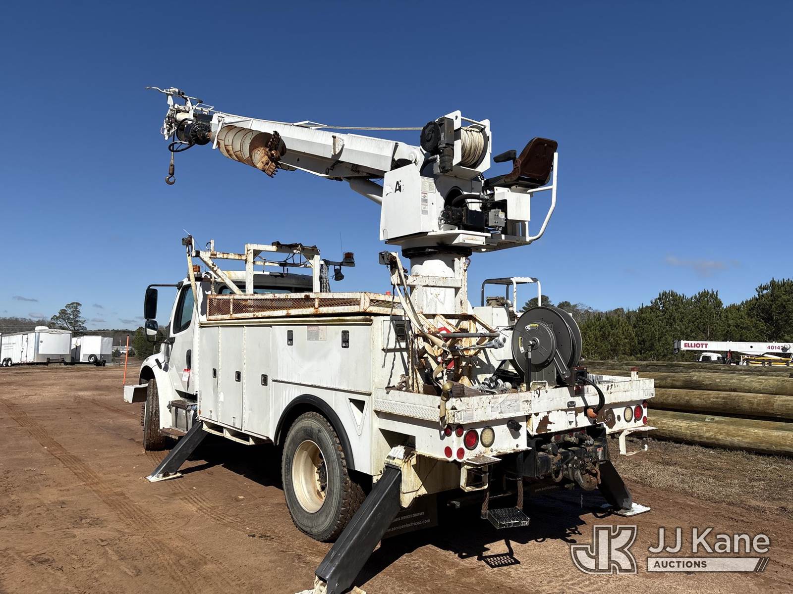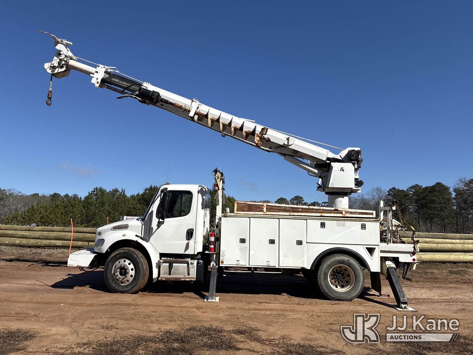 Altec DC47-TR, 23,790 Lb Digger Derrick s/n 0712EU0520, rear mounted on 2013 Freightliner M2 106 Utility Truck, 6.7L diesel, 4X2, Auto, A/C, (83,023 miles) (Runs, Moves & Upper Operates) This is a Titled Item NOTE: This unit is being sold AS IS/WHERE IS via Timed Auction and is located in Zebulon, GA. For more information & removal arrangements please contact Brian Sandon @ 704-904-7346. (Missing manuals, See Auction Company for Manufacturers Information to obtain manuals) (Buyer is responsible for removal. Assistance by consignor or JJ Kane Auctions is not assured.)