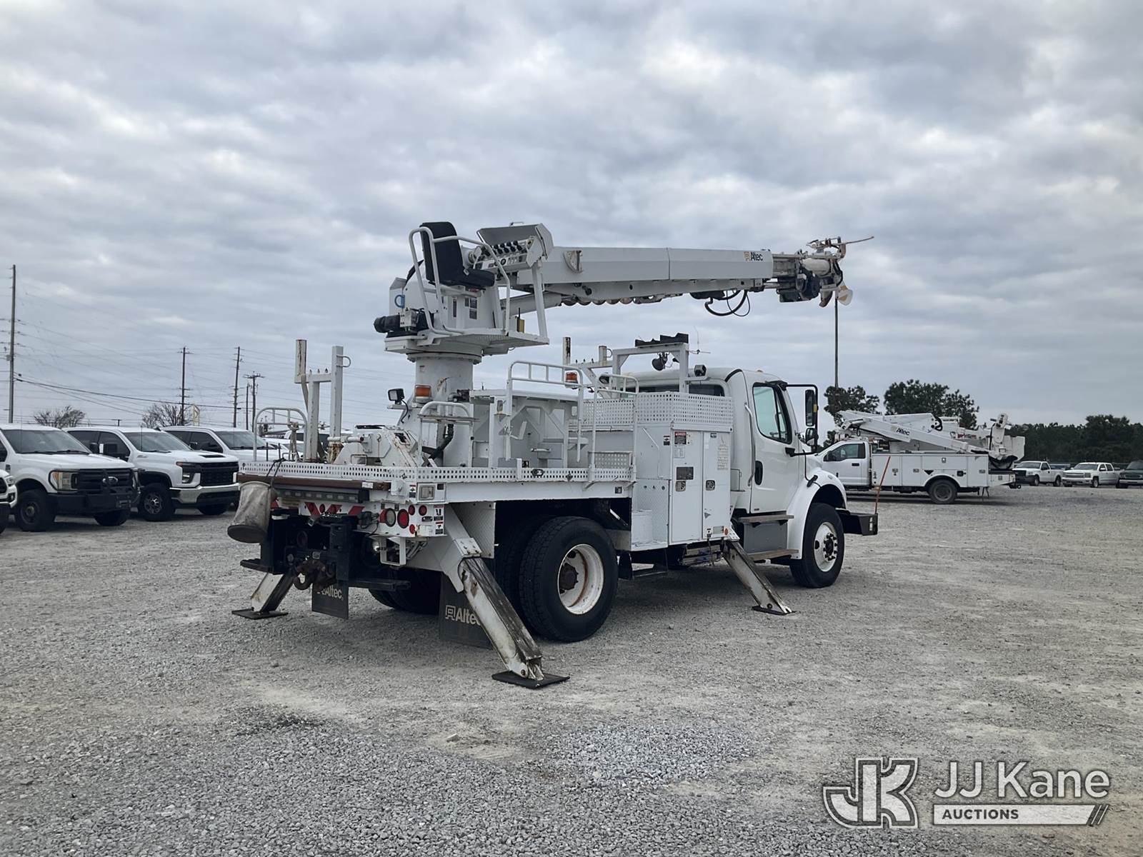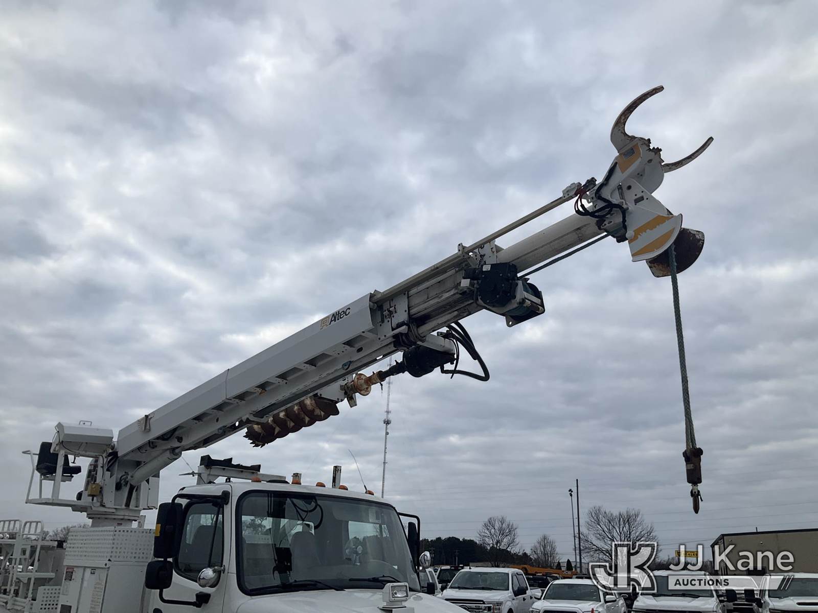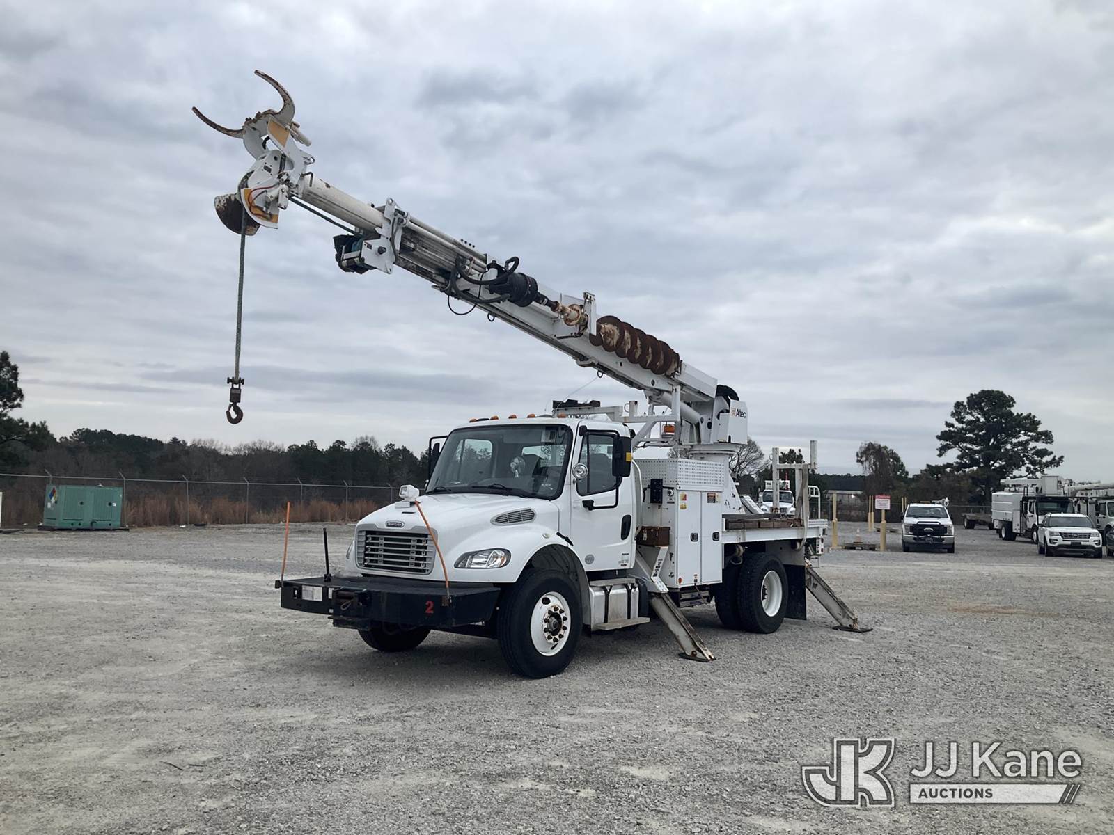 Altec DM47-BR, 17,730 Lb Digger Derrick s/n 0314DV6266, with 47 ft. sheave height, 3 section hyd boom, 2 spd digger, tip winch, pole guides, riding console, remote & 4 hyd outriggers, rear mounted on 2013 Freightliner M2 106 Flatbed/Utility Truck, Cummins 6.7L diesel, Auto, with front winch, (58,014 miles) (Runs, Moves & Operates) (Body/Paint Damage) This is a Titled Item NOTE: This unit is being sold AS IS/WHERE IS via Timed Auction and is located in Villa Rica, GA. Inspection & preview days for this unit are the 2 business days prior to the first day of items closing for this auction, item is located at 100 Liberty Rd Villa Rica, GA 30180 and hours of operations are 8a-4p. For pre-sale questions, please contact Office Staff @ (470) 590-8453. (Manuals provided in cab) (Buyer is responsible for removal. Assistance by consignor or JJ Kane Auctions is not assured.)