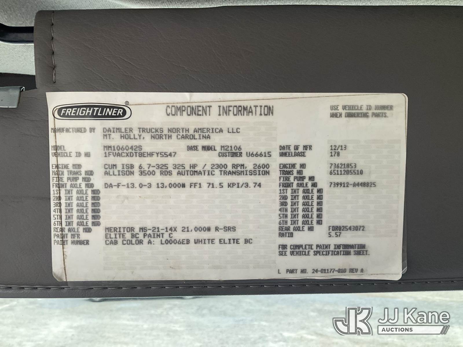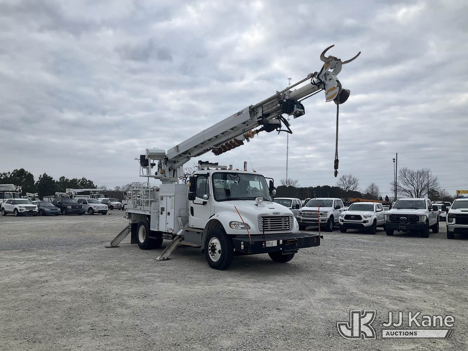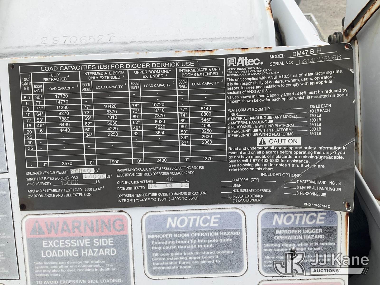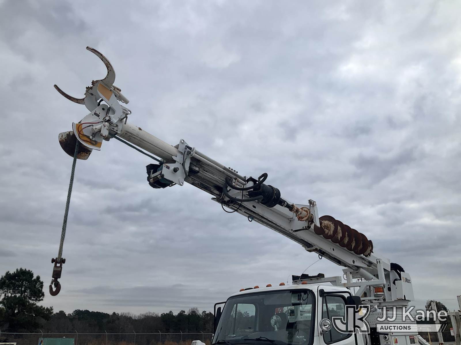 Altec DM47-BR, 17,730 Lb Digger Derrick s/n 0314DV6266, with 47 ft. sheave height, 3 section hyd boom, 2 spd digger, tip winch, pole guides, riding console, remote & 4 hyd outriggers, rear mounted on 2013 Freightliner M2 106 Flatbed/Utility Truck, Cummins 6.7L diesel, Auto, with front winch, (58,014 miles) (Runs, Moves & Operates) (Body/Paint Damage) This is a Titled Item NOTE: This unit is being sold AS IS/WHERE IS via Timed Auction and is located in Villa Rica, GA. Inspection & preview days for this unit are the 2 business days prior to the first day of items closing for this auction, item is located at 100 Liberty Rd Villa Rica, GA 30180 and hours of operations are 8a-4p. For pre-sale questions, please contact Office Staff @ (470) 590-8453. (Manuals provided in cab) (Buyer is responsible for removal. Assistance by consignor or JJ Kane Auctions is not assured.)