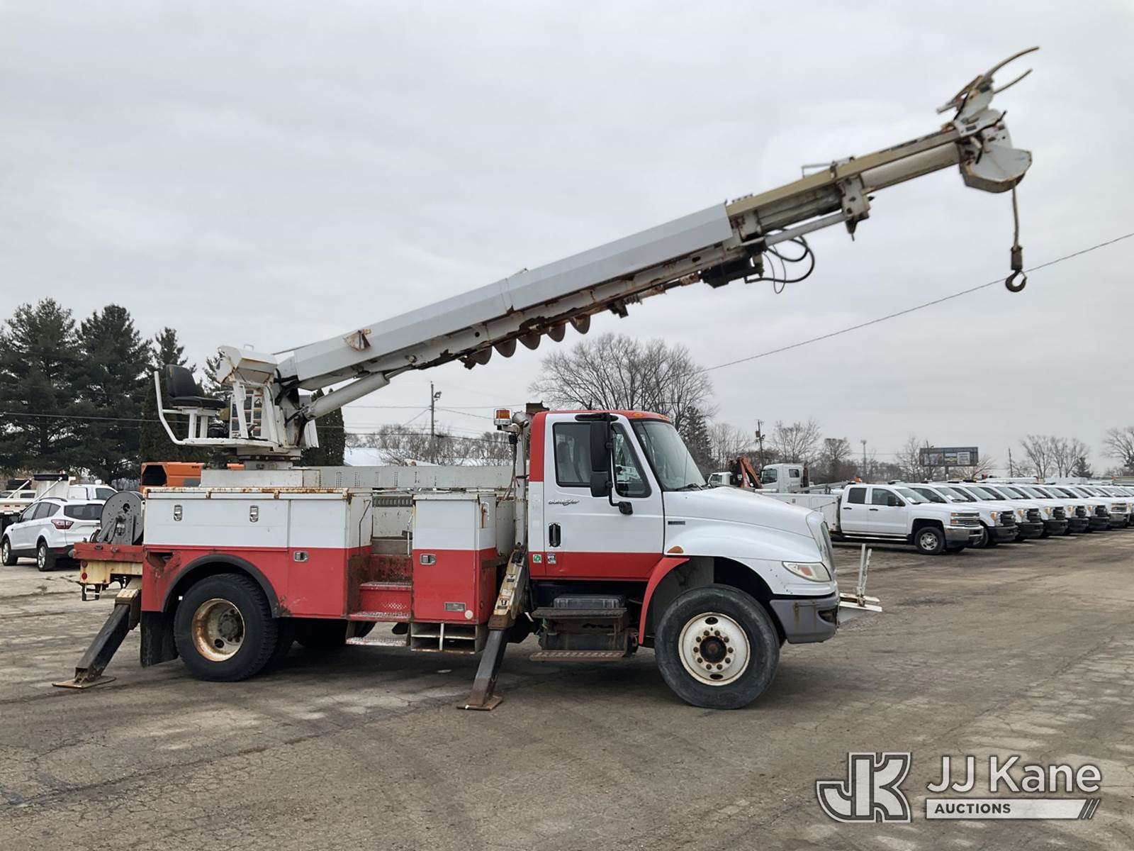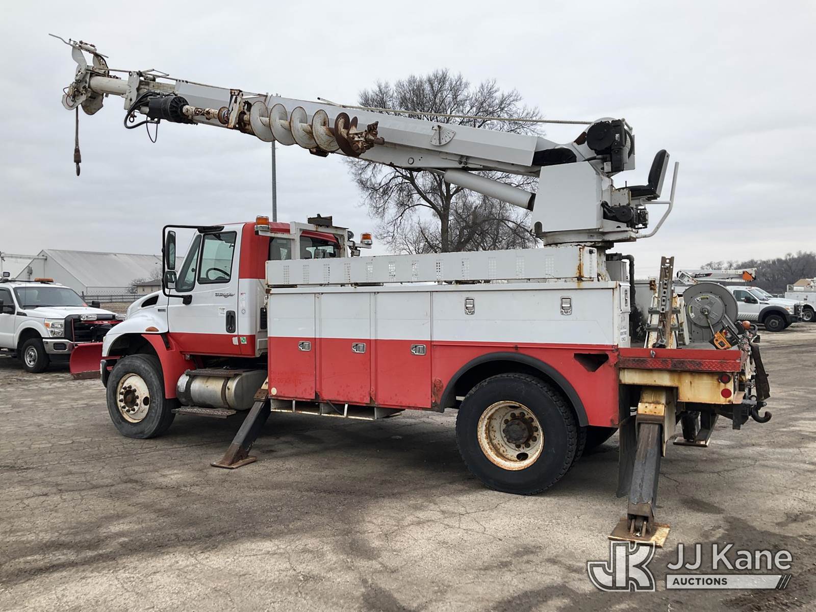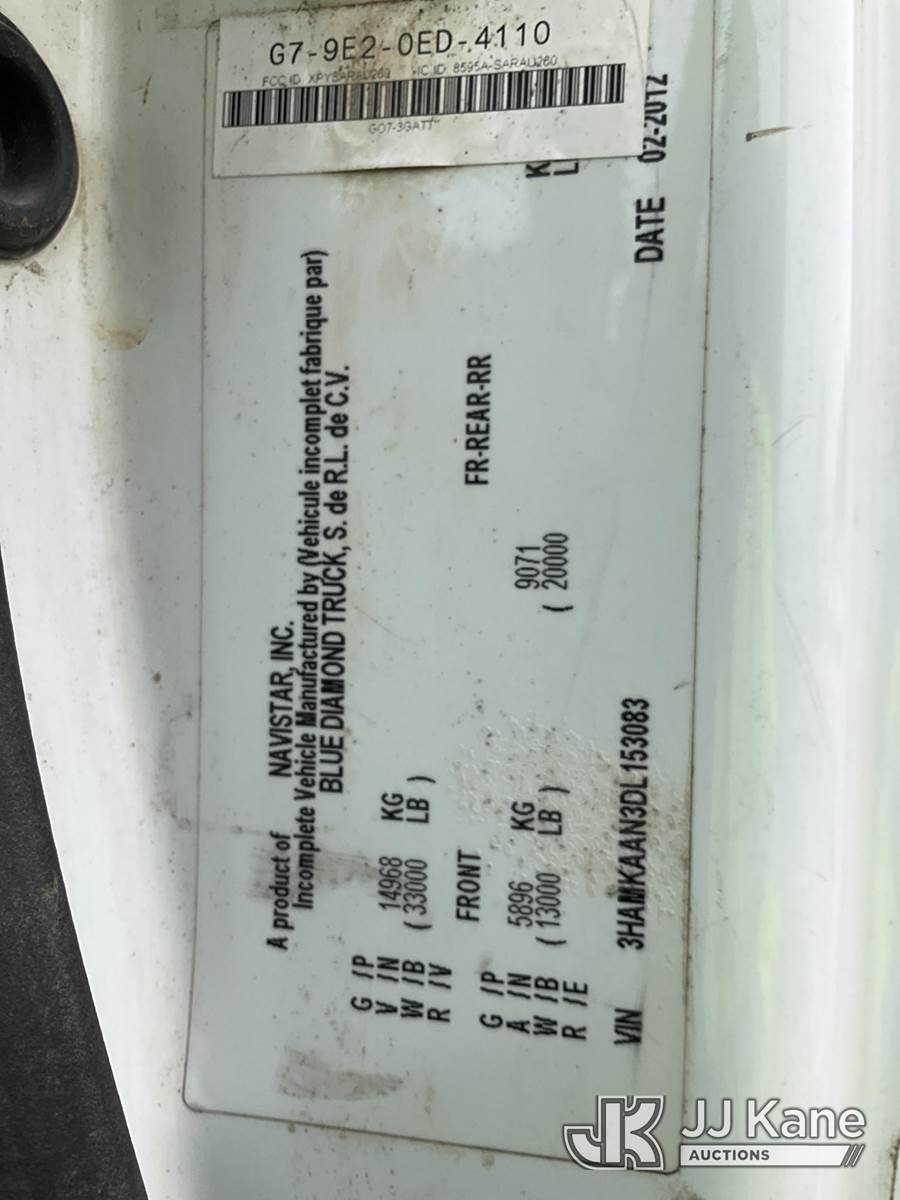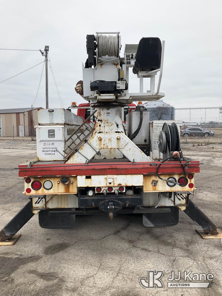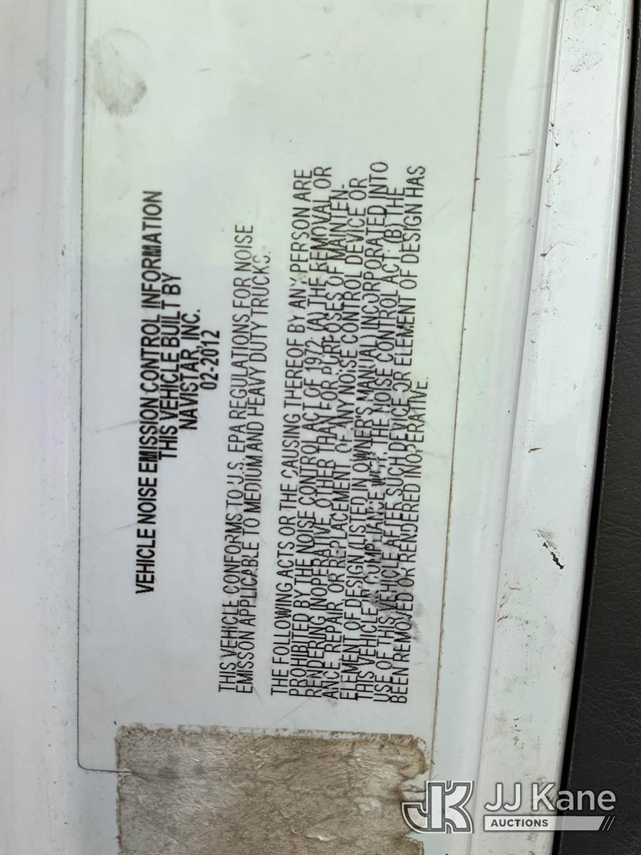 Altec DM47T, 23,790 Lb Digger Derrick s/n 0212DV5587, with 47 ft. sheave height, 3 section hyd boom, 2-spd digger, pole guides, heel winch, wireless remote & riding console, rear mounted on 2013 International DuraStar 4400 Utility Truck, MaxxForce Diesel, 4X2, Auto, A/C, (107,993 miles) (Runs, Moves & Upper Operates)(Damage on Passenger Door, Service Body Rusty)( The manufacturer has notified JJ Kane that this equipment is subject to an open recall. CSN 568 Auger Extension Shaft Hub Inspection CSN 586 Winch Motor Mounting Capscrew Inspection CSN 713A Reinforcement Plate Installation CSN 719 Slope Indicator Modification The equipment should not be operated until this is addressed. Buyer is responsible for reviewing the recall notice and contacting the manufacturer to schedule the recommended corrective actions. Associated costs may be covered by the manufacturer in some cases.) (Reads 10,395 hours) This is a Titled Item NOTE: This unit is being sold AS IS/WHERE IS via Timed Auction and is located in South Beloit, IL. Inspection & preview days for this unit are the 2 business days prior to the first day of items closing for this auction, item is located at 14354 Dearborn Ave South Beloit, IL and hours of operations are 8a-4p. For pre-sale questions, please contact Derek Eklund at (608) 904-0618 or (derek.eklund@jjkane.com). (Manuals provided in cab) (Buyer is responsible for removal. Assistance by consignor or JJ Kane Auctions is not assured.)