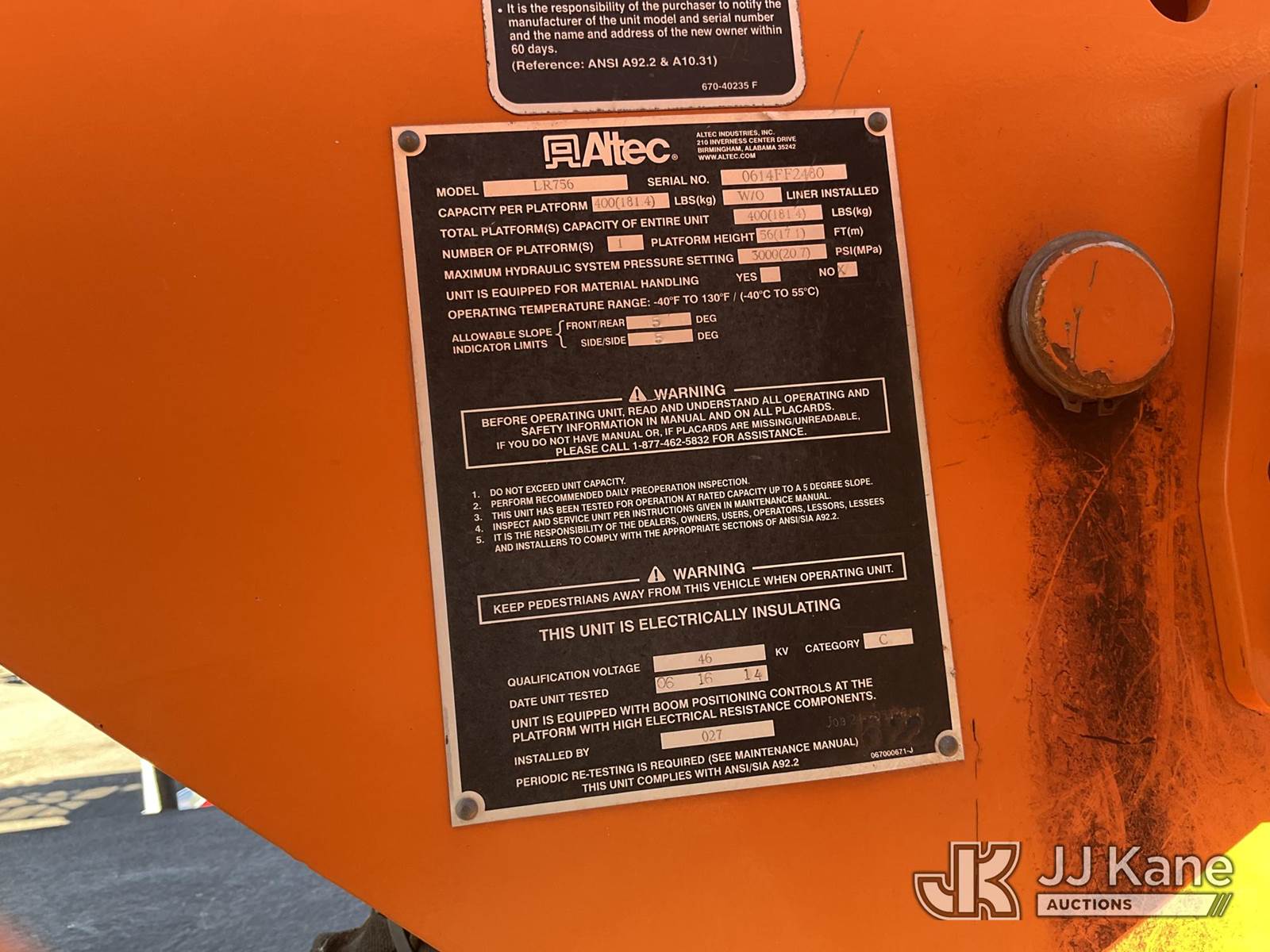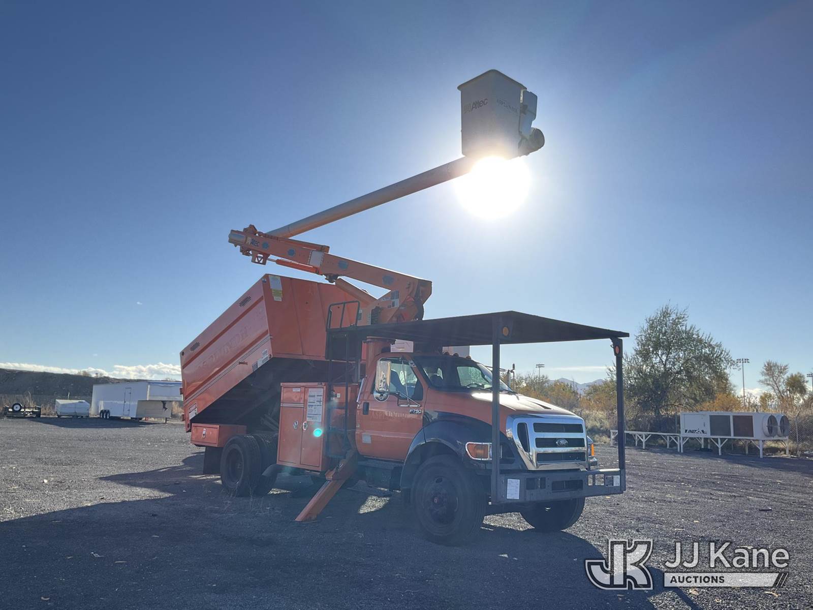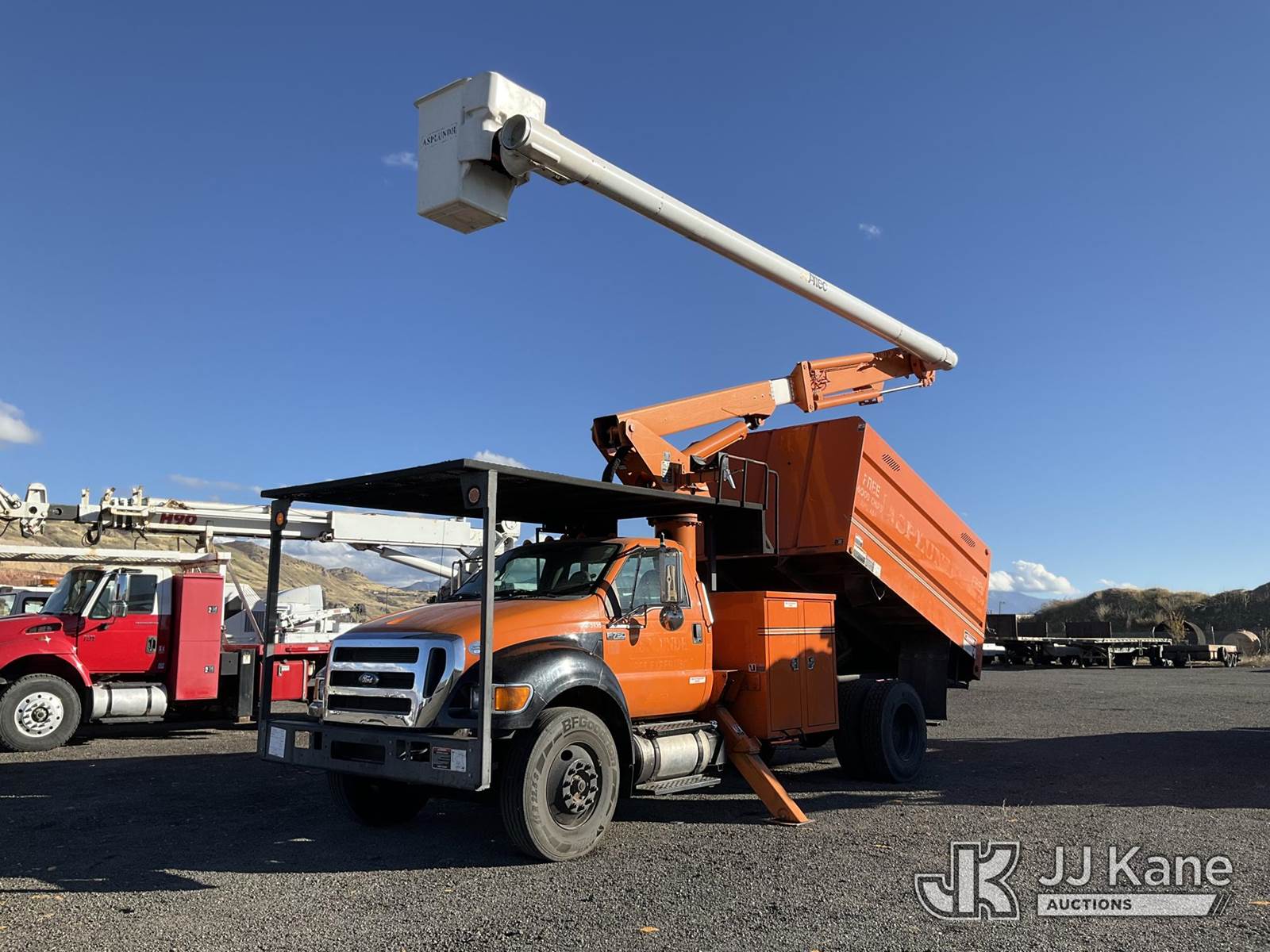 Altec LR756, 61 ft, Articulating Non-Over Center Bucket Truck s/n 0614FF2460, with single man bucket, 2 hyd outriggers, mounted behind cab on 2013 Ford F750 Chipper Dump Truck, Cummins 6-spd, diesel, A/C, with cab guard, (33,977 miles) (Runs, Does Not Move, Upper Operates, Dump Operates) (Driveline Removed, Smokes When On - Wiring Issues - Water Pump Leaks, Check Engine Light On) This is a Titled Item NOTE: This unit is being sold AS IS/WHERE IS via Timed Auction and is located in Salt Lake City, UT. Inspection & preview days for this unit are the 2 business days prior to the first day of items closing for this auction, item is located at 2353 N Redwood Rd Salt Lake City, UT 84116 and hours of operations are 8a-4p. Titles executed exactly as bidder registered. Ensure your name and/or business name and address in JJ Kane and/or ProxiBid is correct before bidding. For pre-sale questions, please contact Office Staff @ (801) 519-0123. (Manuals provided in cab) (Buyer is responsible for removal. Assistance by consignor or JJ Kane Auctioneers is not assured.)