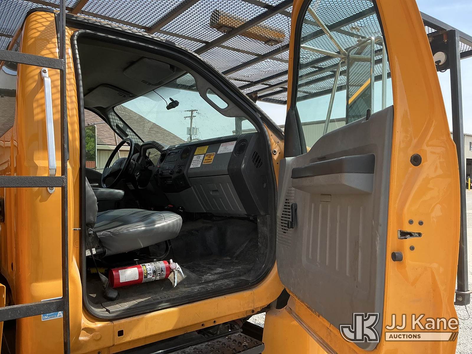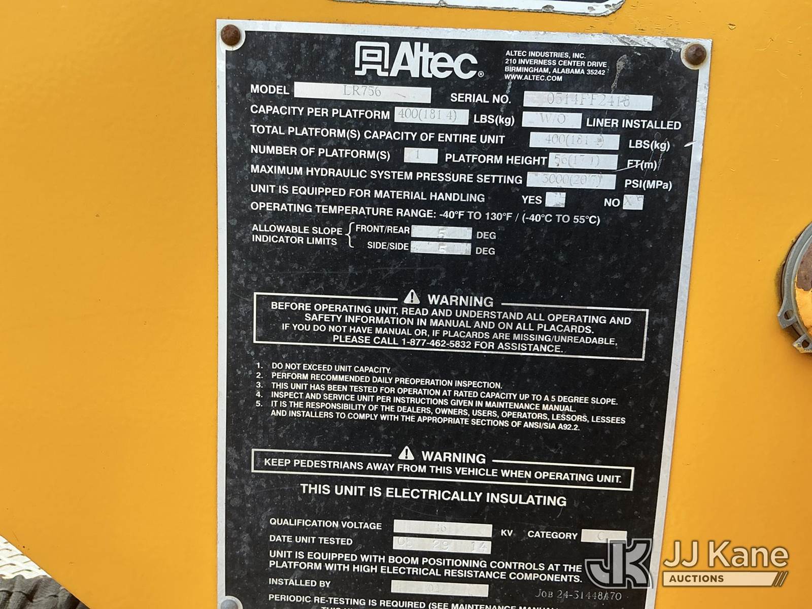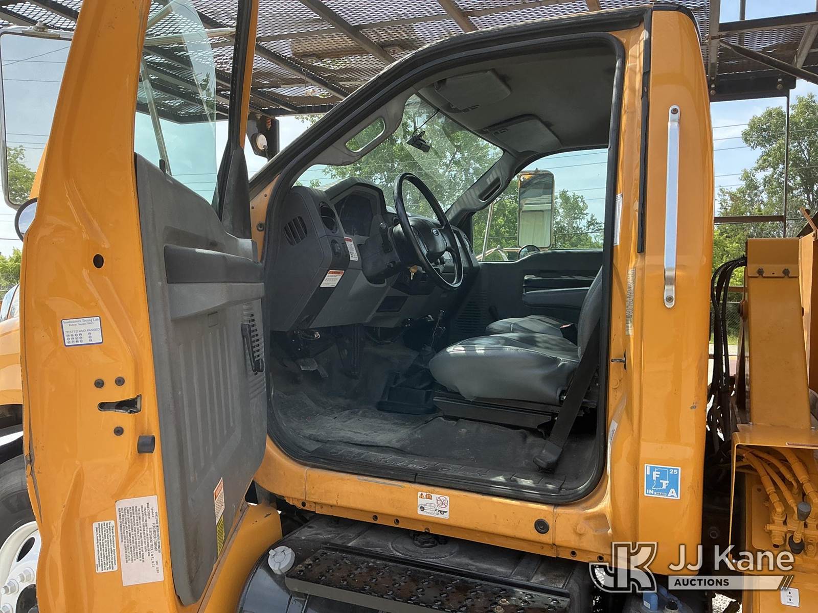 Altec LR756, 61 ft, Over-Center Bucket Truck s/n 0514FF2418, with single-man bucket, mounted behind cab on 2013 Ford F750 Chipper Dump Truck, Cummins 6.7L Auto, diesel, with 11 ft. body, (90,565 miles) (Runs & Moves) (Upper Condition Unknown, Body/Paint Damage) (Sellers Red Tag States: Rotation Gear Out, DO NOT OPERATE, Boom Damage) (**Dealer Only** Seller states this item has been removed from service due to the listed safety repairs not being completed. The safety items below must be completed by an approved OEM facility before the unit can return to service: ROTATION GEARBOX DAMAGED; REQUIRES ANSI INSPECTION FOR ANY ADDITIONAL DAMAGE AND REQUIRED REPAIRS; COMPLETE ANY REQUIRED TESTING AFTER REPAIRS ARE COMPLETED) (Bidding Restricted to Licensed Vehicle Dealers Only), This is a Titled Item NOTE: This unit is being sold AS IS/WHERE IS via Timed Auction and is located in Verona, KY. Inspection & preview days for this unit are the 2 business days prior to the first day of items closing for this auction, item is located at 2841 Verona-Mudlick Rd Ste B Verona, KY 41092 and hours of operations are 8a-4p. For pre-sale questions, please contact Office Staff @ (502) 612-5080. Auctioneer Michael Whitebread / License # 256617. (Manuals provided in cab) (Buyer is responsible for removal. Assistance by consignor or JJ Kane Auctioneers is not assured.)