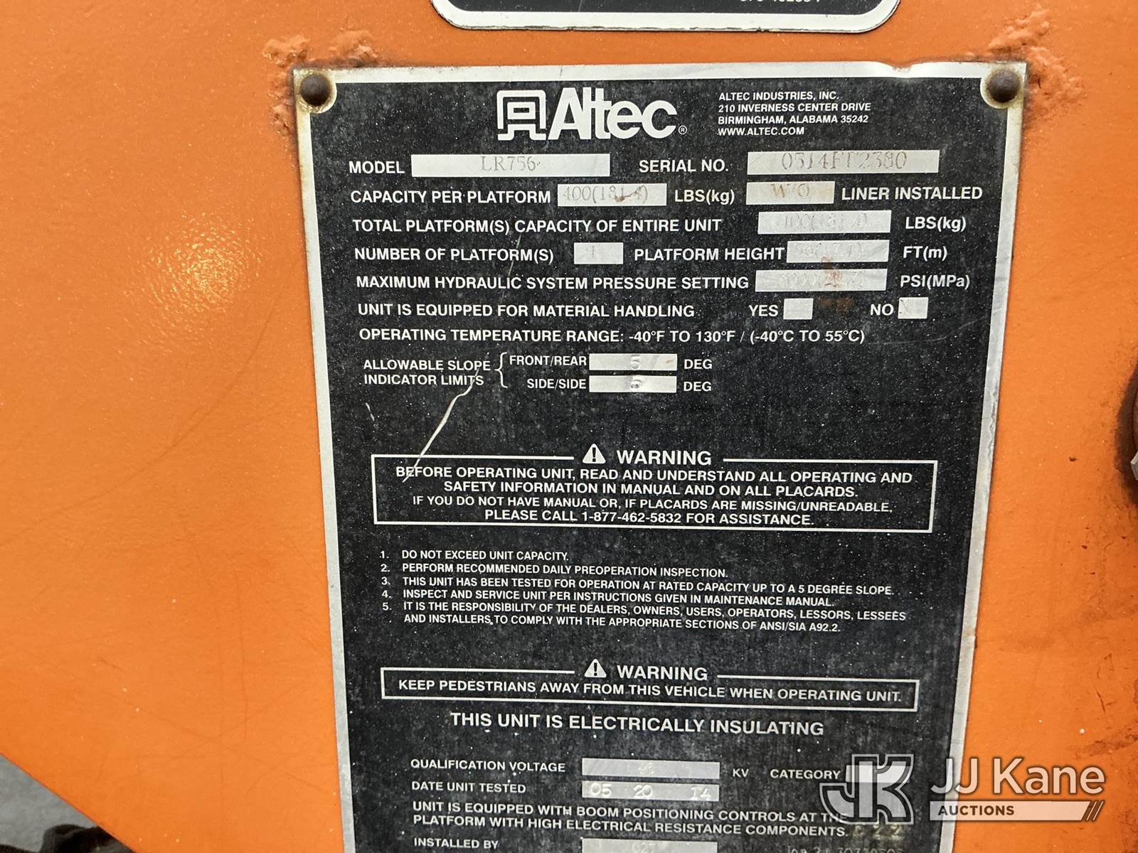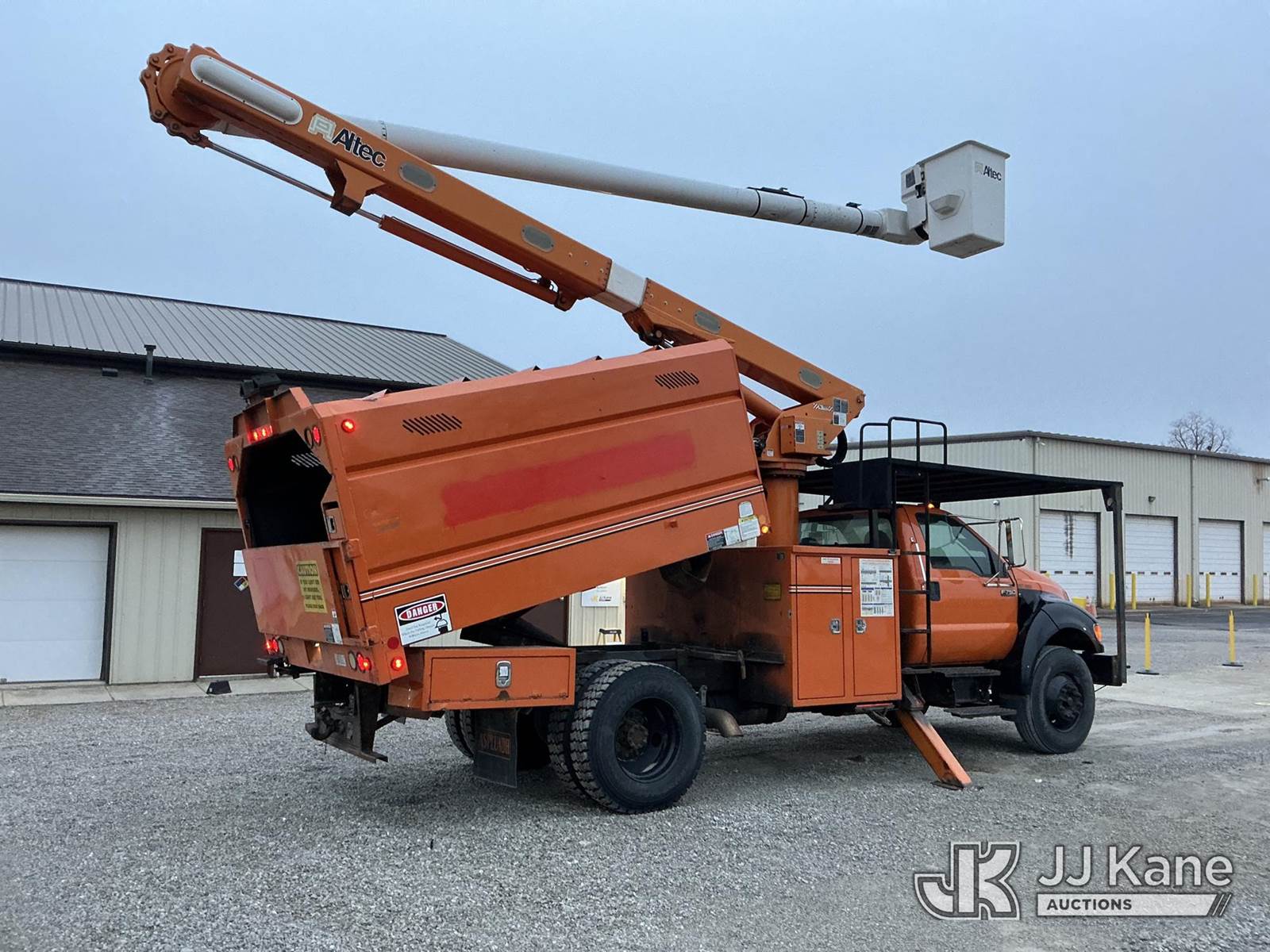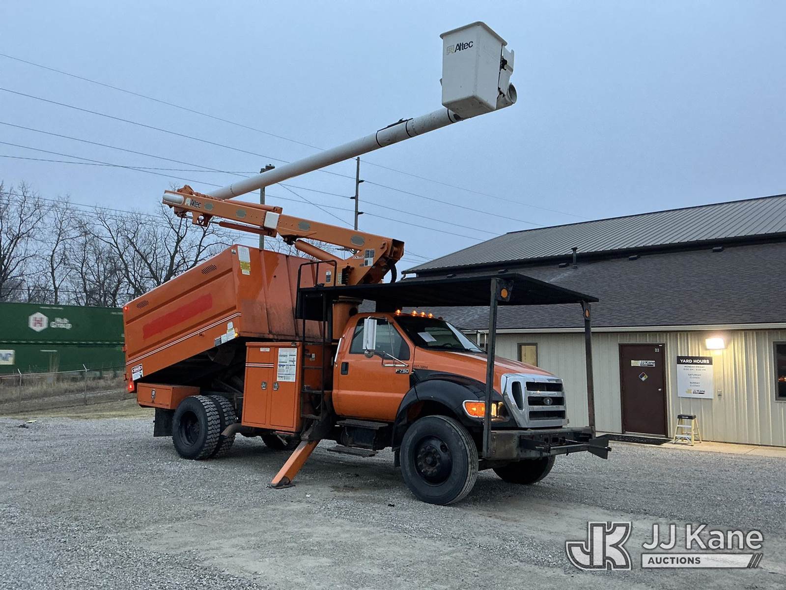 Altec LR756, 61 ft, Over-Center Bucket Truck s/n 0514FF2380, with single-man bucket & 2 hyd outriggers, mounted behind cab on 2013 Ford F-750 Regular Cab 2WD DRW Chipper Dump Truck, 6.7L L6 DIESEL 6-spd, 4X2, (79,933 miles) (Runs, Moves & Upper Operates) (Seller States Dump Hoist Needs Replaced, Service Engine Light On) (Reads 6,685 hours) This is a Titled Item NOTE: This unit is being sold AS IS/WHERE IS via Timed Auction and is located in Fort Wayne, IN. For more information & removal arrangements please contact Office Staff @ (260) 450-9822. Load out by appointment only, Buyer/Hauler must present copy of paid invoice upon arrival. Purchaser acknowledges ALL lots must be removed within (10) business days of Auction, or a storage fee may be incurred. For load out and pick up information, please reference the hauler sheet sent out after purchase. (Manuals provided in cab) (Buyer is responsible for removal. Assistance by consignor or JJ Kane Auctions is not assured.)