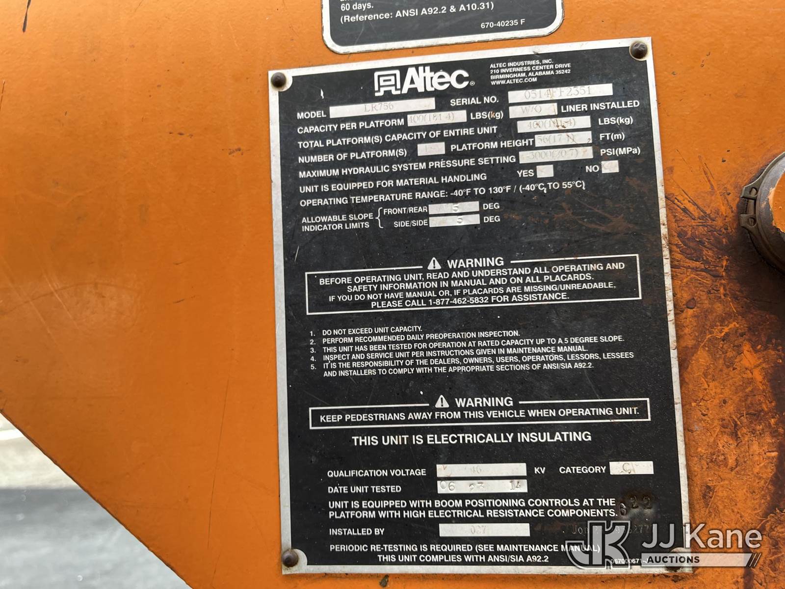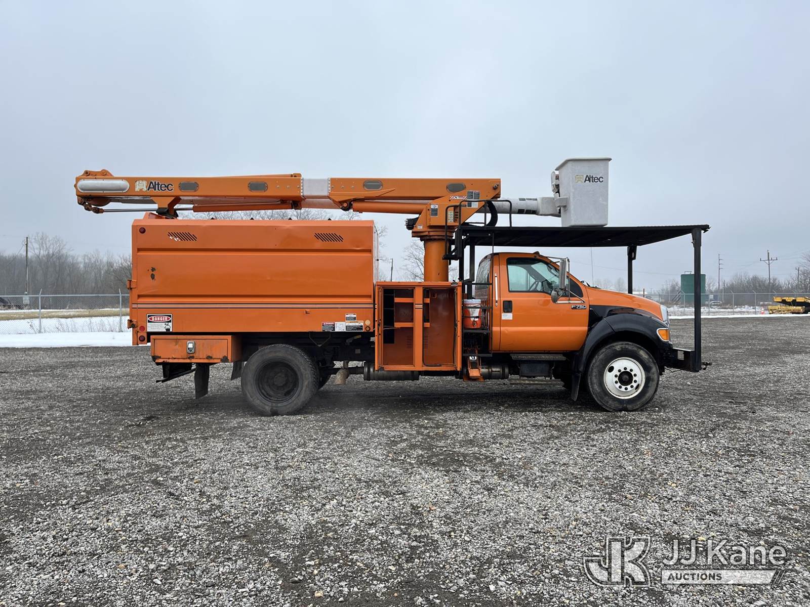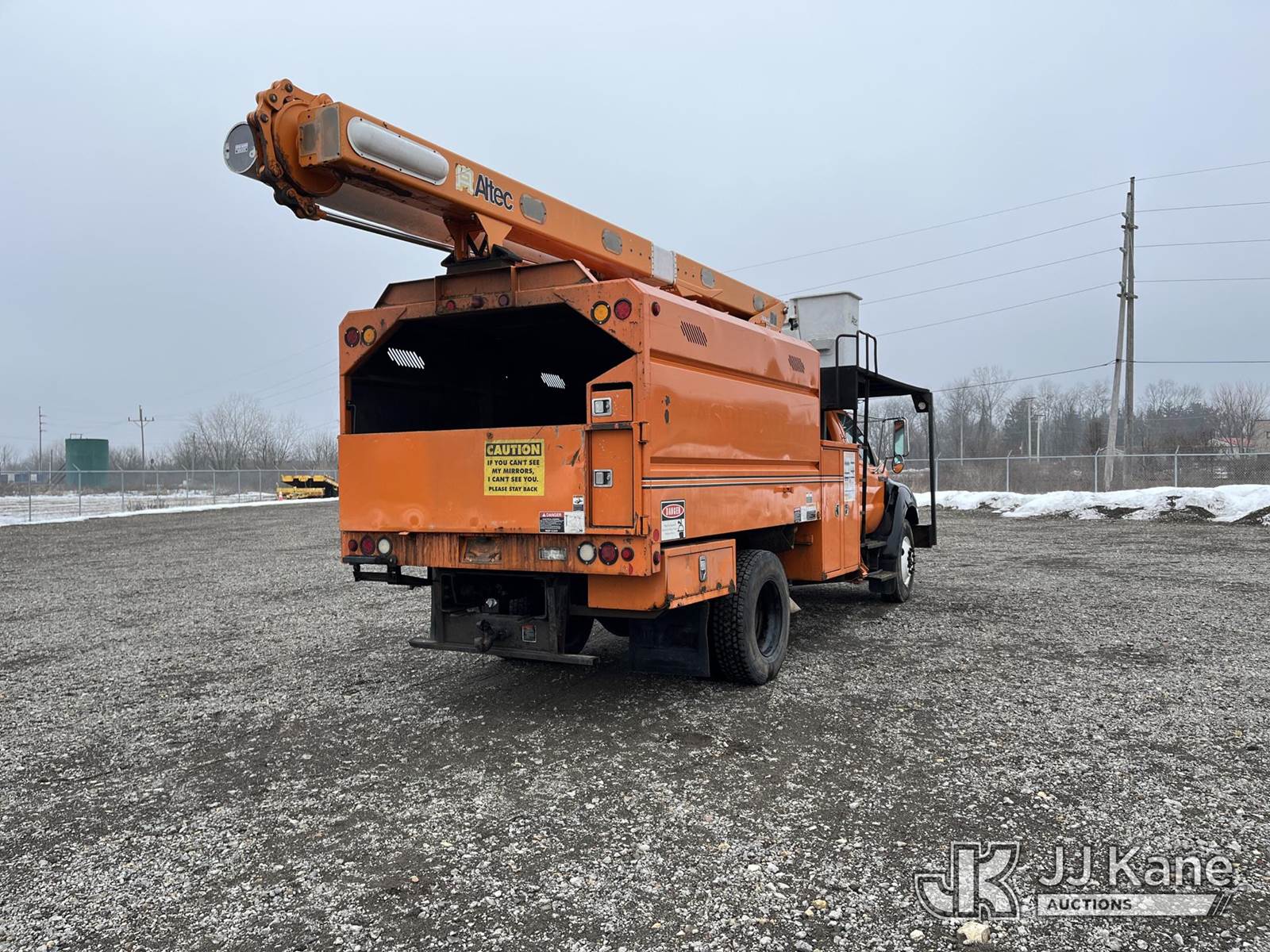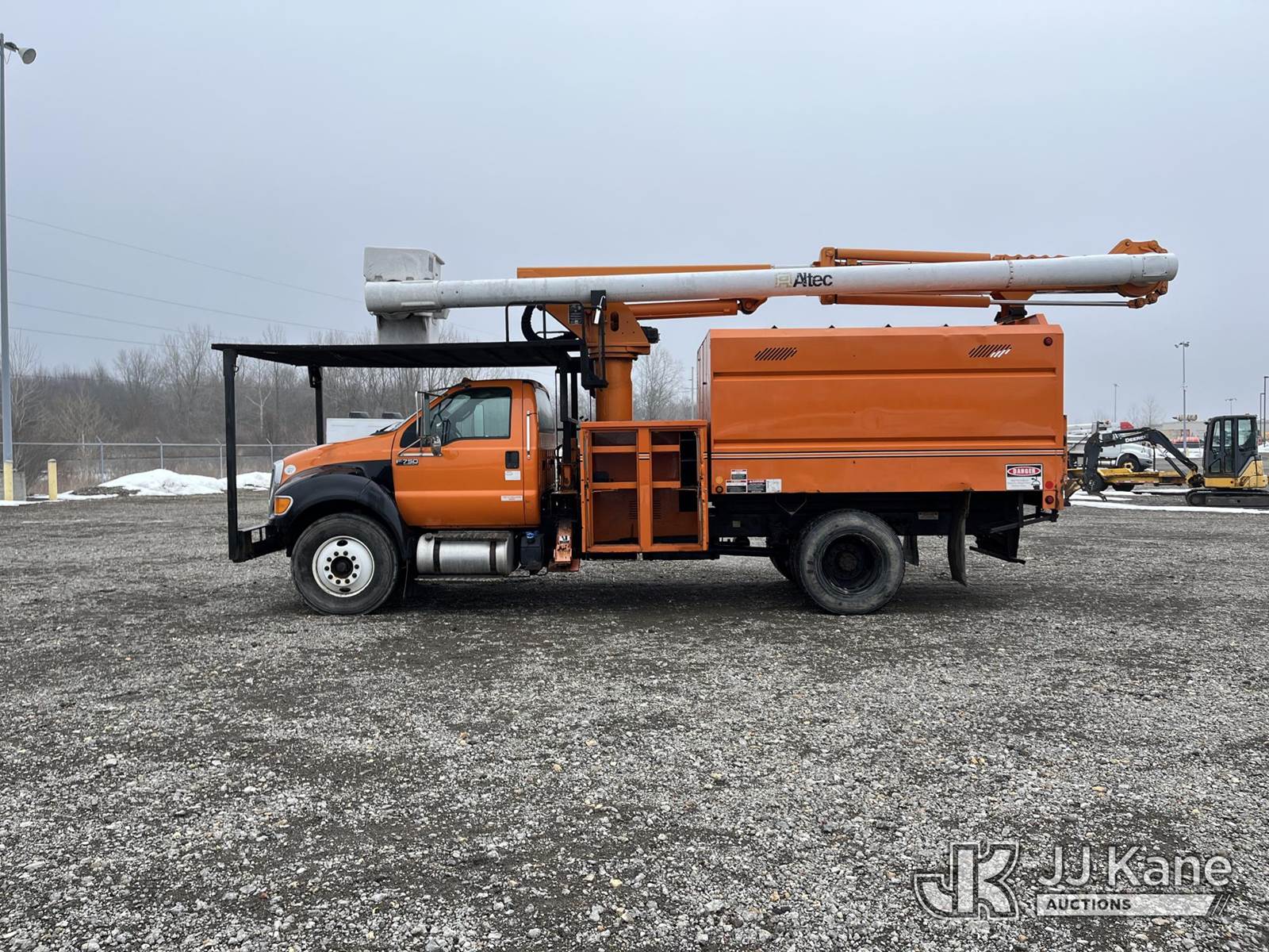 Altec LR756, 61 ft, Over-Center Bucket Truck s/n 0514FF2351, with single man bucket & 2 hyd outriggers, mounted behind cab on 2013 Ford F-750 Chipper Dump Truck, 6.7L L6 diesel, 6-spd, (84,361 miles) (Runs & Moves, Engine Light On, Interior Damage, Selector Frozen, Upper Operation Unknown, Body & Rust Damage. Seller States Wabco brake system needs replaced) This is a Titled Item NOTE: This unit is being sold AS IS/WHERE IS via Timed Auction and is located in Louisville, OH. Inspection & preview days for this unit are the 2 business days prior to the first day of items closing for this auction, item is located at 3648 Beck Ave Louisville, OH 44641 and hours of operations are 8a-4p. For pre-sale questions, please contact Aaron Coleman @ (330) 495-4041 or aaron.coleman@jjkane.com. (Manuals provided in cab) (Buyer is responsible for removal. Assistance by consignor or JJ Kane Auctions is not assured.)