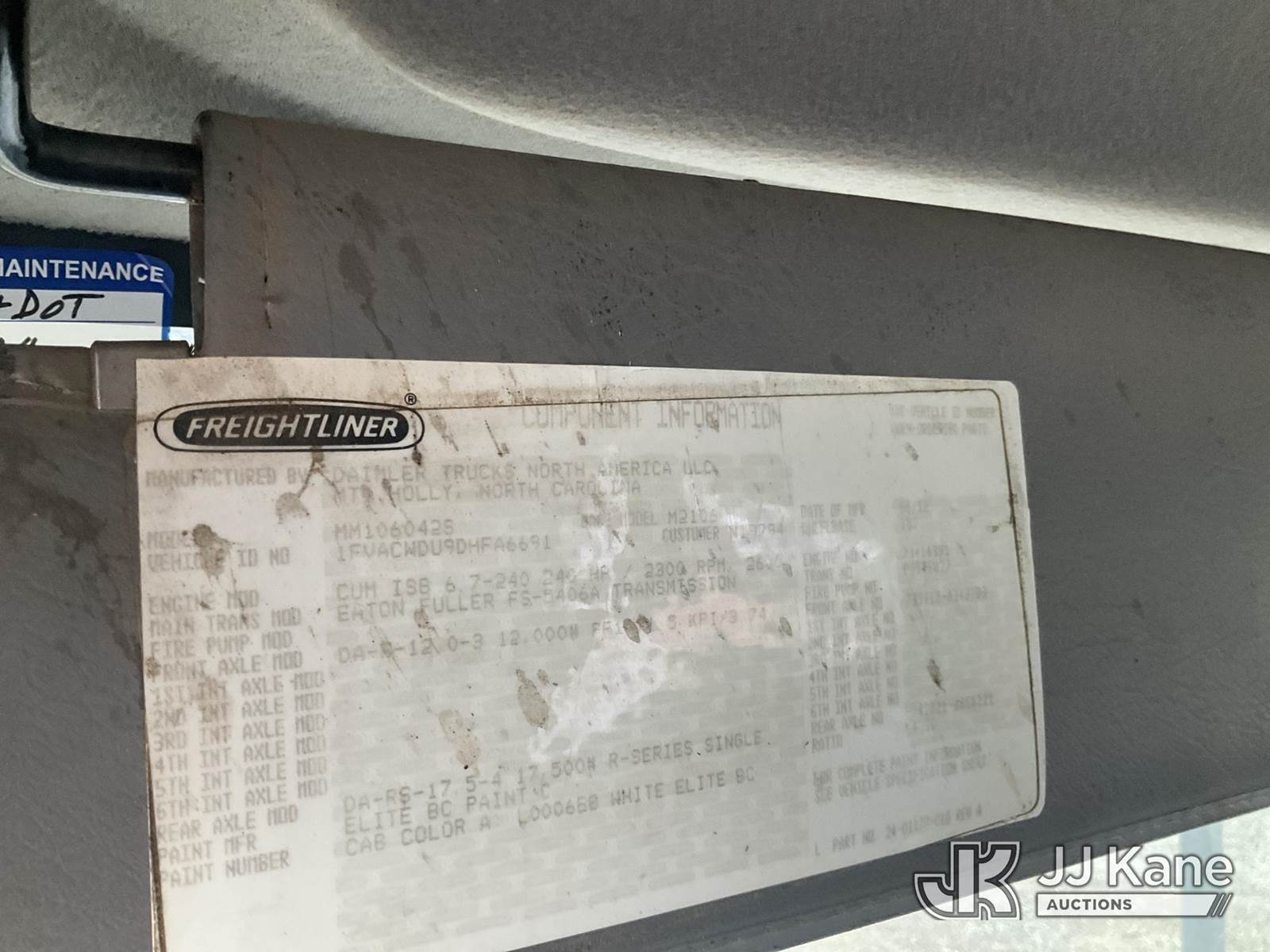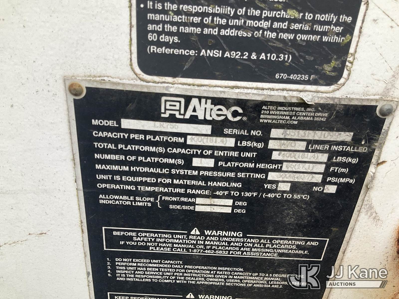 Altec LR756, 61 ft, Over-Center Bucket Truck s/n 0513FF1099, mounted behind cab on 2013 Freightliner M2 106 Chipper Dump Truck, Cummins ISB 6.7 diesel, 6-spd, A/C, (90,212 miles) (**Dealer Only** Runs, Moves & Upper & Dump Operate) (Jump to Start, Check Engine Light On, ABS Light On, Body Damage, Windshield Chipped) (Seller States: this item has been removed from service: Platform Missing - Requires ANSI Inspection for repair/replacement requirements.) (Bidding Restricted to Licensed Vehicle Dealers Only), This is a Titled Item NOTE: This unit is being sold AS IS/WHERE IS via Timed Auction and is located in Chester, VA. Inspection & preview days for this unit are the 2 business days prior to the first day of items closing for this auction, item is located at 1840 Battery Dantzler Ct. Chester, VA 23836 and hours of operations are 7am-3pm. For pre-sale questions, please contact Doug Caton @ 804-807-4574. (Missing manuals, See Auction Company for Manufacturers Information to obtain manuals) (Buyer is responsible for removal. Assistance by consignor or JJ Kane Auctions is not assured.)