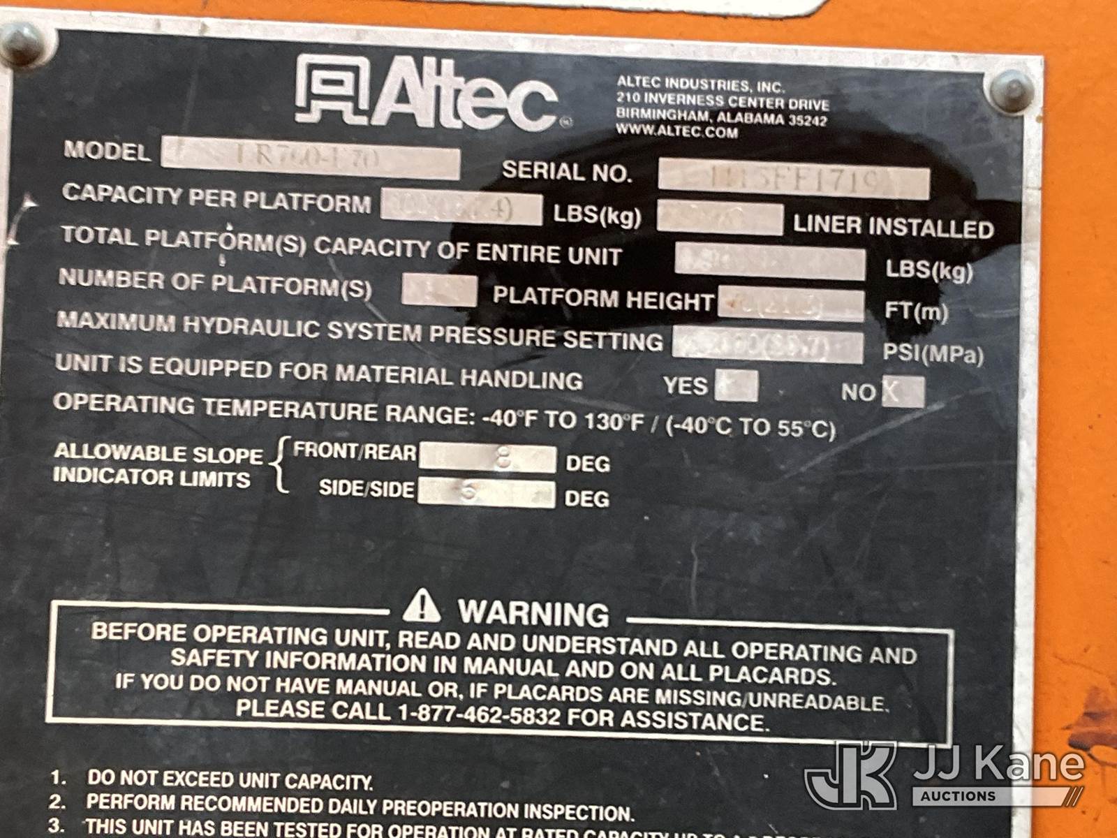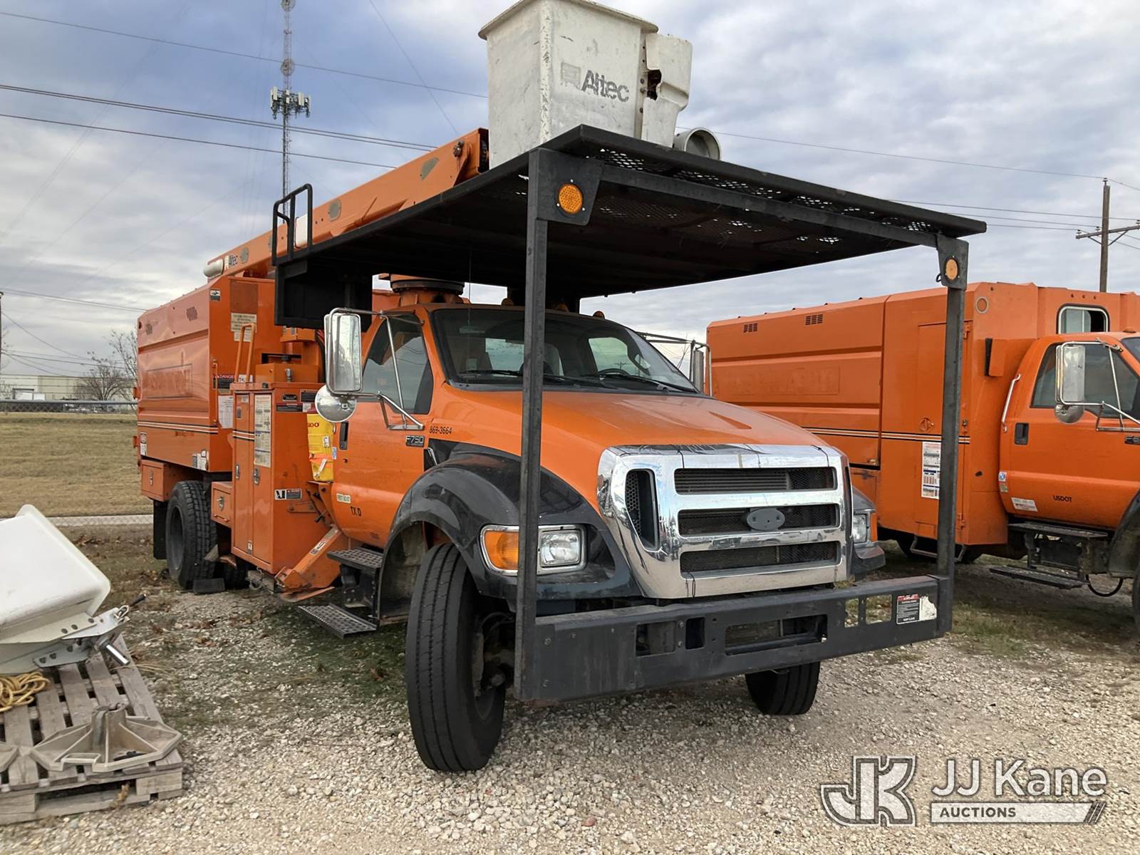 Altec LR760E70, 75 ft, Over-Center Elevator Bucket Truck s/n 1113FF1719, with single-man bucket & 2 hyd outriggers, mounted behind cab on 2013 Ford F750 Chipper Dump Truck, 6.7L L6 diesel, 6-spd, 4X2, A/C, (101,158 miles) (Runs, Does Not Move, Driveshaft Disconnected, Check Engine Light On, Service Engine Light On) (Seller States: Transmission Issue) (Reads 7,932 hours) This is a Titled Item NOTE: This unit is being sold AS IS/WHERE IS via Timed Auction and is located in Waxahachie, TX. Inspection & preview days for this unit are the 2 business days prior to the first day of items closing for this auction, item is located at 999 Solon Rd Waxahachie, TX 75165 and hours of operations are 8a-4p. For pre-sale questions, please contact Alex Bayless @ (469) 550-4938. (Missing manuals, See Auction Company for Manufacturers Information to obtain manuals) (Buyer is responsible for removal. Assistance by consignor or JJ Kane Auctions is not assured.)