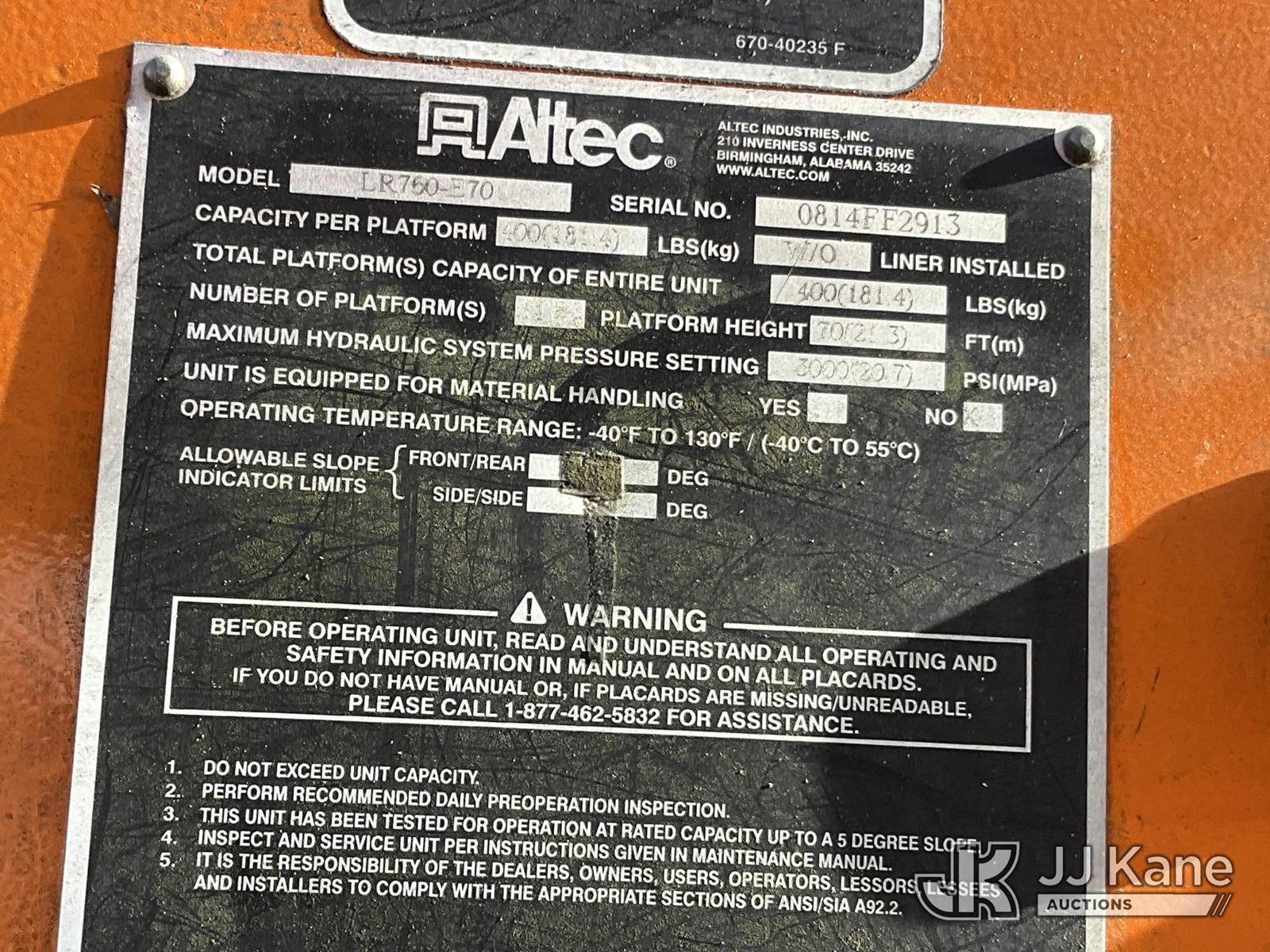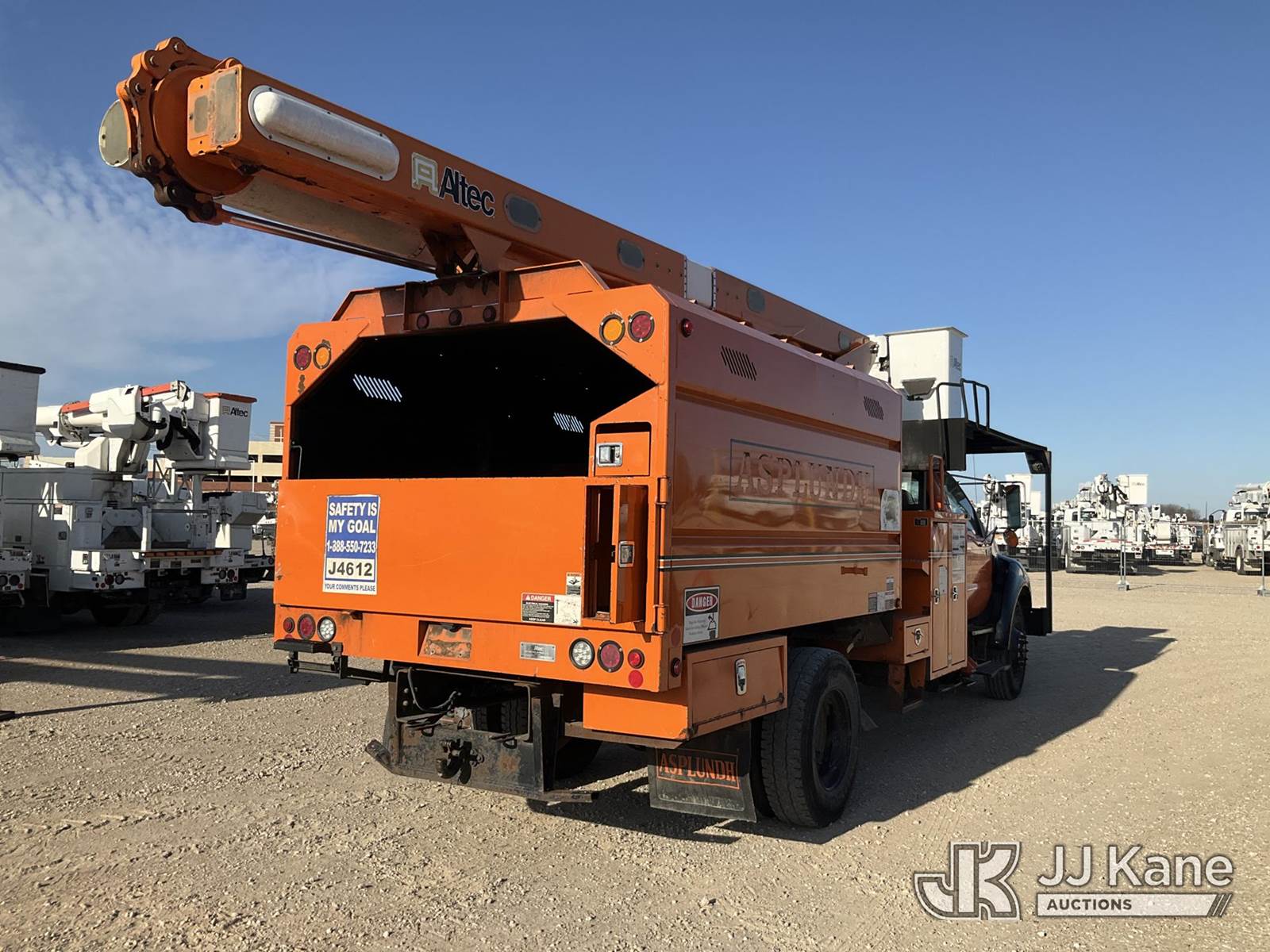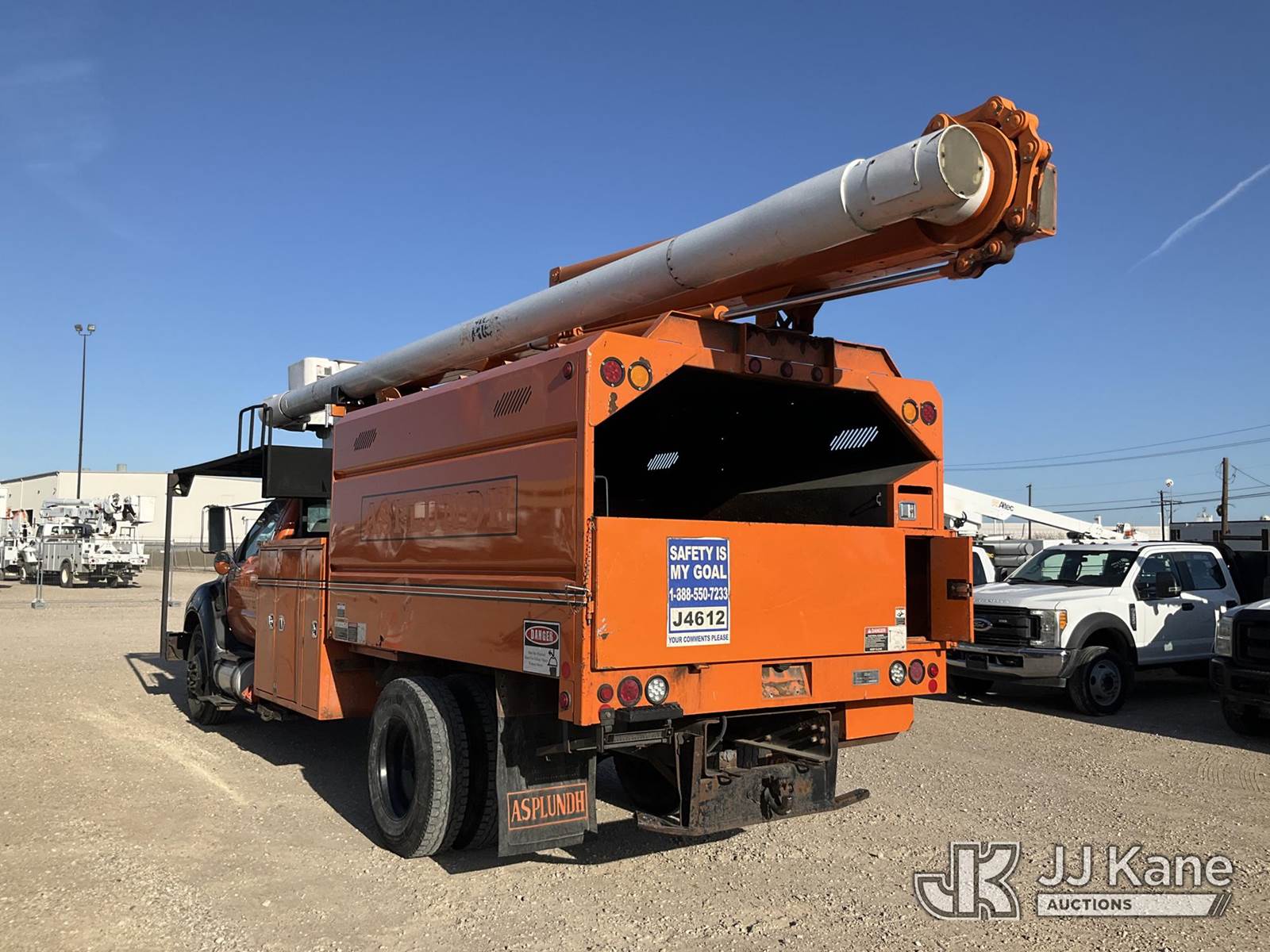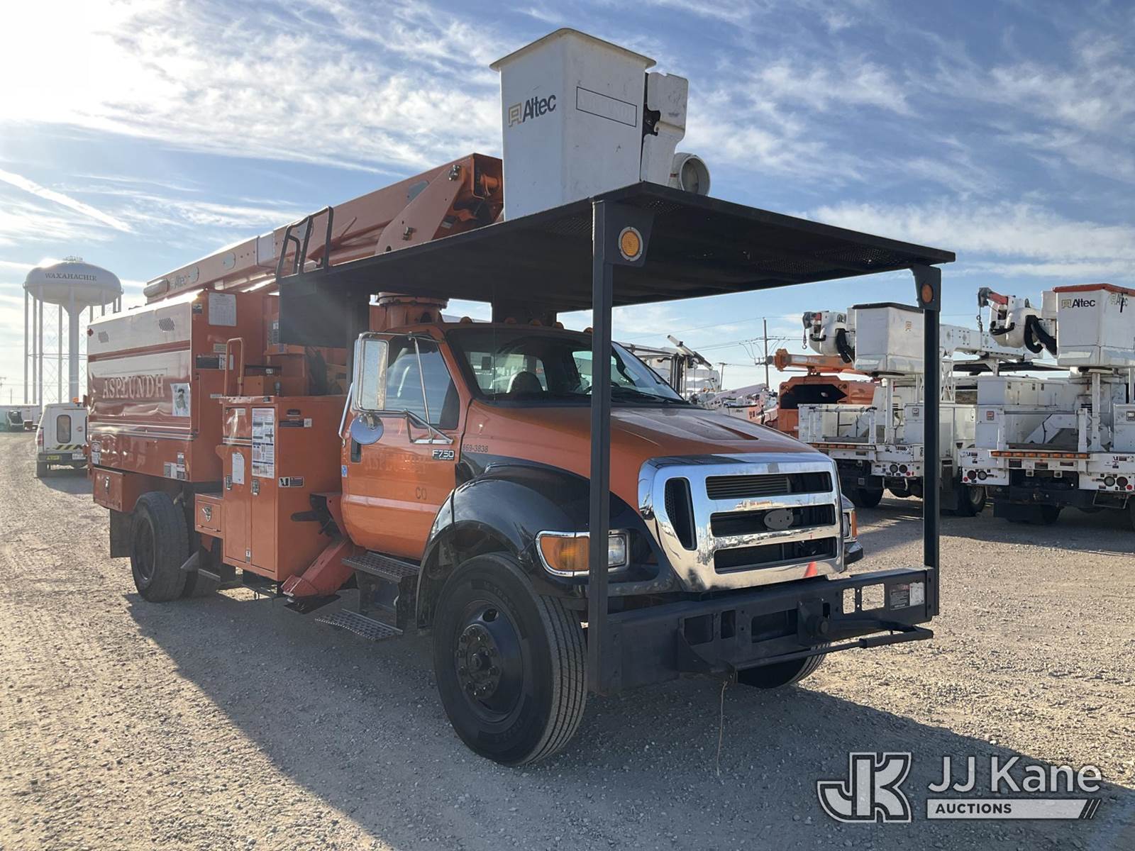 Altec LR760E70, 75 ft, Over-Center Elevator Bucket Truck s/n 0814FF2913, with single-man bucket & 2 hyd outriggers, mounted behind cab on 2013 Ford F-750 Regular Cab 2WD DRW Chipper Dump Truck, 6.7L L6 DIESEL 6-spd, 4X2, (92,098 miles) (Runs & Moves, PTO Does Not Engage, Minor Body Damage, ) This is a Titled Item NOTE: This unit is being sold AS IS/WHERE IS via Timed Auction and is located in Waxahachie, TX. Inspection & preview days for this unit are the 2 business days prior to the first day of items closing for this auction, item is located at 999 Solon Rd Waxahachie, TX 75165 and hours of operations are 8a-4p. For pre-sale questions, please contact Alex Bayless @ (469) 550-4938. (Manuals provided in cab) (Buyer is responsible for removal. Assistance by consignor or JJ Kane Auctions is not assured.)