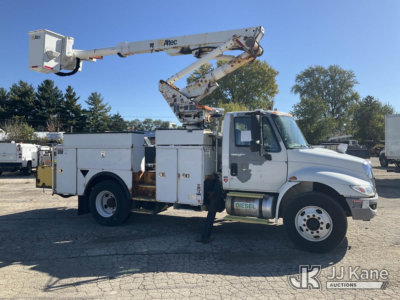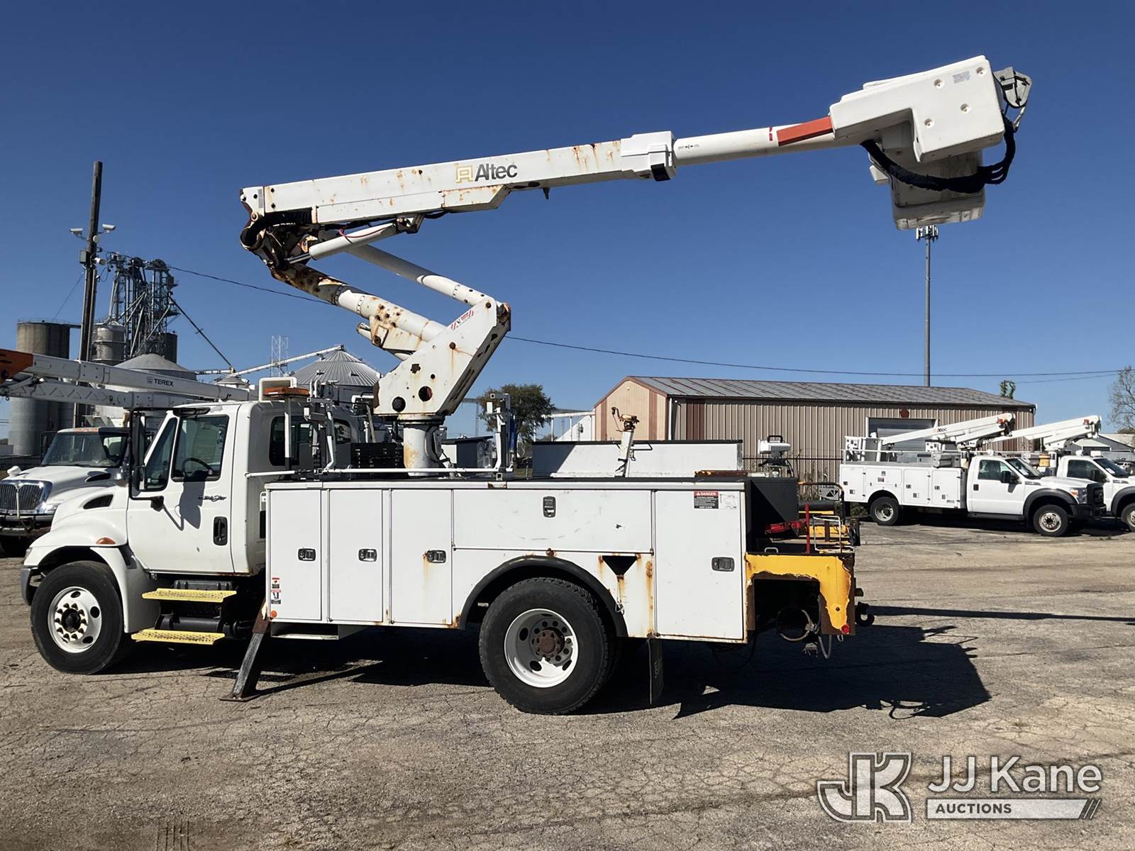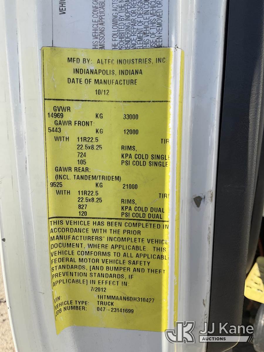 Altec TA41M, 45 ft, Articulating & Telescopic Bucket Truck s/n 0712CL1671, with single-man bucket, mounted behind cab on 2013 International 4300 Utility Truck, 7.6L Auto, 4X2, diesel, A/C, with Travel Height 12ft 4in, (173,259 miles) (Runs, Moves & Upper Operates) (Paint Damage, Rear Tail Shelf Rusty) (Reads 13,120 hours) This is a Titled Item NOTE: This unit is being sold AS IS/WHERE IS via Timed Auction and is located in South Beloit, IL. Inspection & preview days for this unit are the 2 business days prior to the first day of items closing for this auction, item is located at 14354 Dearborn Ave South Beloit, IL and hours of operations are 8a-4p. For pre-sale questions, please contact Derek Eklund at (608) 904-0618 or (derek.eklund@jjkane.com). (Manuals provided in cab) (Buyer is responsible for removal. Assistance by consignor or JJ Kane Auctioneers is not assured.)