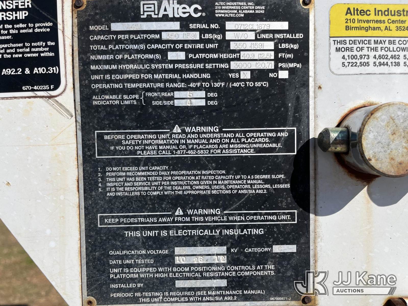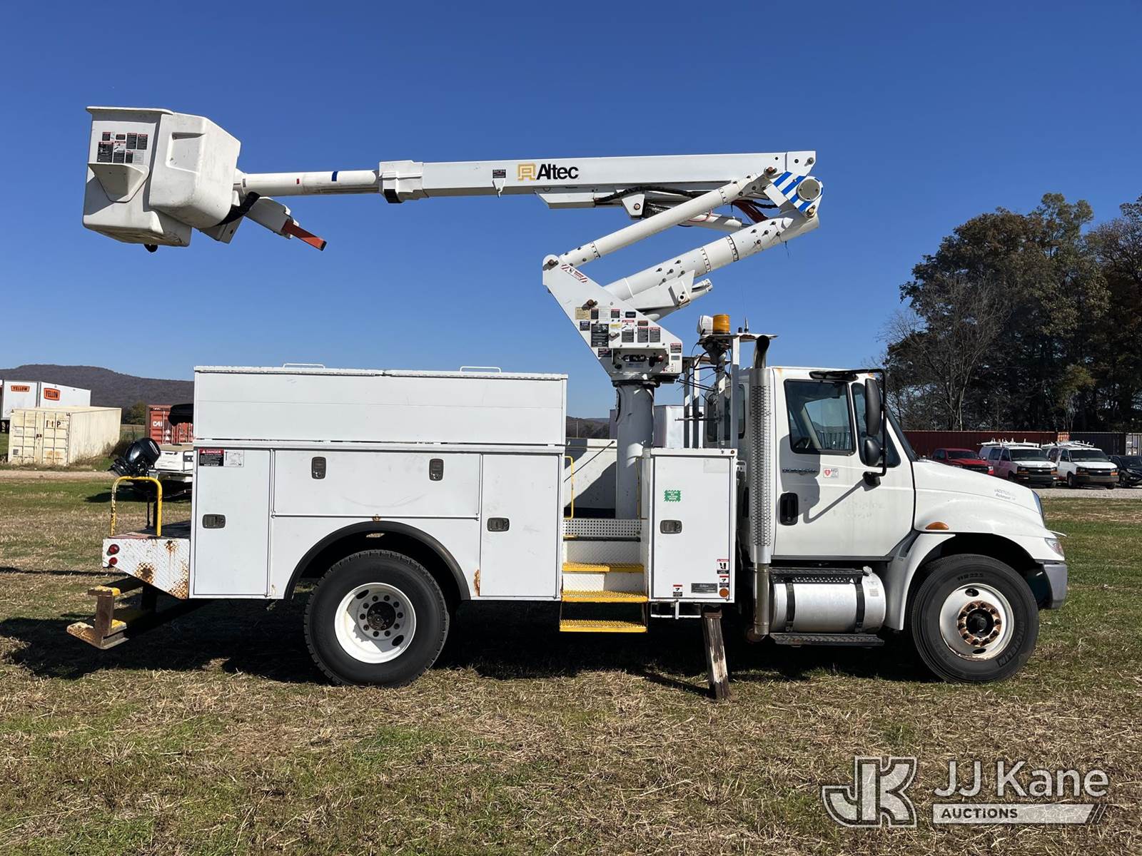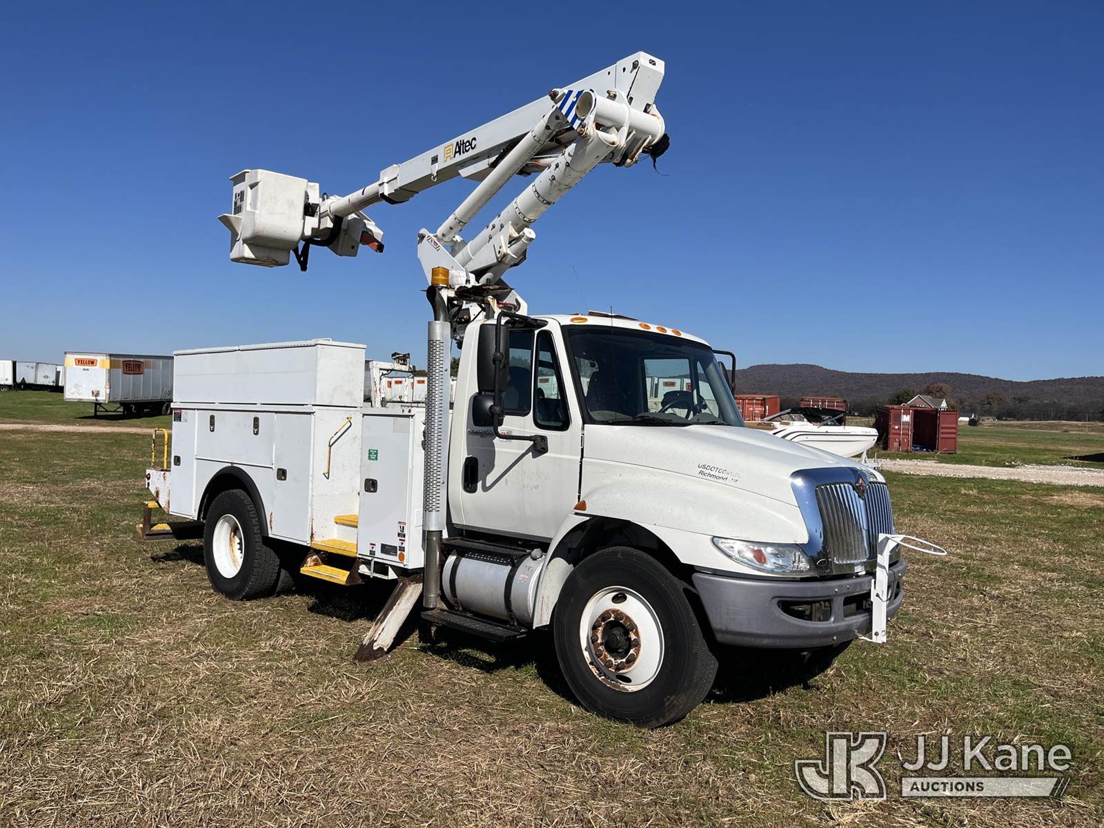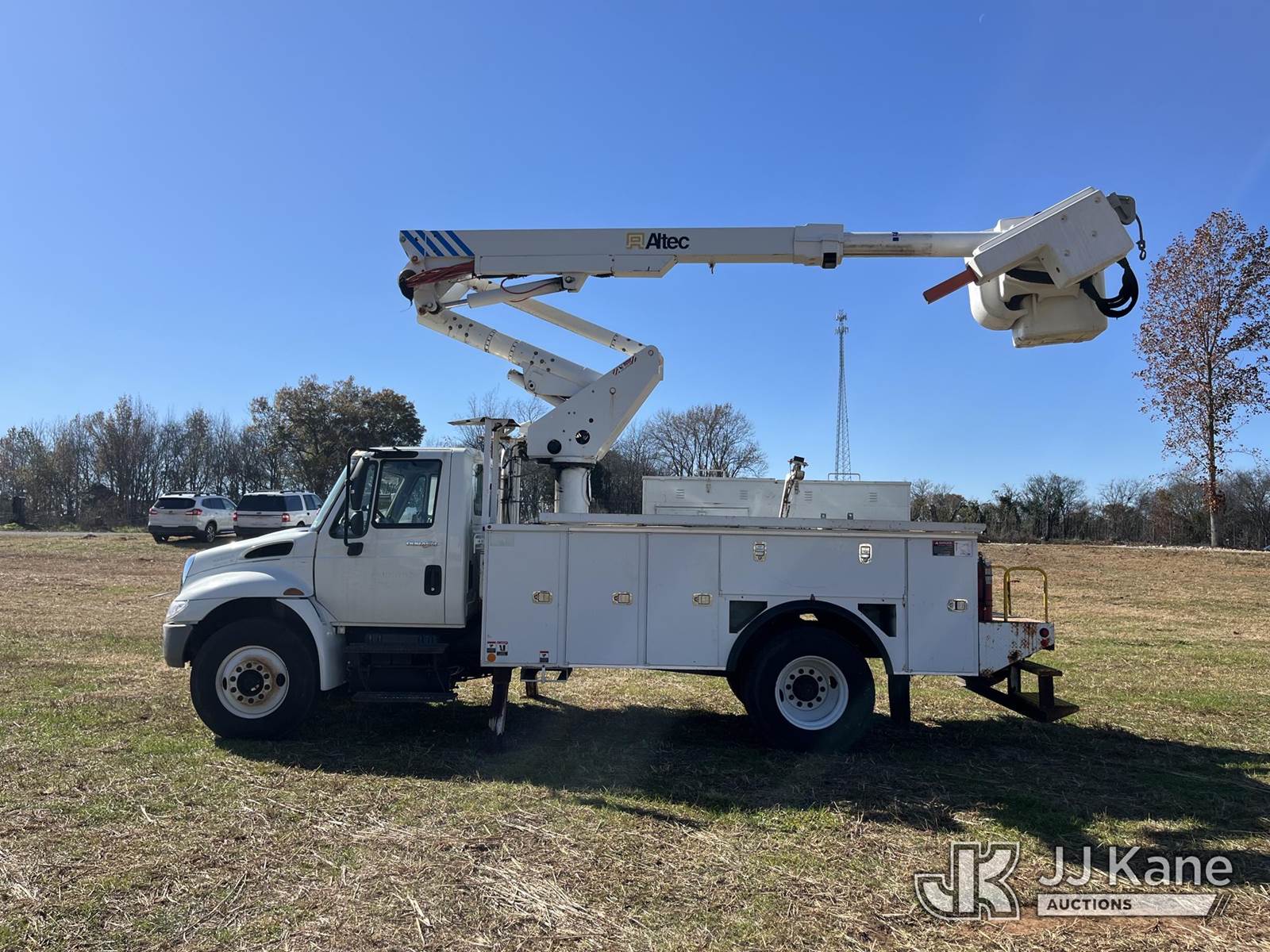Altec TA41M, 46 ft, Articulating & Telescopic Material Handling Bucket Truck s/n 0712CL1679, with single-man bucket & 2 hyd outriggers, mounted behind cab on 2013 International 4300 Utility Truck, 6.4L diesel, Auto, 4X2, A/C, (72,502 miles) (Runs, Moves & Upper Operates) This is a Titled Item NOTE: This unit is being sold AS IS/WHERE IS via Timed Auction and is located in Decherd, TN. For more information & removal arrangements please contact Dalton Childers @ 629-395-3117. (Missing manuals, See Auction Company for Manufacturers Information to obtain manuals) (Buyer is responsible for removal. Assistance by consignor or JJ Kane Auctioneers is not assured.)