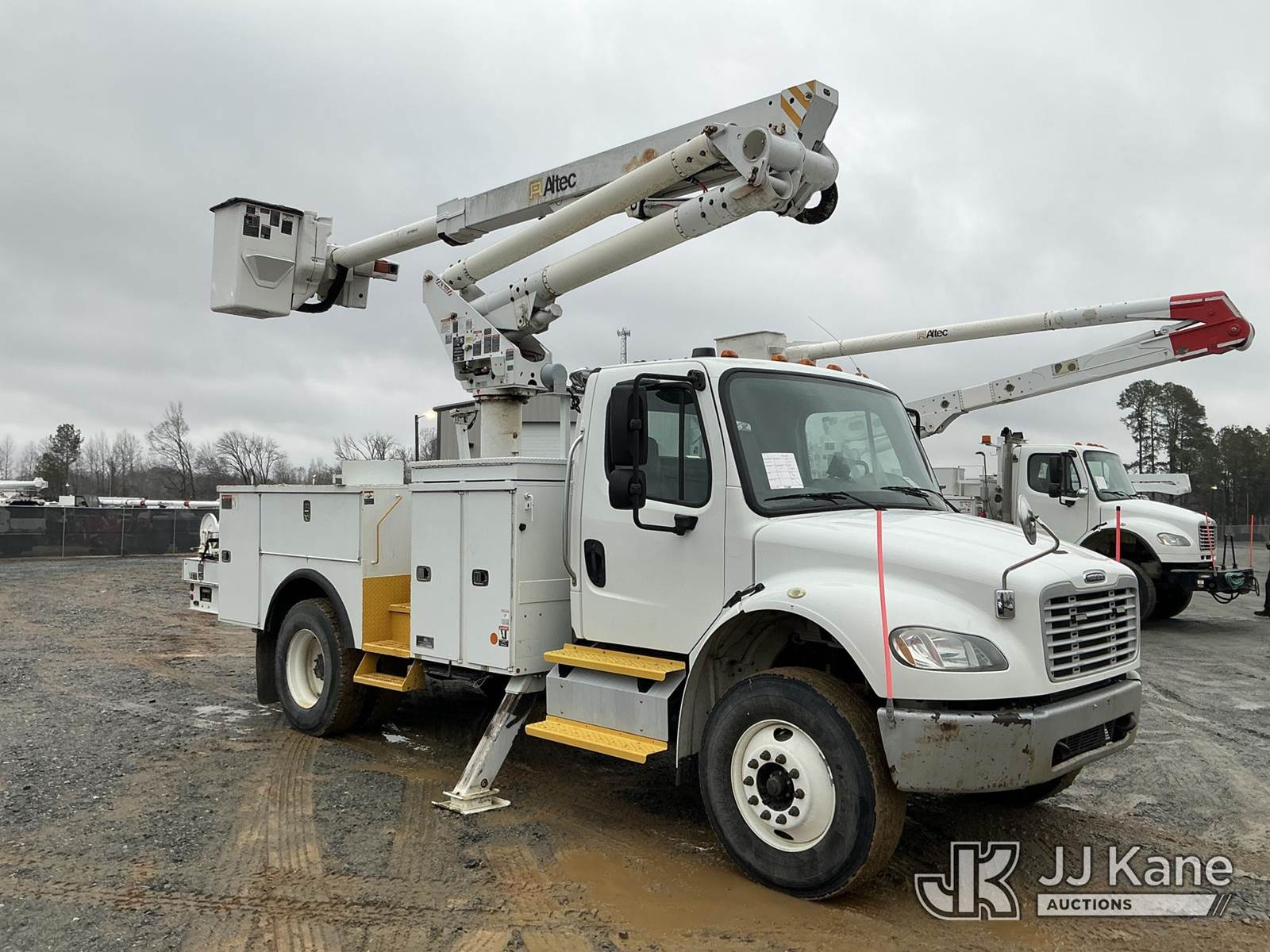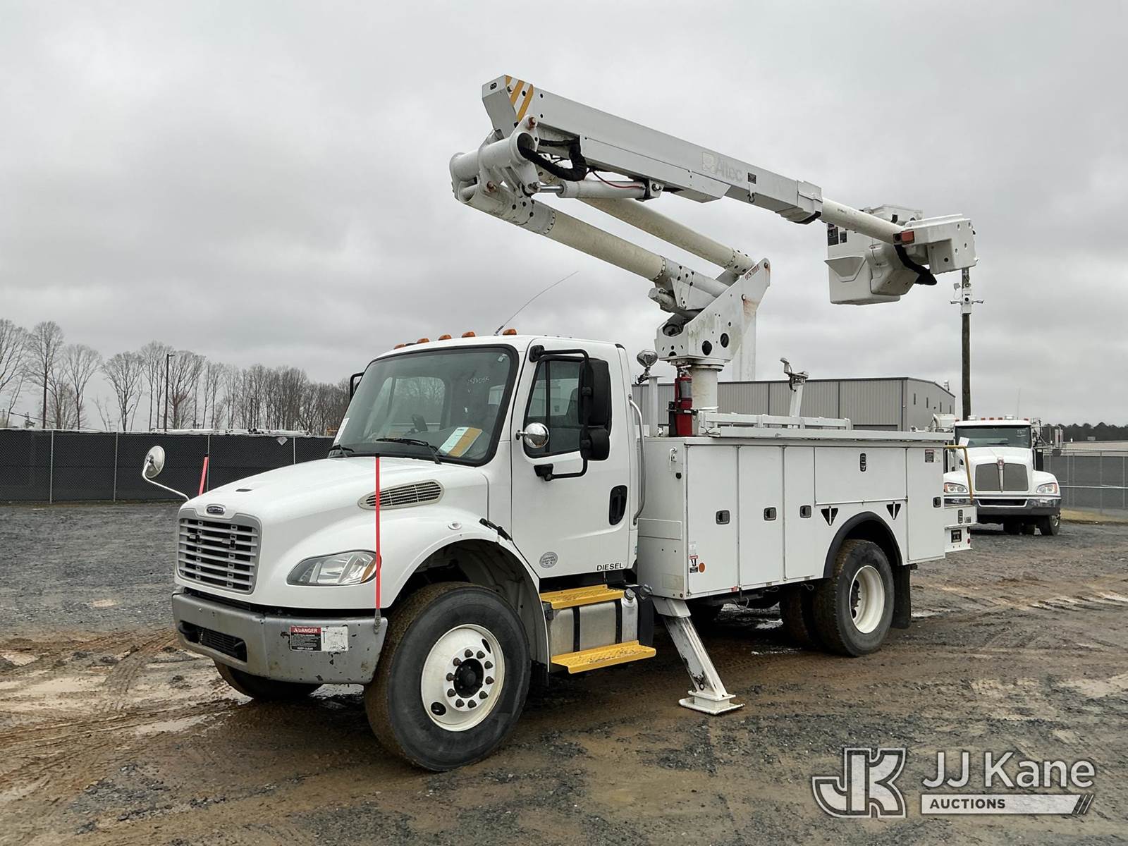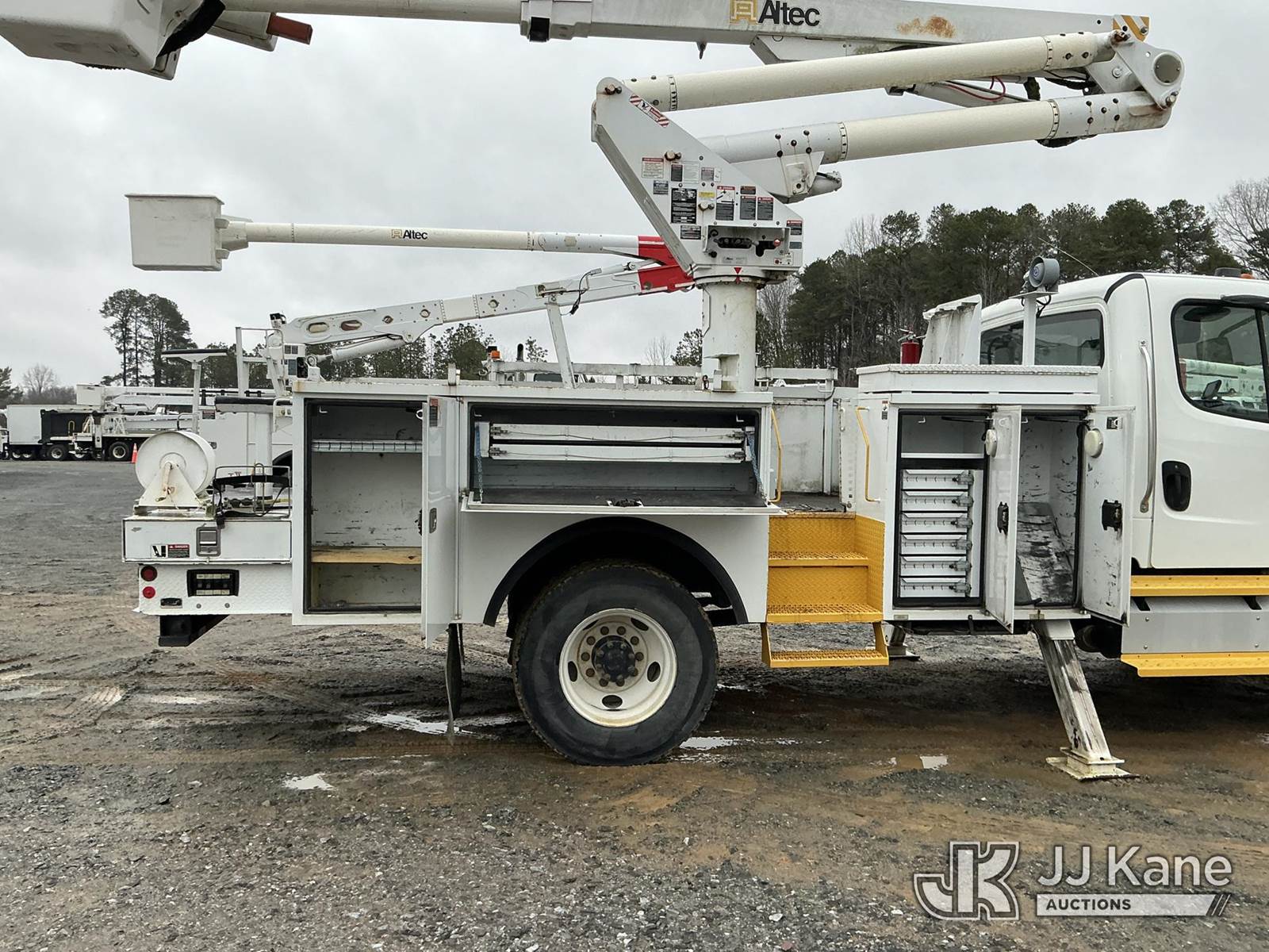 Altec TA45SMH, 50 ft, Articulating & Telescopic Material Handling Bucket Truck s/n 0712CY0342, with single-man bucket, rear mounted on 2013 Freightliner M2 106 Utility Truck, 6.7L diesel, Auto, A/C, (141,589 miles) (Duke Unit) (Runs, Moves & Upper Operates ) This is a Titled Item NOTE: This unit is being sold AS IS/WHERE IS via Timed Auction and is located in China Grove, NC. Inspection & preview days for this unit are the 2 business days prior to the first day of items closing for this auction, item is located at 820 E NC Hwy 152 China Grove, NC 28023 and hours of operations are 8a-4p. For pre-sale questions, please contact Office Staff @ (704) 674-1113. (Manuals provided in cab) (Buyer is responsible for removal. Assistance by consignor or JJ Kane Auctions is not assured.)