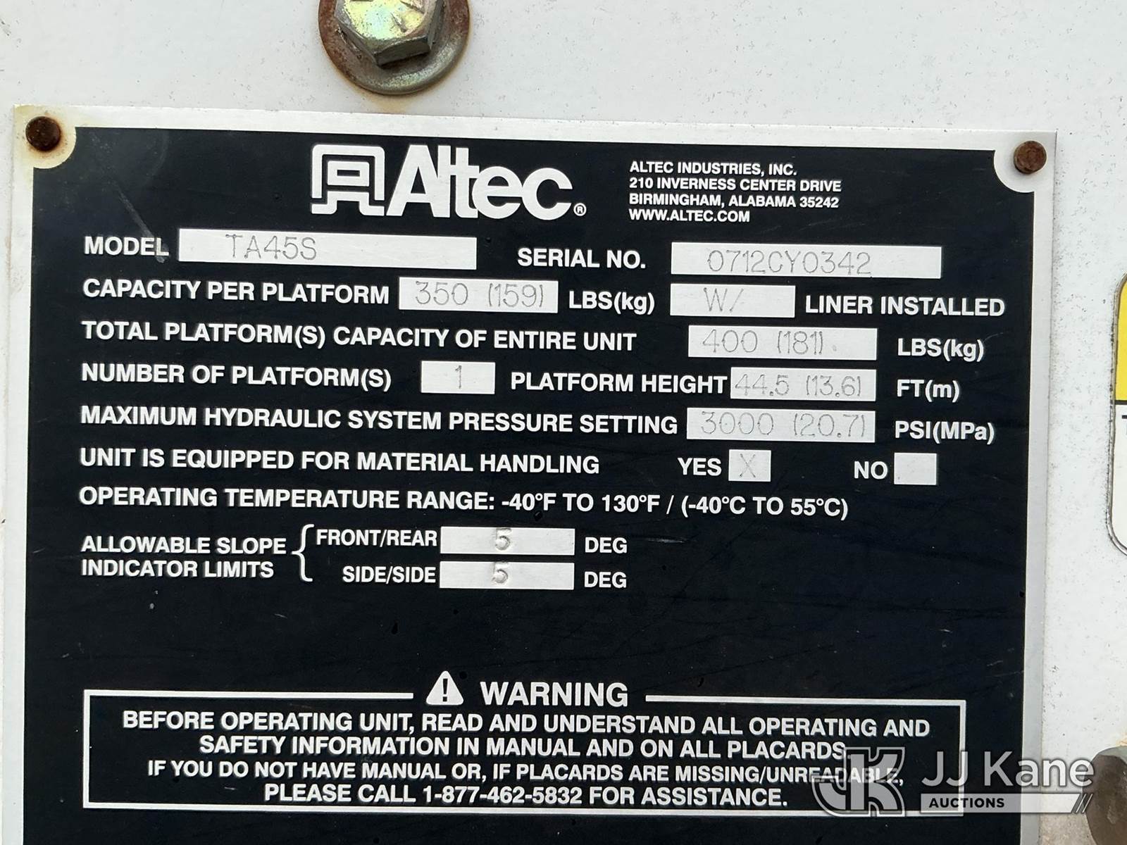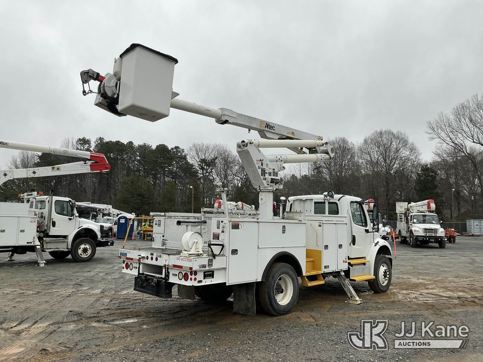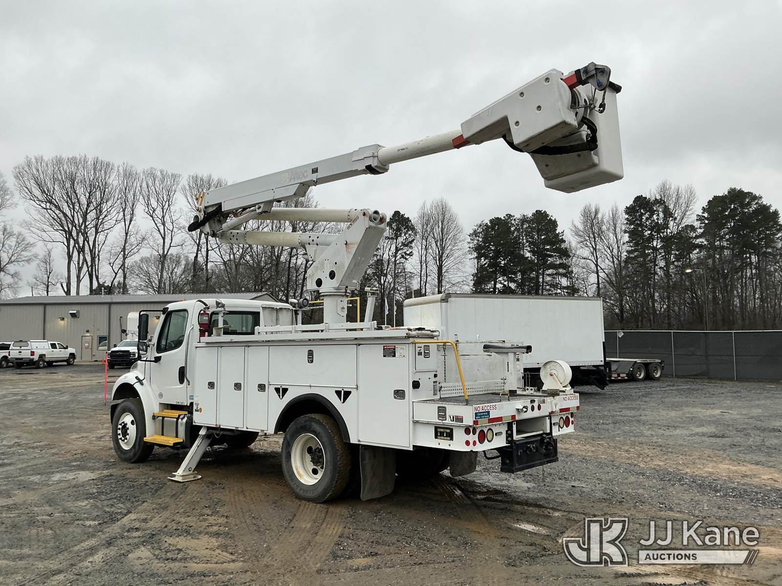 Altec TA45SMH, 50 ft, Articulating & Telescopic Material Handling Bucket Truck s/n 0712CY0342, with single-man bucket, rear mounted on 2013 Freightliner M2 106 Utility Truck, 6.7L diesel, Auto, A/C, (141,589 miles) (Duke Unit) (Runs, Moves & Upper Operates ) This is a Titled Item NOTE: This unit is being sold AS IS/WHERE IS via Timed Auction and is located in China Grove, NC. Inspection & preview days for this unit are the 2 business days prior to the first day of items closing for this auction, item is located at 820 E NC Hwy 152 China Grove, NC 28023 and hours of operations are 8a-4p. For pre-sale questions, please contact Office Staff @ (704) 674-1113. (Manuals provided in cab) (Buyer is responsible for removal. Assistance by consignor or JJ Kane Auctions is not assured.)