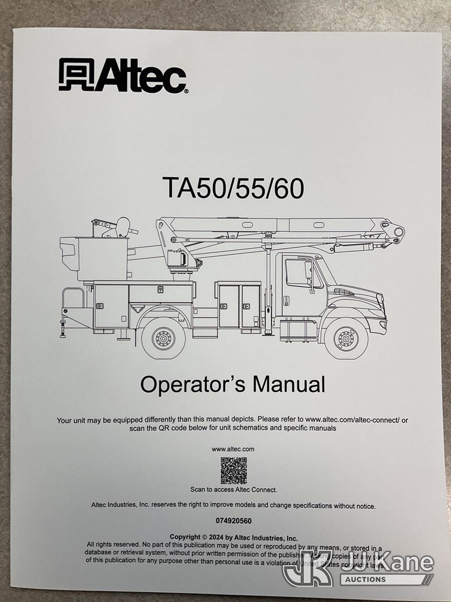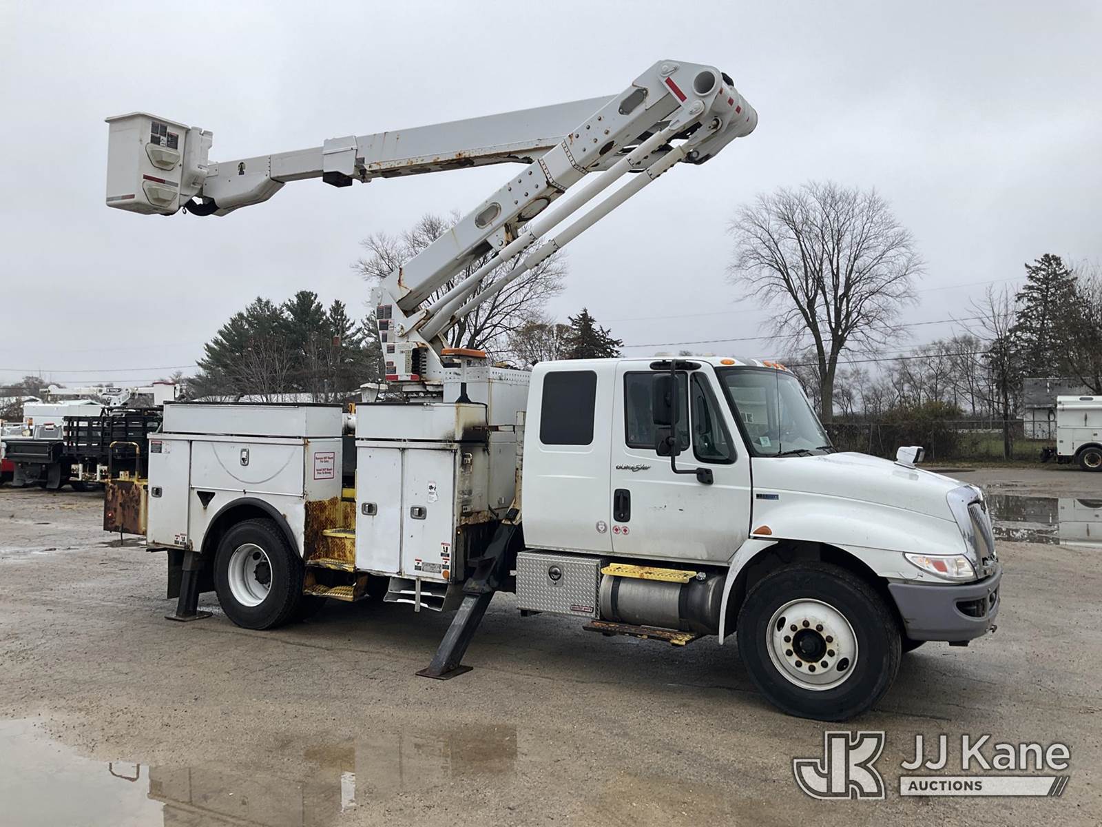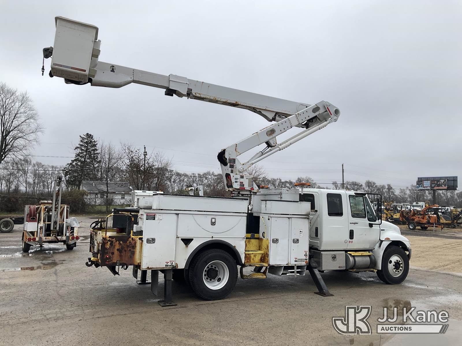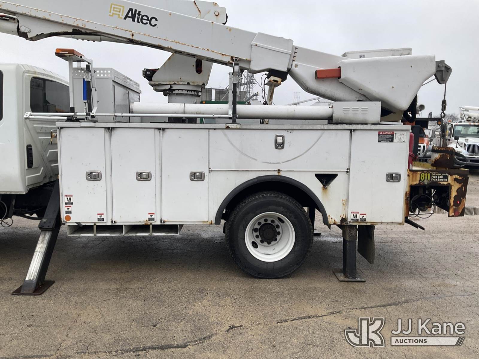 Altec TA50, 55 ft, Articulating & Telescopic Material Handling Bucket Truck s/n 0113EL0857, with single man bucket, rear mounted on 2013 International 4300 Extended-Cab Utility Truck, 7.6L diesel Auto, 4X2, A/C, (128,463 miles) (Runs, Moves, & Upper Operates)(Body/Rust/Paint Damage) (Reads 20,253 hours) This is a Titled Item NOTE: This unit is being sold AS IS/WHERE IS via Timed Auction and is located in South Beloit, IL. Inspection & preview days for this unit are the 2 business days prior to the first day of items closing for this auction, item is located at 14354 Dearborn Ave South Beloit, IL and hours of operations are 8a-4p. For pre-sale questions, please contact Derek Eklund at (608) 904-0618 or (derek.eklund@jjkane.com). (Manuals provided in cab) (Buyer is responsible for removal. Assistance by consignor or JJ Kane Auctioneers is not assured.)