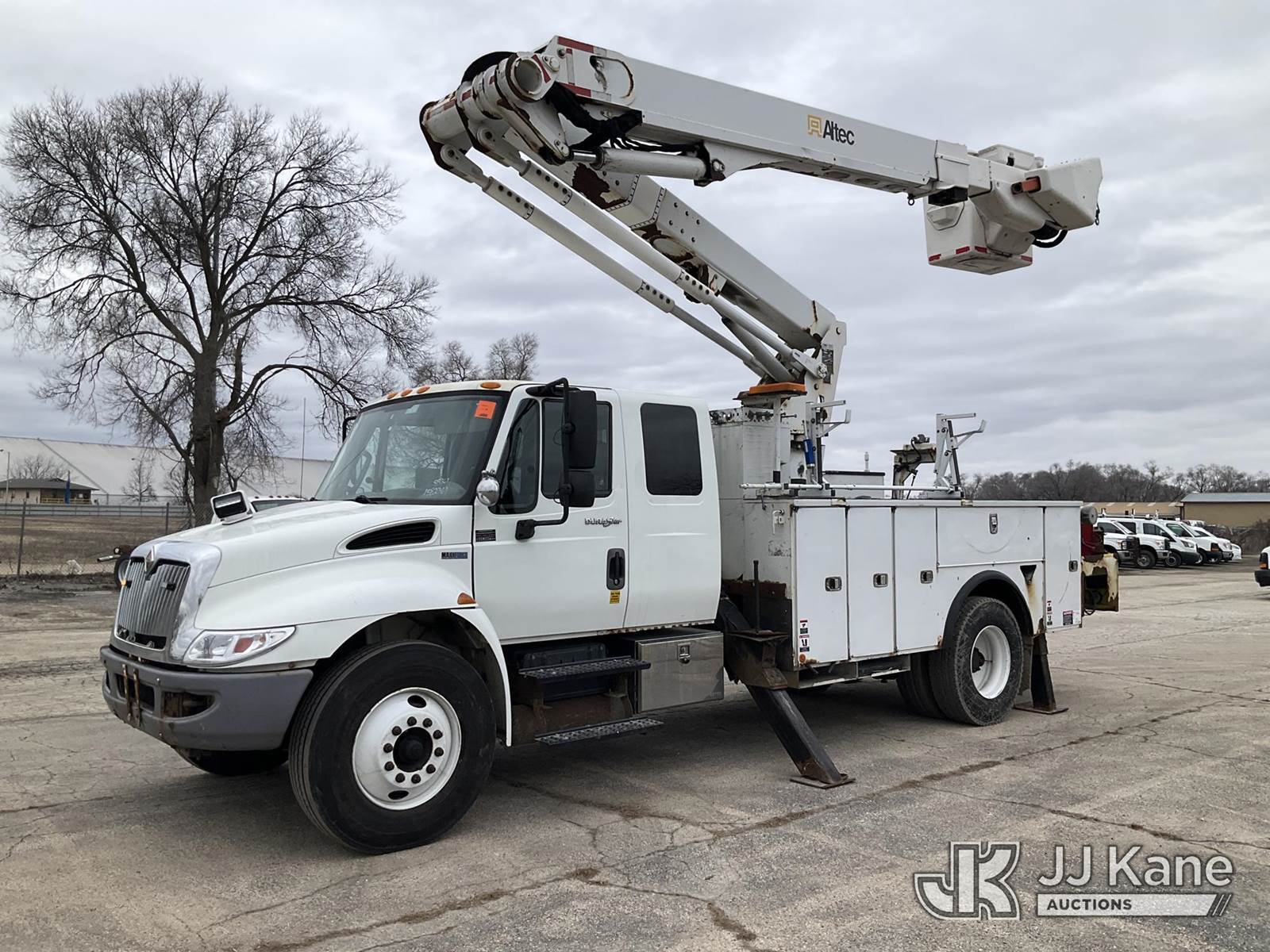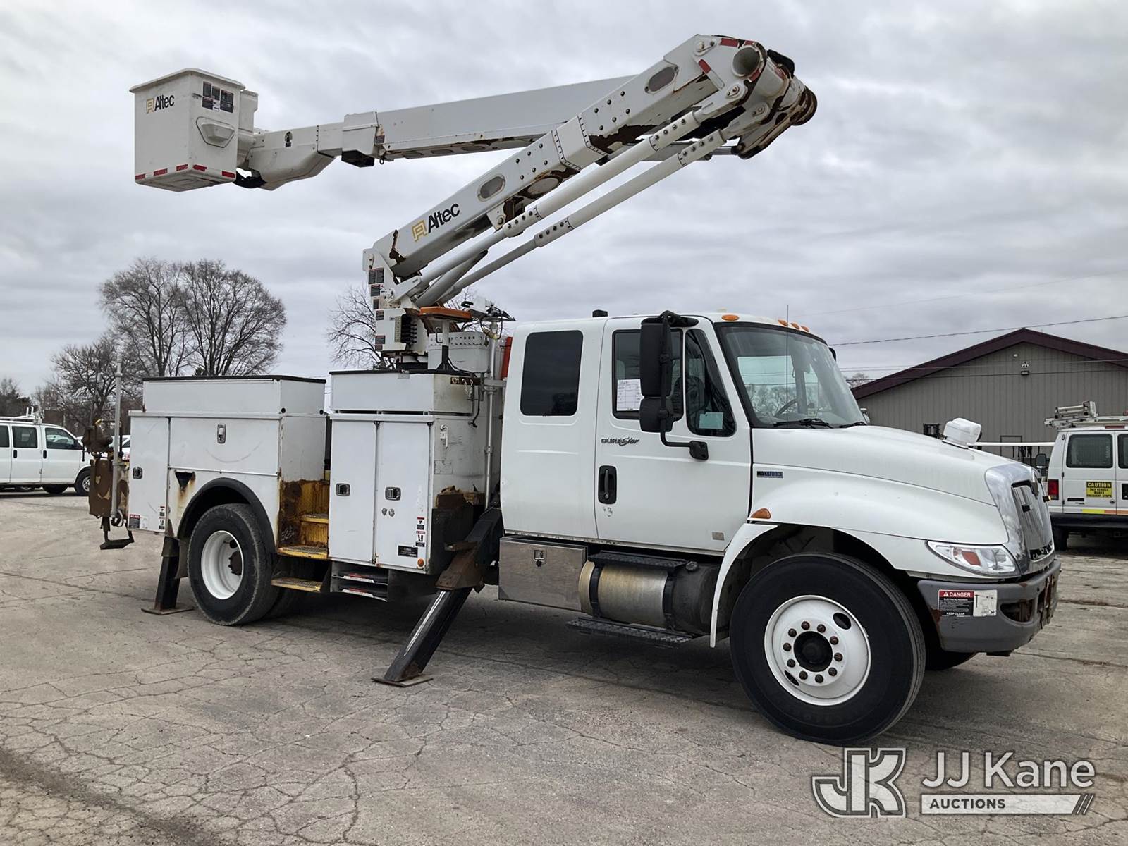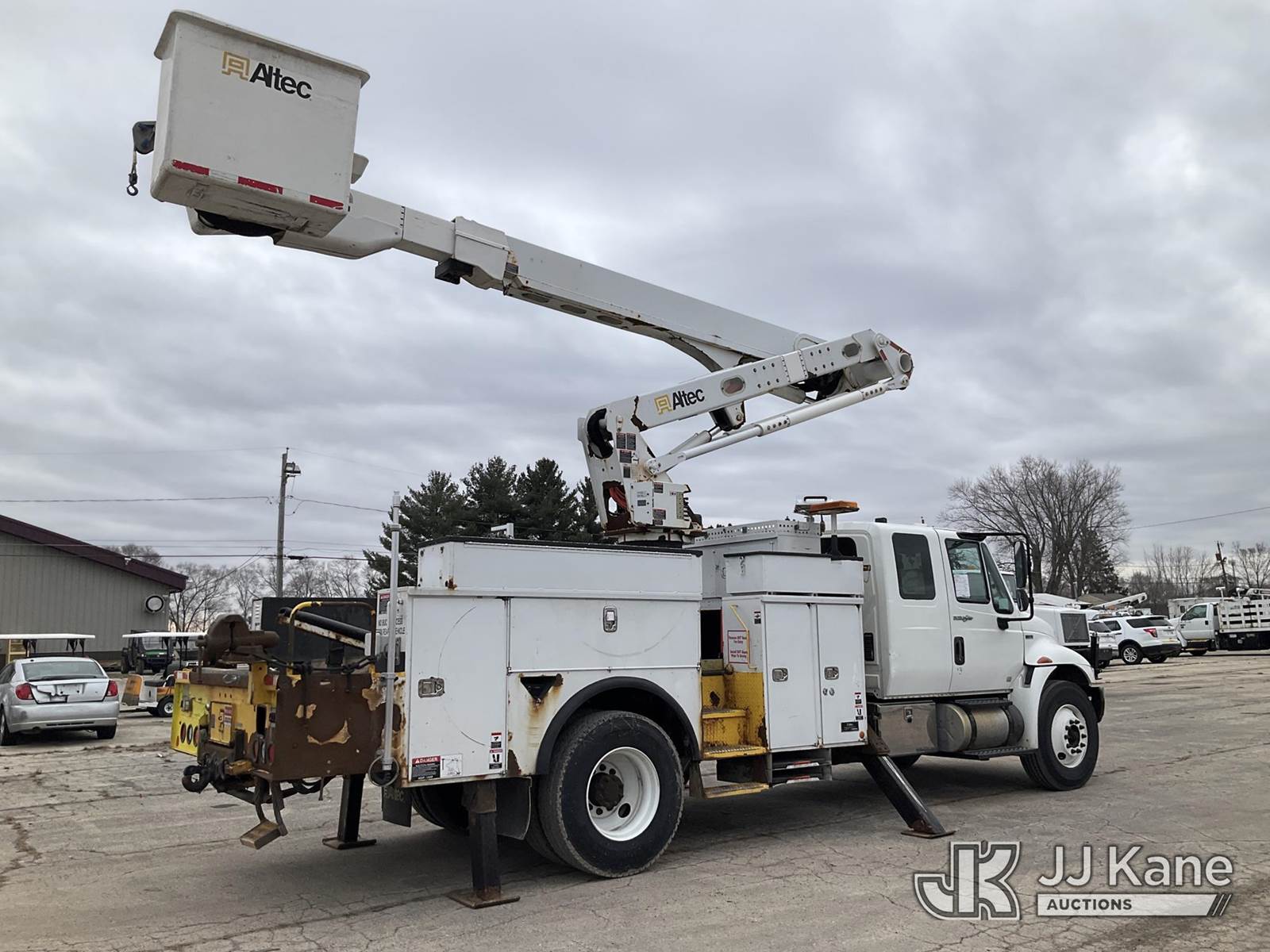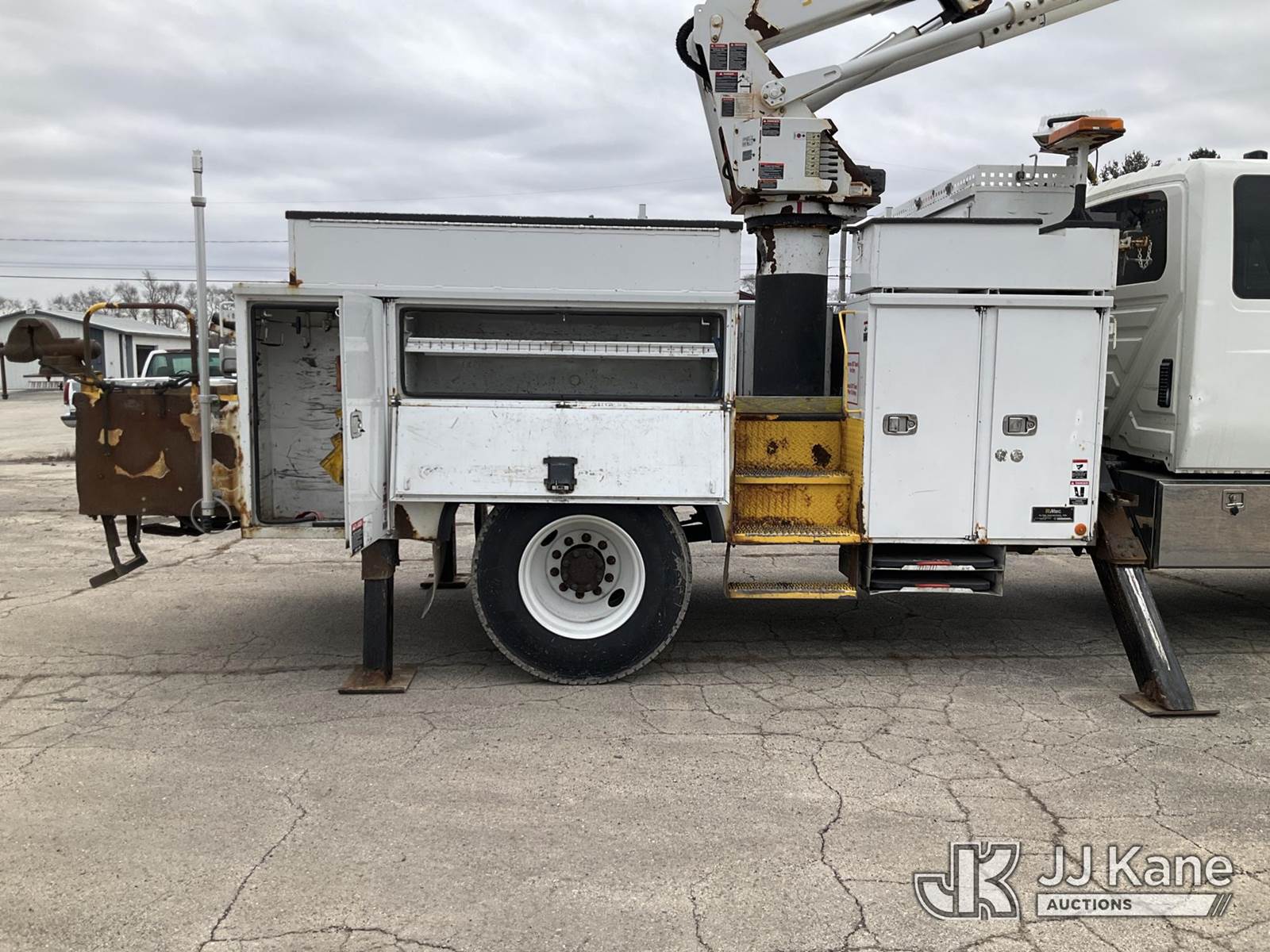 Altec TA50, 55 ft, Articulating & Telescopic Material Handling Bucket Truck s/n 0412EL0734, with Two-Man Bucket, mounted behind cab on 2013 International 4300 Utility Truck, 7.6L L6 DIESEL 4X2, Auto, A/C, (152,134 miles) (Runs, Moves & Upper Operates) (Check Engine Light On, Parked Regen Light On, Passenger Seat Removed, Unable To Open Two Passenger Side Utility Doors, Rust Damage) (Reads 16,126 hours) This is a Titled Item NOTE: This unit is being sold AS IS/WHERE IS via Timed Auction and is located in South Beloit, IL. Inspection & preview days for this unit are the 2 business days prior to the first day of items closing for this auction, item is located at 14354 Dearborn Ave South Beloit, IL and hours of operations are 8a-4p. For pre-sale questions, please contact Derek Eklund at (608) 904-0618 or (derek.eklund@jjkane.com). (Manuals provided in cab) (Buyer is responsible for removal. Assistance by consignor or JJ Kane Auctions is not assured.)