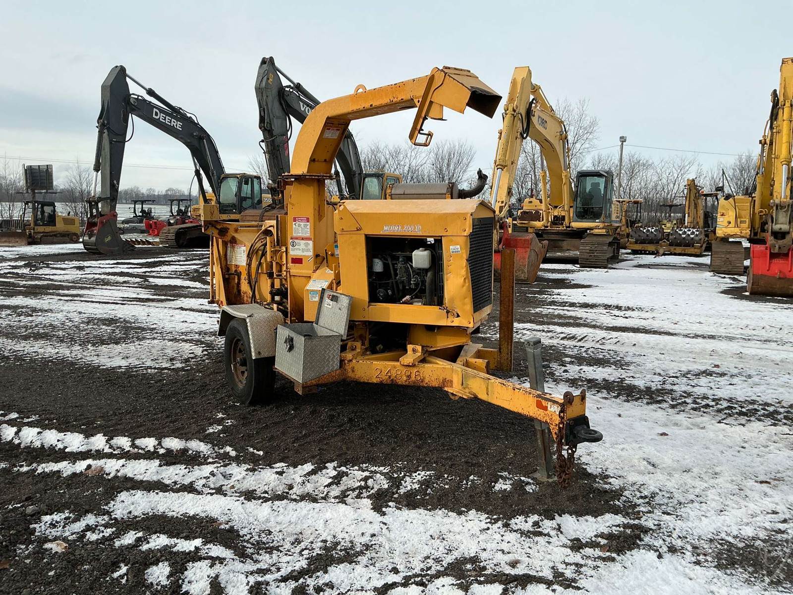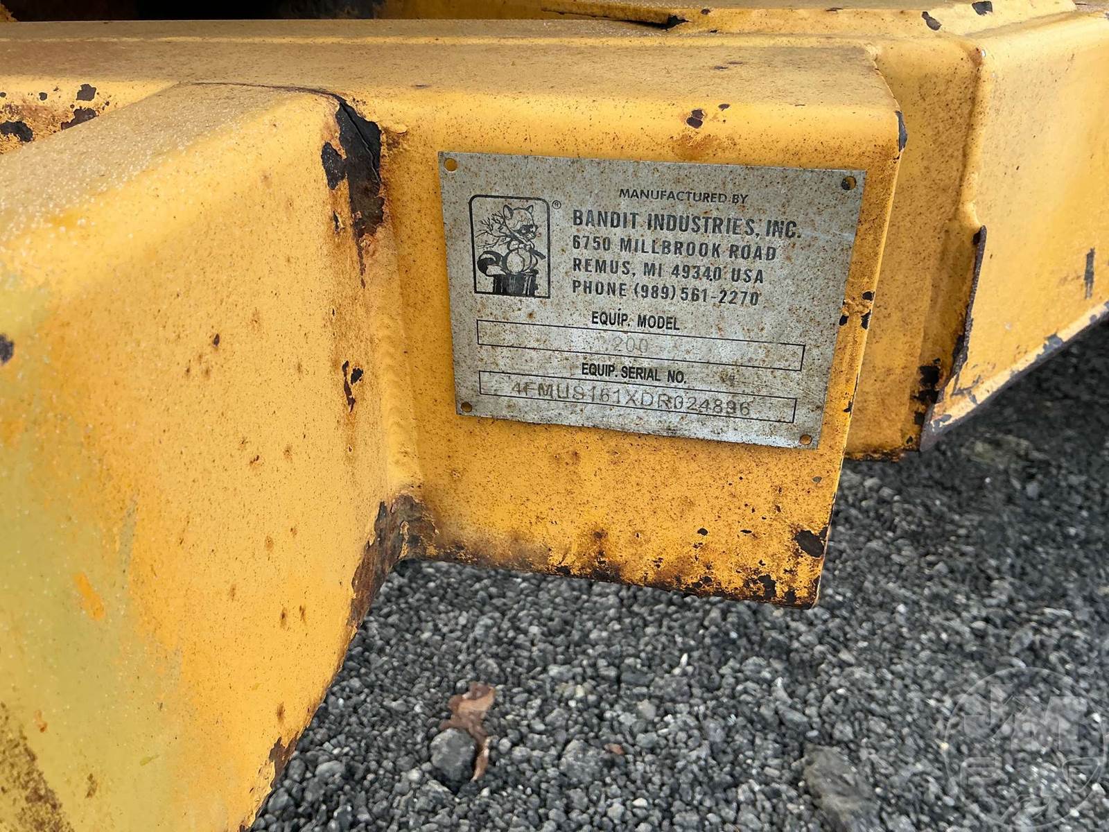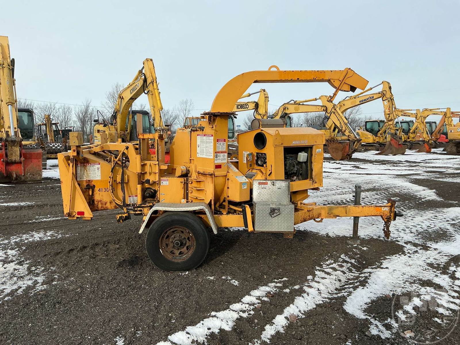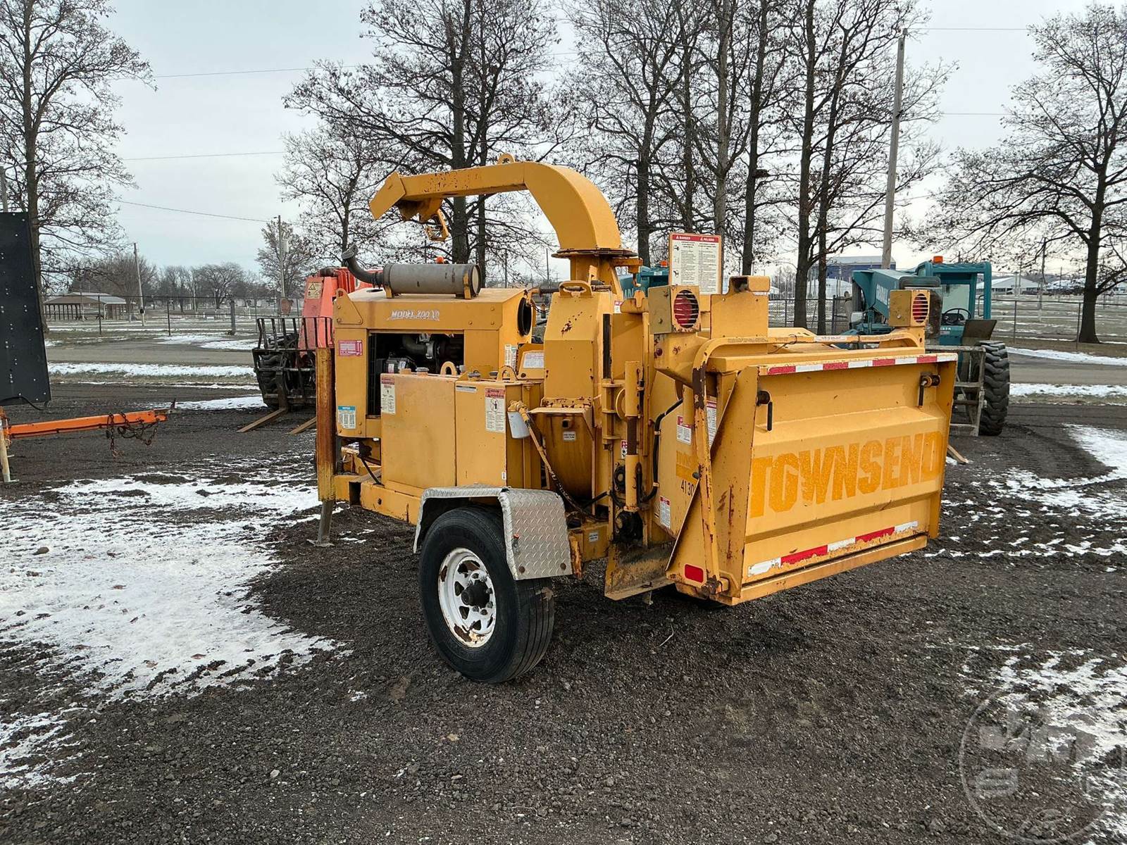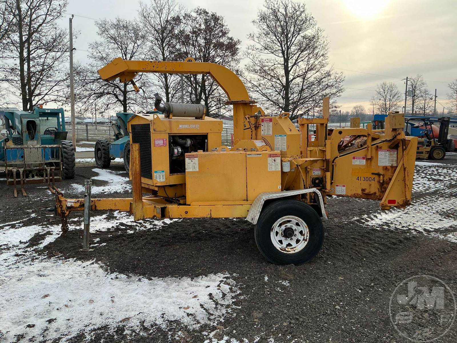 PORTABLE CHIPPER, PINTLE HITCH, GAS, SWIVEL DISCHARGE CHUTE, HOUR METER READS: 1404, ***KEY BROKEN OFF IN IGNITION, COMES W/ SPARE KEY***