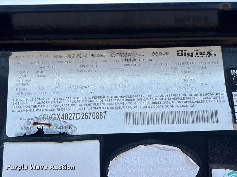 2013 Big Tex 22GN Flatbed Trailer