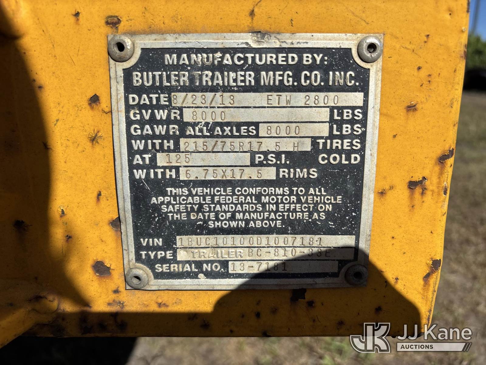 2013 Butler BC-810-33E S/A Tagalong Utility Trailer, with 10 ft. long, (Body & Paint Damage) (FL Residents Purchasing Titled Items – tax, title & registration fees will be collected at the maximum rate of $400.00 under 25,999 and $800.00 for Over 26,000 and $250.00 trailers – Proof of insurance is mandatory; Out of State Residents Purchasing Title Items – tax will be collected based upon your state rate.) This is a Titled Item NOTE: This unit is being sold AS IS/WHERE IS via Timed Auction and is located in Westlake, FL. Inspection & preview days for this unit are the 2 business days prior to the first day of items closing for this auction, item is located at 4003 Seminole Pratt Whitney Rd Westlake, FL 33470 and hours of operations are 8a-4p. For pre-sale questions, please contact: Matt Johnson @ (205) 847-9106. (Buyer is responsible for removal. Assistance by consignor or JJ Kane Auctions is not assured.)