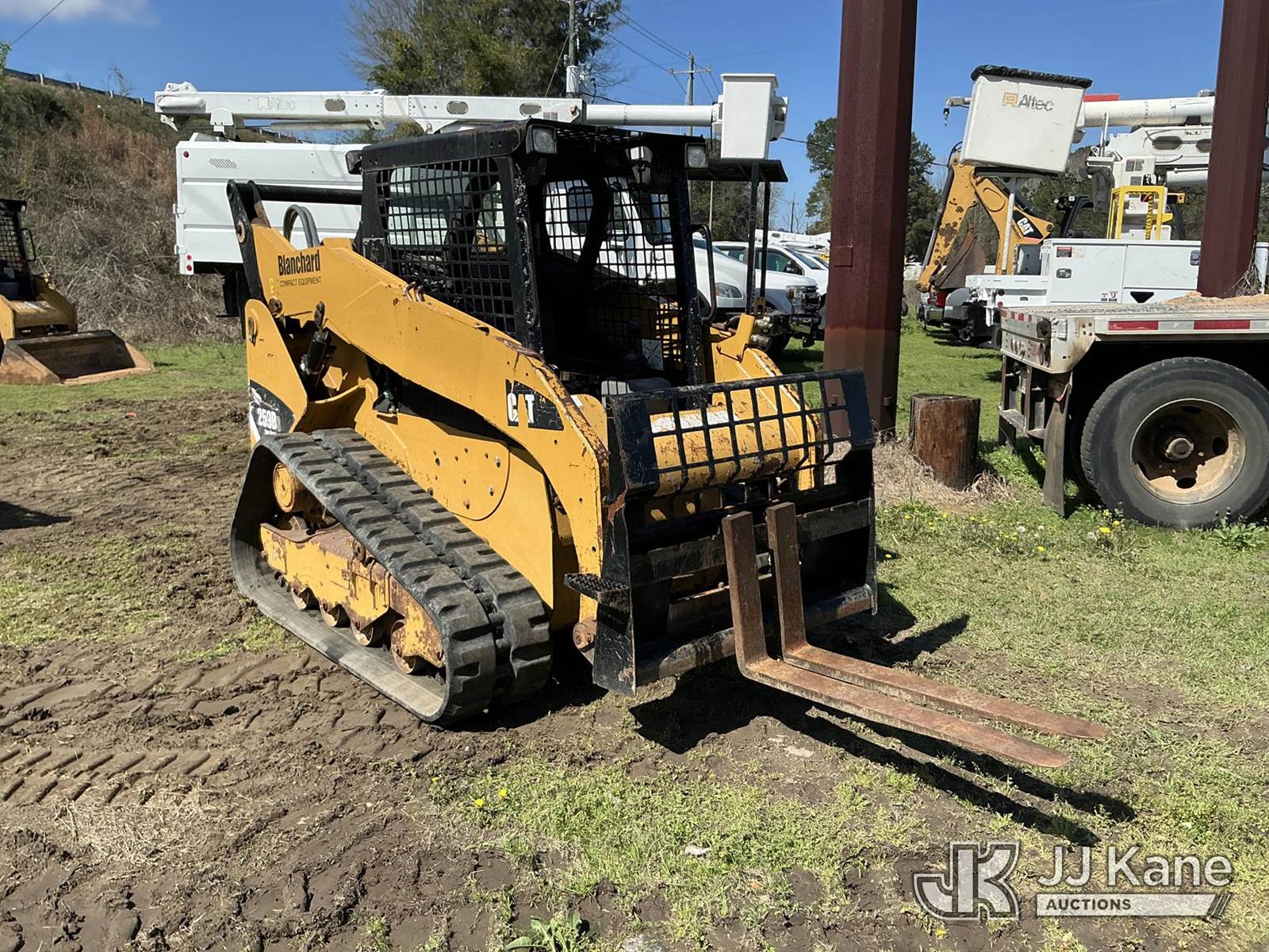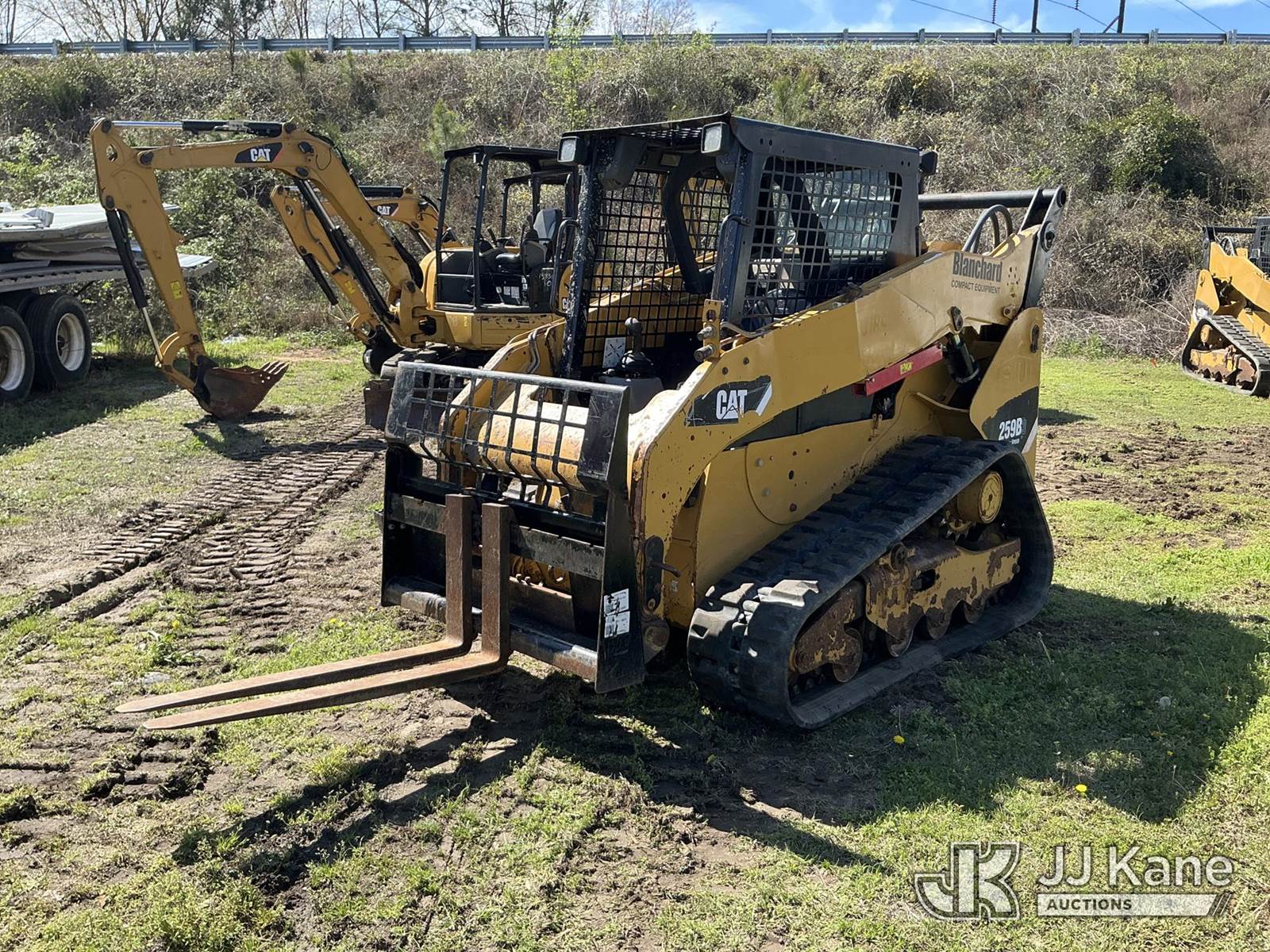 2013 Cat 259B3 Crawler Skid Steer Loader, s/n CAT0259BKYYZ04715, Cat C3.3 diesel, Hydrostatic, with forks, gp bucket, aux hydraulics, rubber tracks, ROPS, (Runs, Moves, Hydraulics Operate) (Reads 3,148 hours) NOTE: This unit is being sold AS IS/WHERE IS via Timed Auction and is located in Florence, SC. Inspection & preview days for this unit are by appointment only; please contact us at contact@jjkane.com or 84-Go-JJKane for more details. (Buyer is responsible for removal. Assistance by consignor or JJ Kane Auctions is not assured.)
