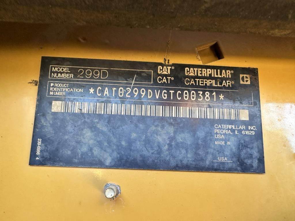 Location: Athens, TN 4 Cylinder Caterpillar Turbo Diesel Engine, Two Speed, Manual Quick Attach, High Flow Front Auxiliary Hydraulics, EROPS, Joystick Control, Heat, A/C, Radio, Air Ride Seat, Approx 18" Rubber Tracks Serial: CAT0299DVGTC00381 Hours Shown: 10331