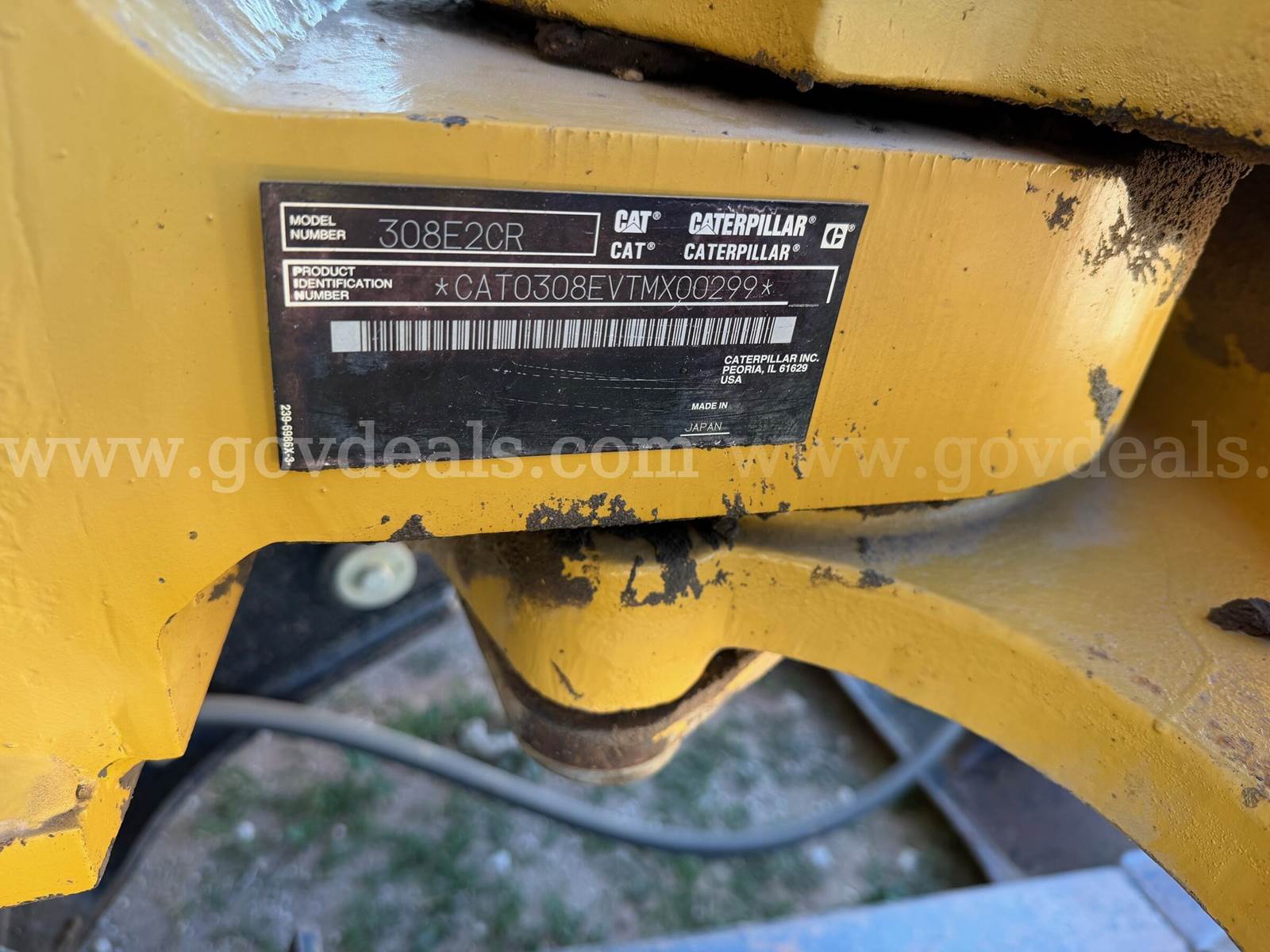 Caterpillar 308E2CR compact excavator equipped with a hydraulic boom and stick, digging bucket, and front dozer blade. Starts and Runs Check Engine Light On (Reason unknown) Fully Functional Has all windows and door Has AC/Heat Auxiliary Hydraulic Connections Cosmetic condition: Used; visible wear, rust on bucket and blade Hours: 4570 Maintenance records: Not available ***GovDeals.com – Online auction service for Federal, State, Local, Educational and Commercial Agencies where you can bid on and buy surplus assets.***