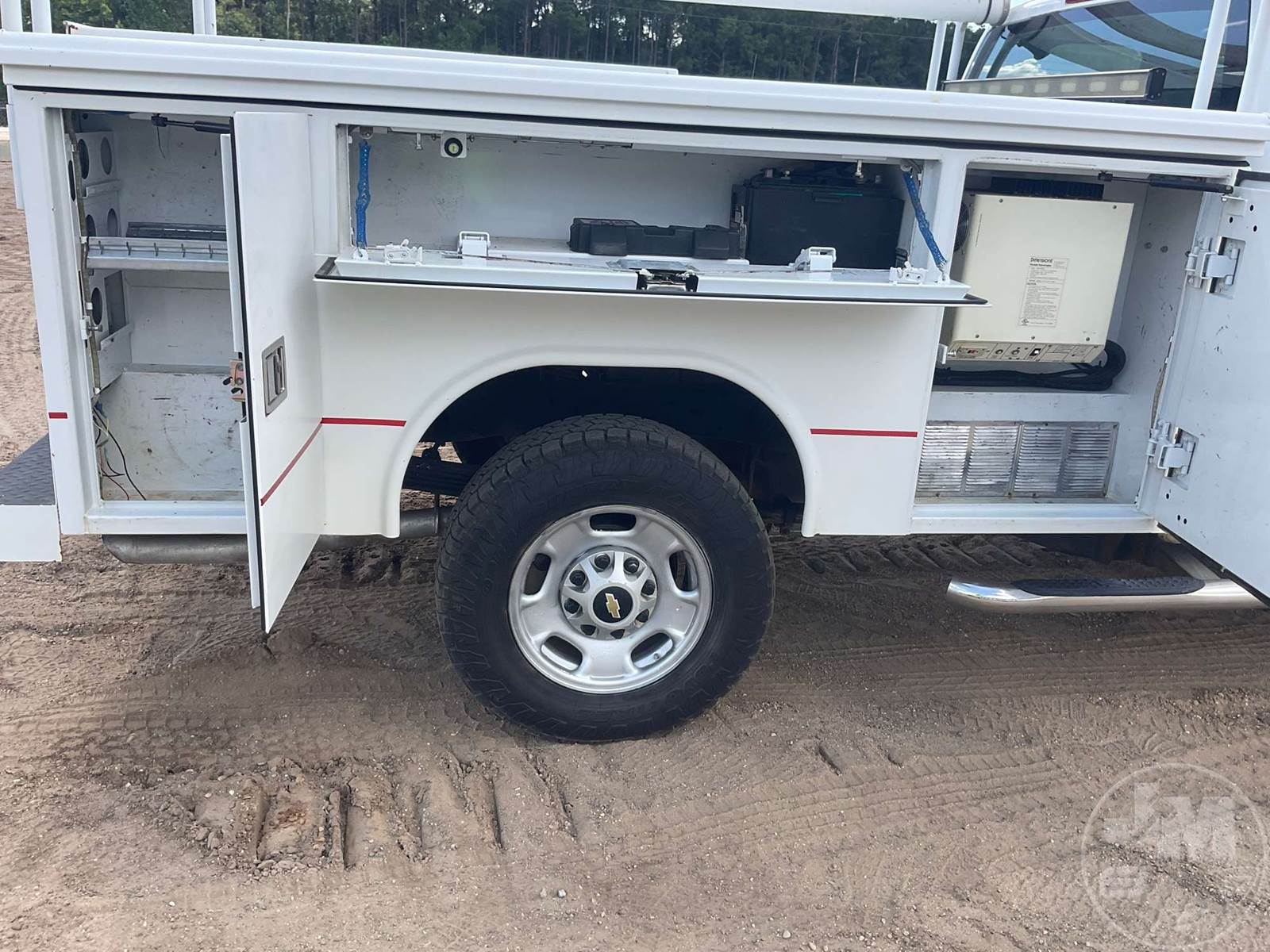 S/A UTILITY TRUCK, VORTEC 6.0L GAS , AUTOMATIC, 2X2, SPRING SUSPENSION, 160 " WB, READING, 8', UTILITY BODY, OVERHEAD PIPE RACK, STEEL DISC WHEELS, 245/75R17 TIRES, 3600 WATT INVERTER, LADDER RACK, COVERED SLIDE-OUT BED TRAY, 4400 FRONT, 6200 REAR, ODOMETER READS: 326675