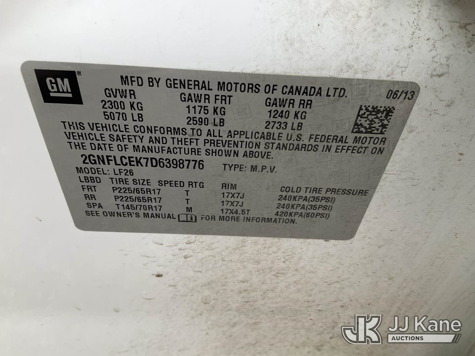 2013 Chevrolet Equinox LS AWD 4-Door Sport Utility Vehicle, s/n 2GNFLCEK7D6398776, 2.4L L4 DOHC 16V GAS, 6-Speed Automatic, A/C, (146,822 miles) (Runs & Moves, Engine Light On, Per Seller Needs Cat, Engine Knocking) (Bidding Restricted to Licensed Vehicle Dealers Only), This is a Titled Item NOTE: This unit is being sold AS IS/WHERE IS via Timed Auction and is located in Jurupa Valley, CA. Inspection & preview days for this unit are the 2 business days prior to the first day of items closing for this auction, item is located at 4510 Muth Way Jurupa Valley, CA 92509 and hours of operations are 8a-4p. For pre-sale questions, please contact please contact Office Staff @ (310) 353-7140. Dealer License Number 45696. (Buyer is responsible for removal. Assistance by consignor or JJ Kane Auctions is not assured.)