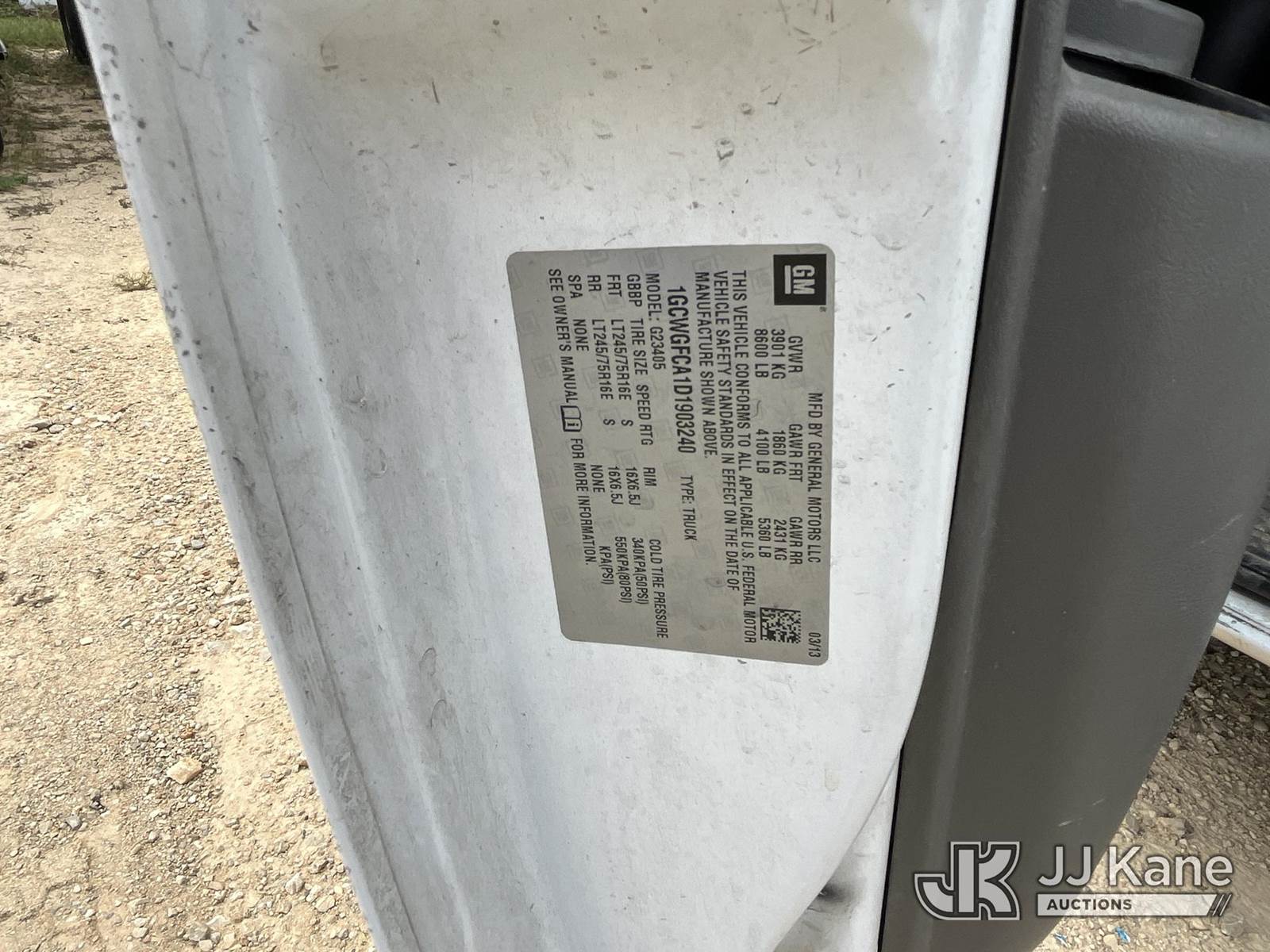 2013 Chevrolet Express 2500 Cargo Cargo Van, 4.8L V8 OHV 16V Gas Auto, RWD, A/C, (122,345 miles) (Not Running, Condition Unknown, Anti Theft Service Deterrent System Active, Won't Start Due To System Being Active, Check Engine Light, & Tire Pressure Light On) (Reads 6,201 hours) This is a Titled Item NOTE: This unit is being sold AS IS/WHERE IS via Timed Auction and is located in Houston, TX. Inspection & preview days for this unit are by appointment only; please contact us at contact@jjkane.com or 84-Go-JJKane for more details. For pre-sale questions, please contact Lowy Ghebre @ (281) 841-0069. (Buyer is responsible for removal. Assistance by consignor or JJ Kane Auctioneers is not assured.)