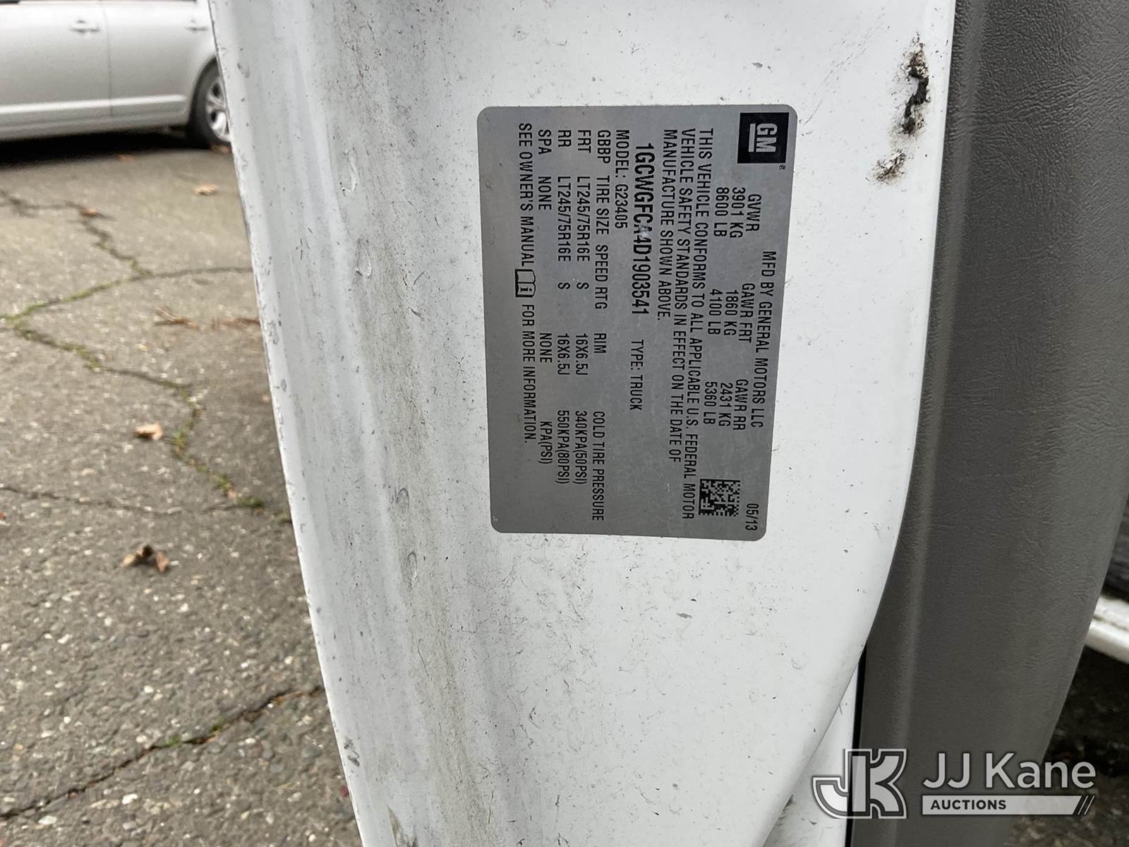 2013 Chevrolet Express 2500 Cargo Van, 8-cyl gas, 6-Speed Automatic, RWD, A/C, (71,919 miles) (Runs & Moves) (Rear Bumper Slightly Damaged) This is a Titled Item NOTE: This unit is being sold AS IS/WHERE IS via Timed Auction and is located in Dixon, CA. Inspection & preview days for this unit are the 2 business days prior to the first day of items closing for this auction, item is located at 8668 Sparling Ln Dixon, CA 95620 and hours of operations are 8a-4p. For pre-sale questions, please contact JJ Kane Staff at (707) 678-8060 (dixon@jjkane.com). Dealer License Number 45696. (Buyer is responsible for removal. Assistance by consignor or JJ Kane Auctions is not assured.)