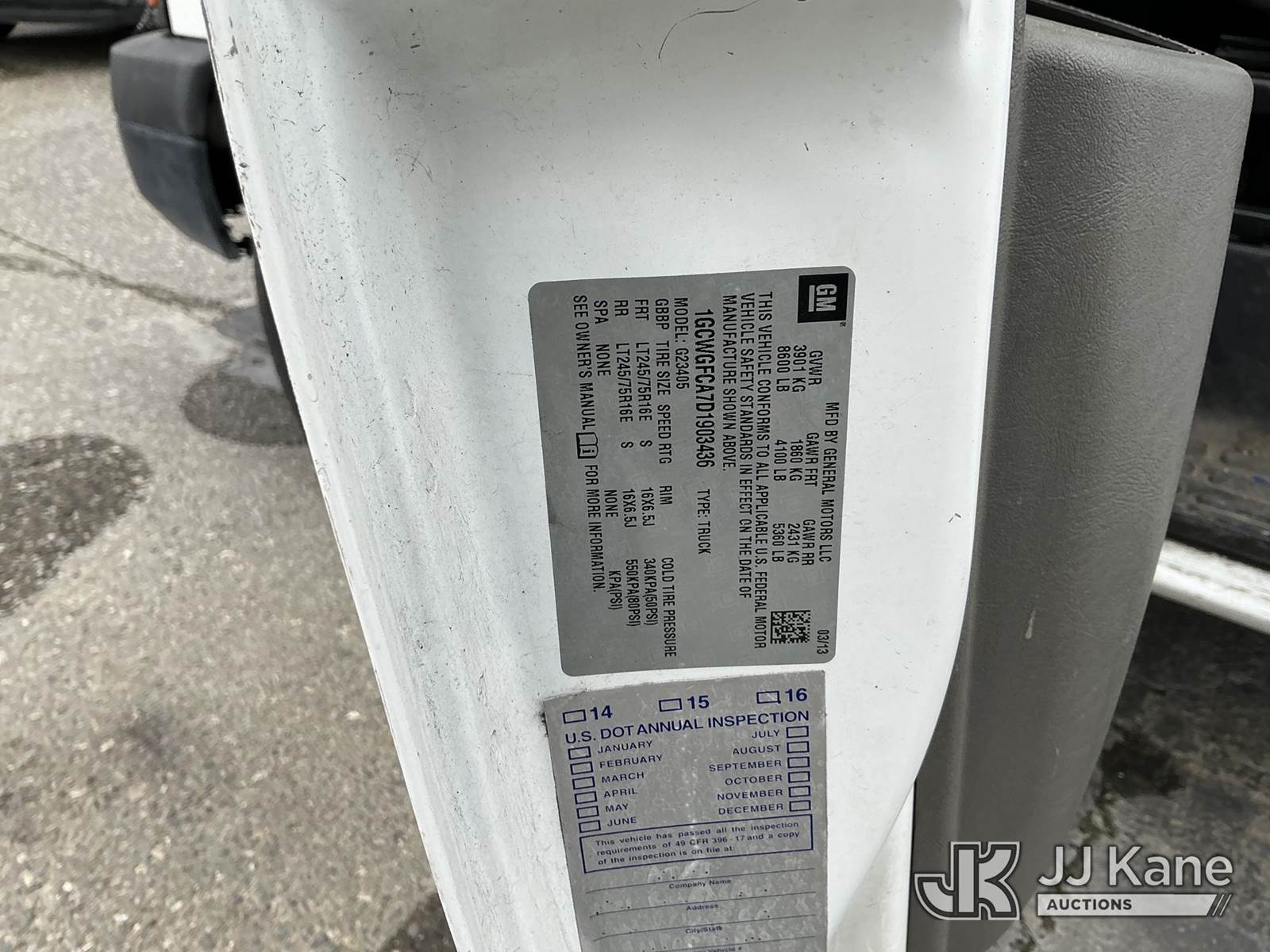 2013 Chevrolet Express 2500 Cargo Van, 8-cyl gas, 6-Speed Automatic, RWD, A/C, (85,103 miles) (Runs & Moves)(Passenger Seat Needs to Be Replaced, Side Cargo Doors Slightly Damaged) This is a Titled Item NOTE: This unit is being sold AS IS/WHERE IS via Timed Auction and is located in Dixon, CA. Inspection & preview days for this unit are the 2 business days prior to the first day of items closing for this auction, item is located at 8668 Sparling Ln Dixon, CA 95620 and hours of operations are 8a-4p. For pre-sale questions, please contact JJ Kane Staff at (707) 678-8060 (dixon@jjkane.com). Dealer License Number 45696. (Buyer is responsible for removal. Assistance by consignor or JJ Kane Auctions is not assured.)