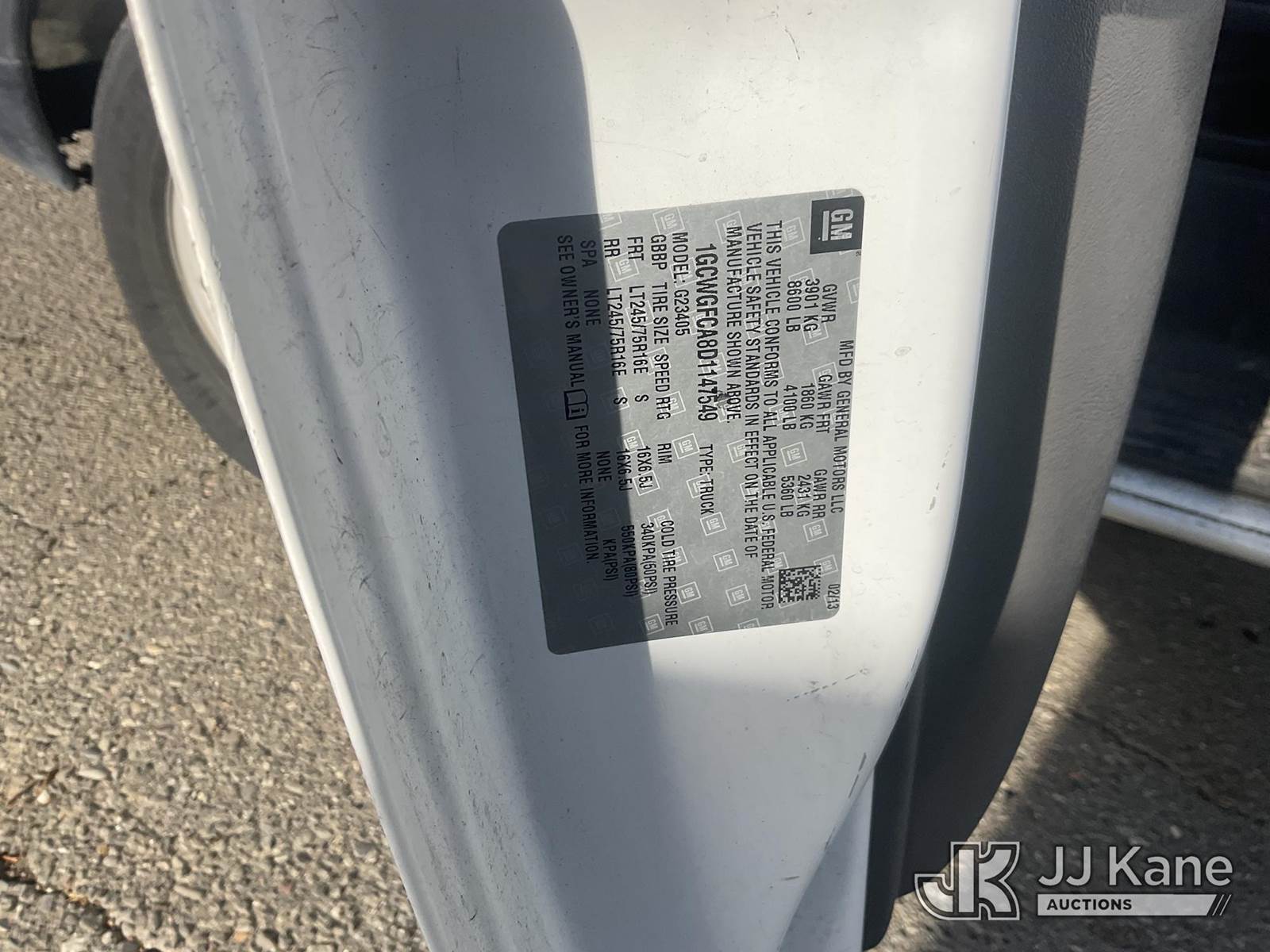 2013 Chevrolet Express 2500 Cargo Van, 8-cyl gas, RWD, 6-Speed Automatic, A/C, (73,196 miles) (Runs & Moves) (Rear Doors Damaged) This is a Titled Item NOTE: This unit is being sold AS IS/WHERE IS via Timed Auction and is located in Dixon, CA. Inspection & preview days for this unit are the 2 business days prior to the first day of items closing for this auction, item is located at 8668 Sparling Ln Dixon, CA 95620 and hours of operations are 8a-4p. For pre-sale questions, please contact JJ Kane Staff at (707) 678-8060 (dixon@jjkane.com). Dealer License Number 45696. (Buyer is responsible for removal. Assistance by consignor or JJ Kane Auctions is not assured.)