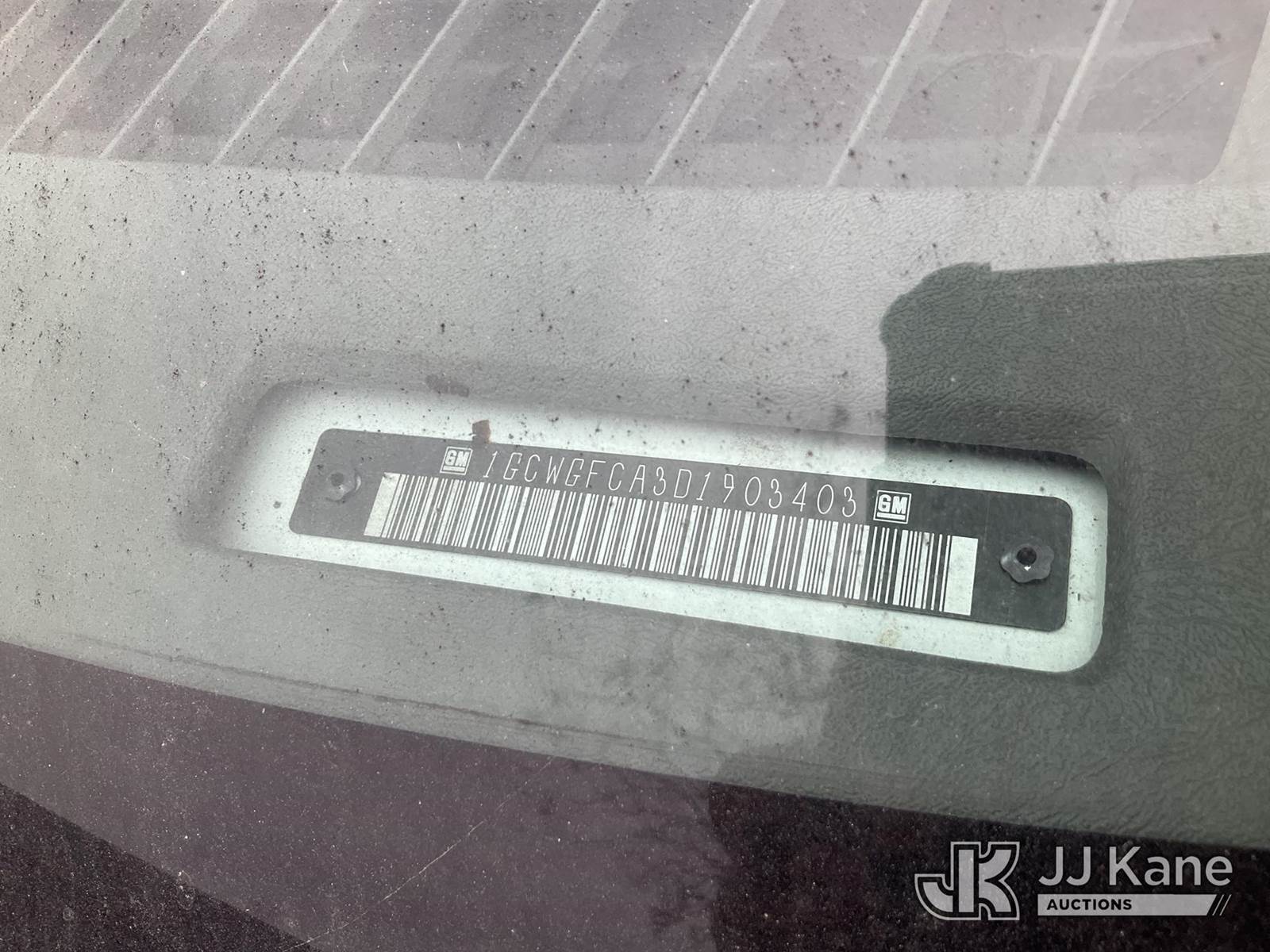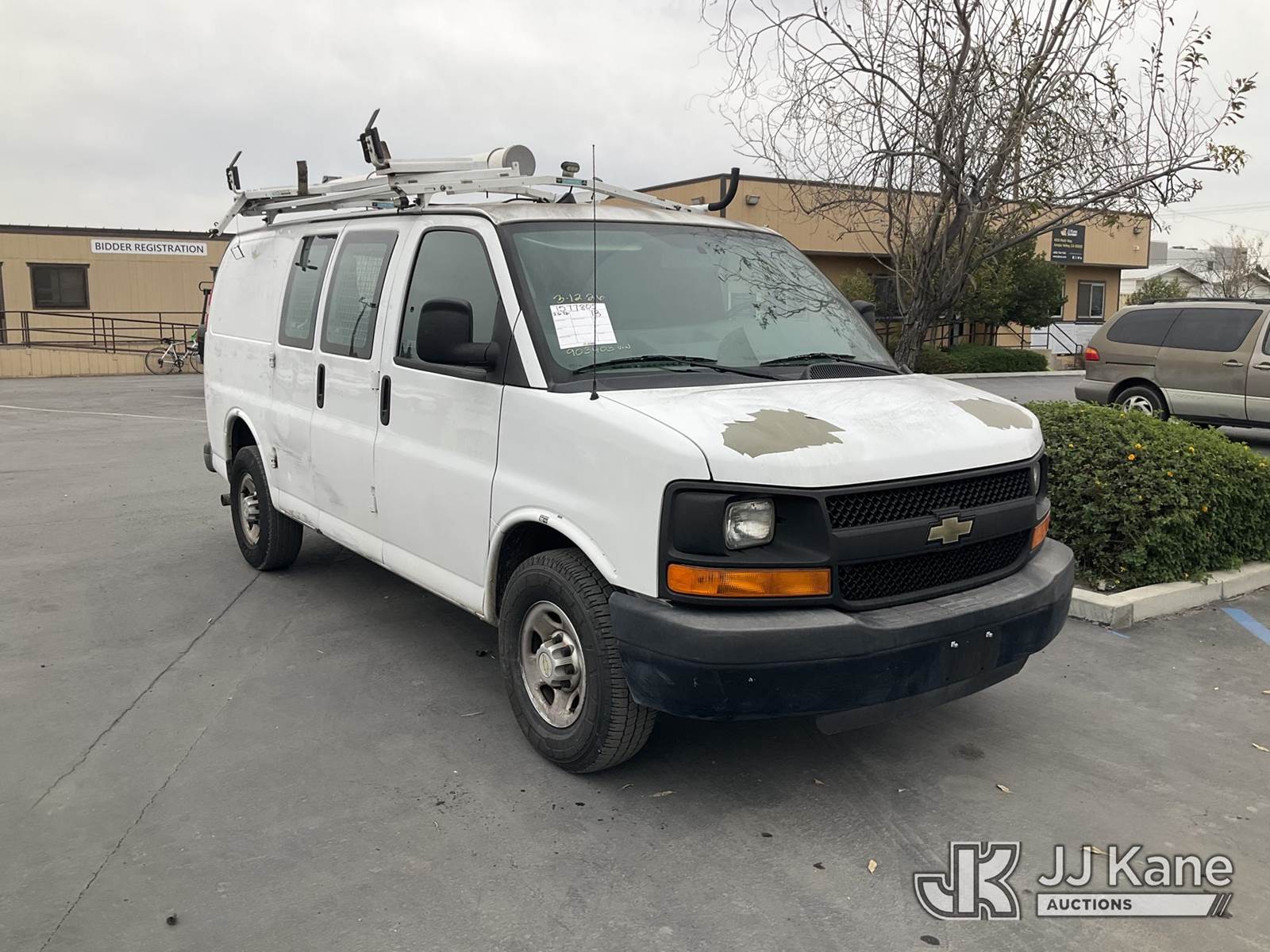 2013 Chevrolet Express 2500 Cargo Van, s/n 1GCWGFCA3D1903403, 8-cyl gas, RWD, 6-Speed Automatic, A/C, with tow package, (79,636 miles) (Runs & Moves) This is a Titled Item NOTE: This unit is being sold AS IS/WHERE IS via Timed Auction and is located in Jurupa Valley, CA. Inspection & preview days for this unit are the 2 business days prior to the first day of items closing for this auction, item is located at 4510 Muth Way Jurupa Valley, CA 92509 and hours of operations are 8a-4p. For pre-sale questions, please contact please contact Office Staff @ (310) 353-7140. Dealer License Number 45696. (Buyer is responsible for removal. Assistance by consignor or JJ Kane Auctions is not assured.)