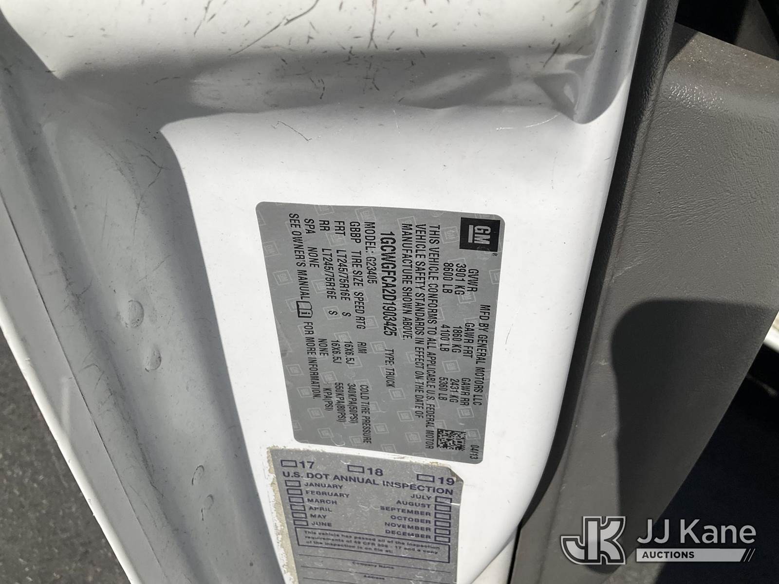 2013 Chevrolet Express 2500 Cargo Van, 4.8L V8 OHV 16V RWD, 6-Speed Automatic, A/C, with Metal Shelves, Ladder Rack, Tow Package , (122,427 miles) (Runs & Moves ) This is a Titled Item NOTE: This unit is being sold AS IS/WHERE IS via Timed Auction and is located in Jurupa Valley, CA. Inspection & preview days for this unit are the 2 business days prior to the first day of items closing for this auction, item is located at 4510 Muth Way Jurupa Valley, CA 92509 and hours of operations are 8a-4p. For pre-sale questions, please contact please contact Office Staff @ (310) 353-7140. Dealer License Number 45696. (Buyer is responsible for removal. Assistance by consignor or JJ Kane Auctions is not assured.)