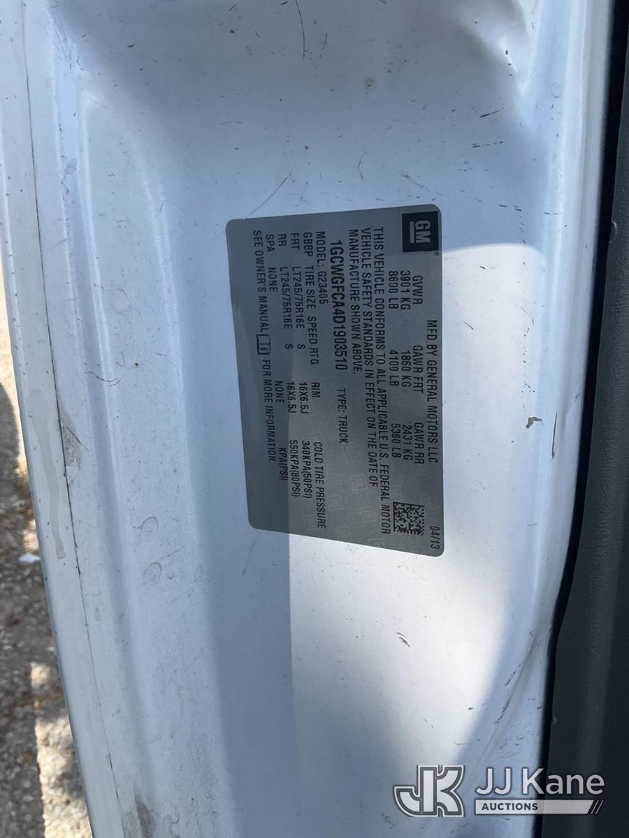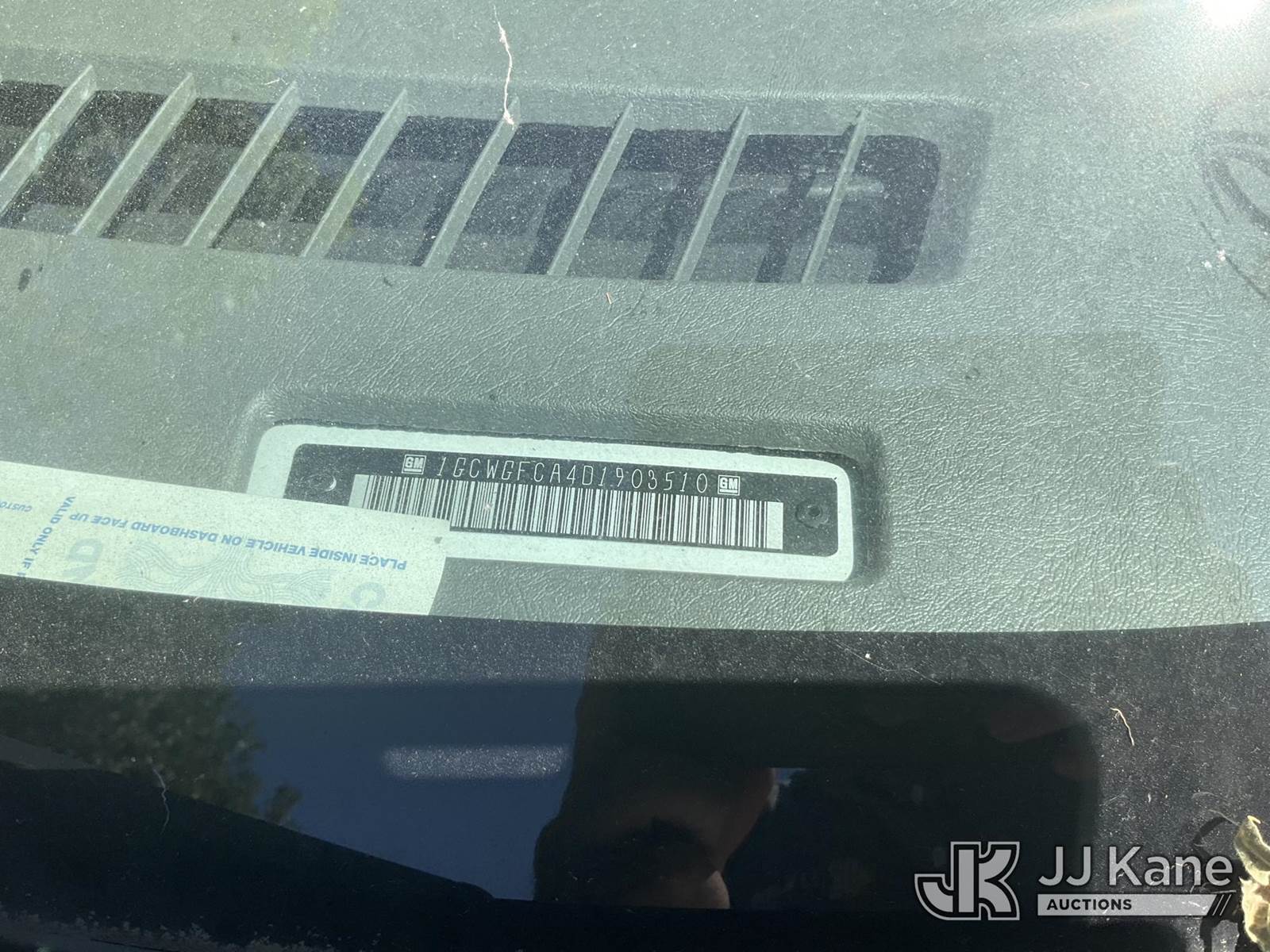 2013 Chevrolet Express 2500 Cargo Van, s/n 1GCWGFCA4D1903510, 4.8L V8 OHV 16V RWD, GAS, 6-Speed Automatic, A/C, with Roof rack, tow package, (124,381 miles) (Runs & Moves) This is a Titled Item NOTE: This unit is being sold AS IS/WHERE IS via Timed Auction and is located in Dixon, CA. Inspection & preview days for this unit are the 2 business days prior to the first day of items closing for this auction, item is located at 8668 Sparling Ln Dixon, CA 95620 and hours of operations are 8a-4p. For pre-sale questions, please contact JJ Kane Staff at (707) 678-8060 (dixon@jjkane.com). Dealer License Number 45696. (Buyer is responsible for removal. Assistance by consignor or JJ Kane Auctions is not assured.)
