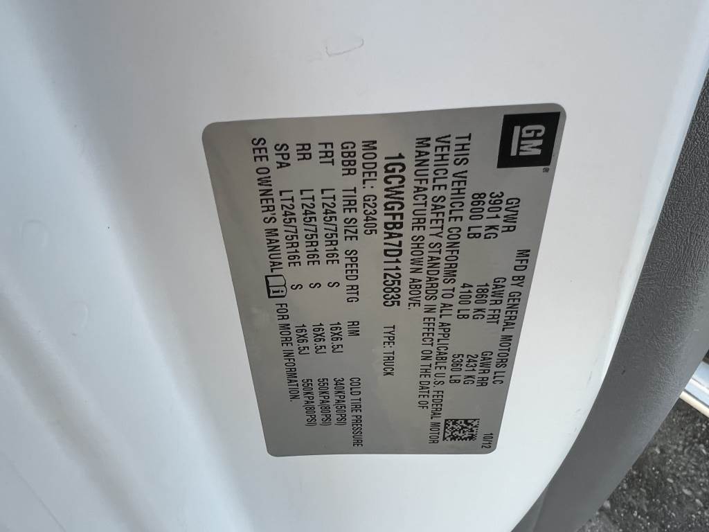 Location: Washougal WA ***End-User Consignment*** VIN: 1GCWGFBA7D1125835 Engine: 4.8L 8cyl Gas Transmission: Automatic *Body damage*, Ladder rack, Adrian Steel storage shelving, cab divider, 4,477 engine hours, cruise control, A/C, AM/FM, spring suspension, LT265/75R16 tires. Miles: 175,663