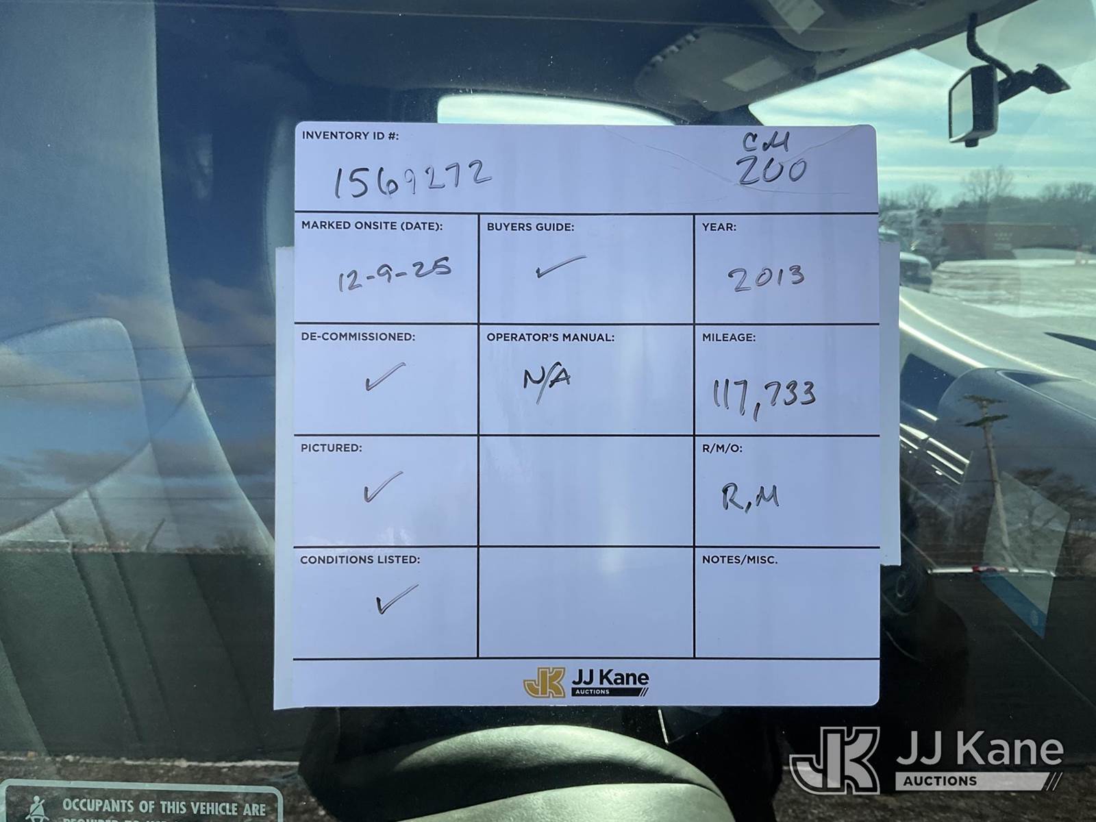 2013 Chevrolet Express G2500 Cargo Van, 8-cyl gas, Auto, A/C, with inverter, (117,733 miles) (Runs & Moves) (Passenger Door Won't Open From The Outside, Paint Damage, Cracked Windshield) (Reads 4,619 hours) This is a Titled Item NOTE: This unit is being sold AS IS/WHERE IS via Timed Auction and is located in Charlotte, MI. Inspection & preview days for this unit are the 2 business days prior to the first day of items closing for this auction, item is located at 750 Island Hwy Charlotte, MI 48813 and hours of operations are 8a-4p. For pre-sale questions, please contact Corey Cook at (517) 983-0796 or corey.cook@jjkane.com (Buyer is responsible for removal. Assistance by consignor or JJ Kane Auctions is not assured.)