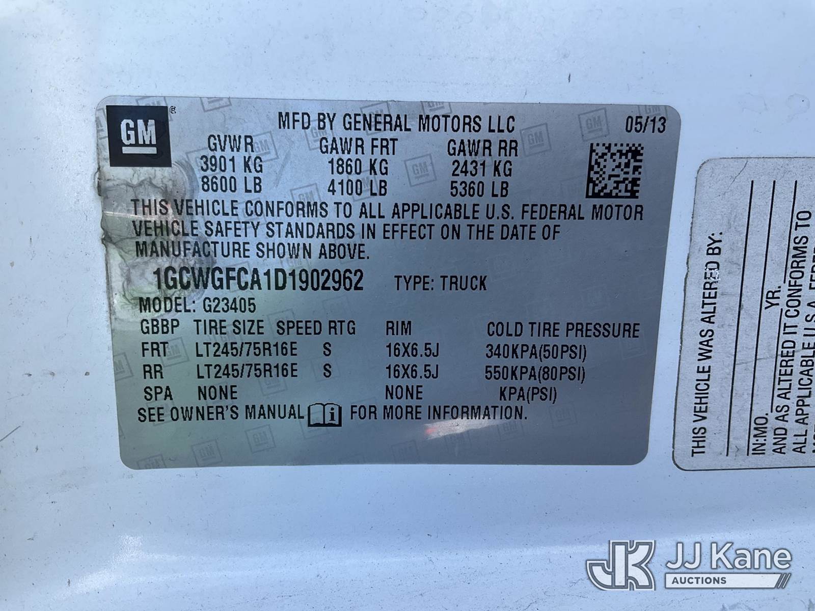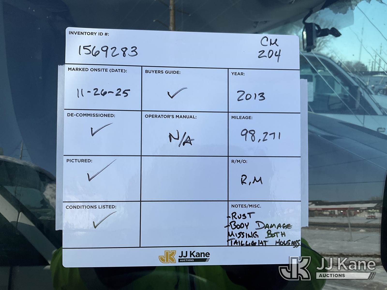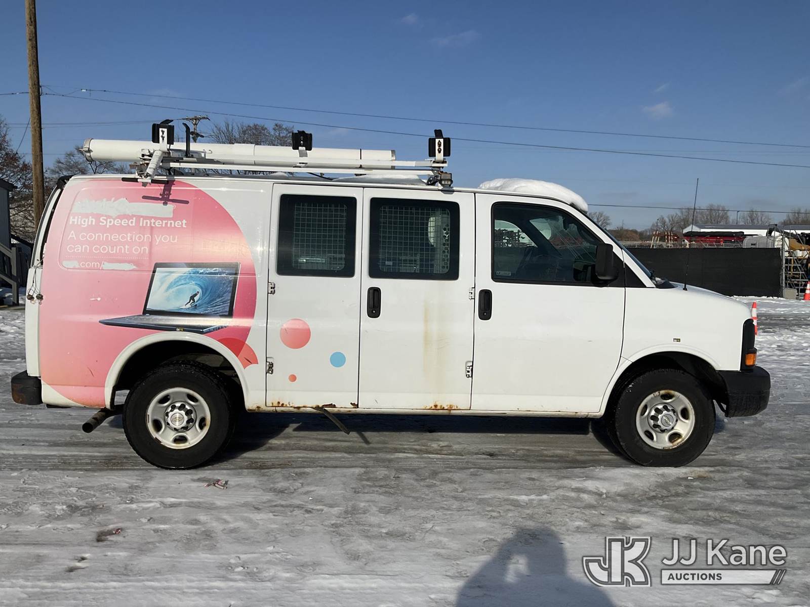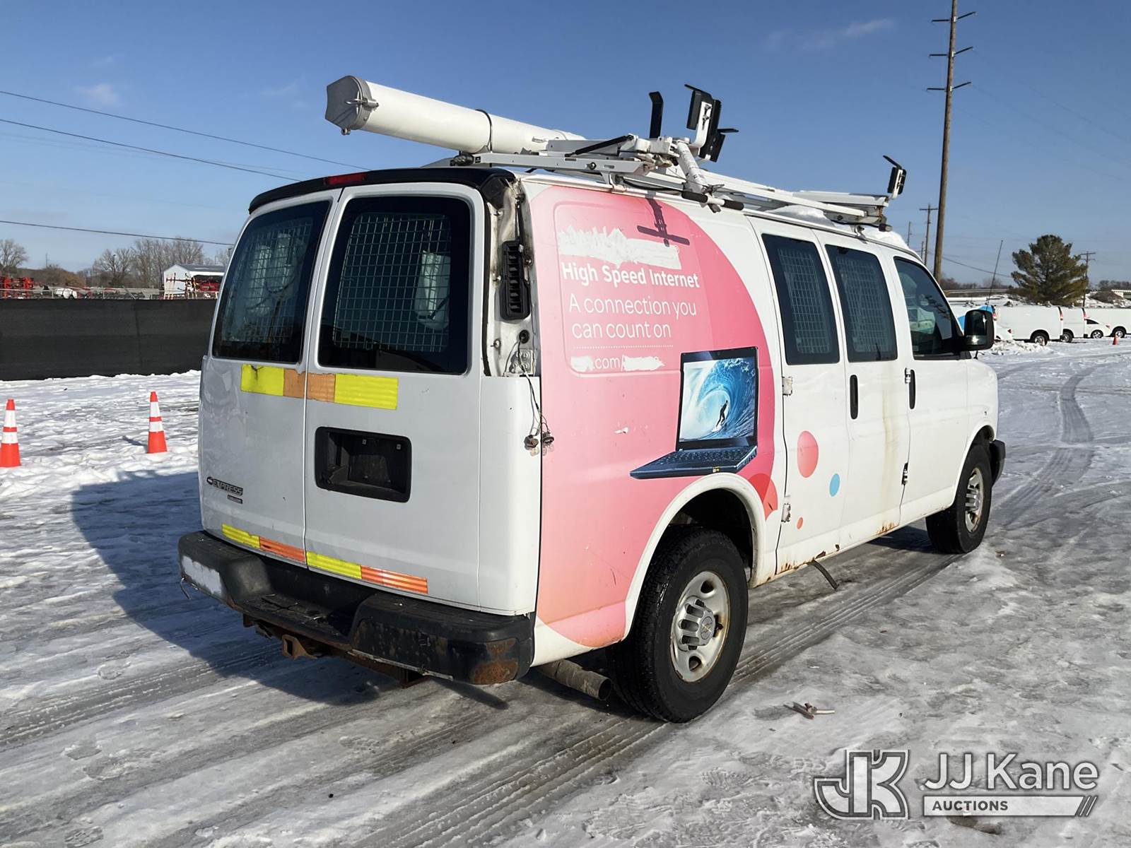 2013 Chevrolet Express G2500 Cargo Van, 8-cyl gas, Auto, A/C, with ladder rack, (98,271 miles) (Runs, Moves)(Missing Both Taillight Housings, Rust, Body Damage ) (Reads 4,626 hours) This is a Titled Item NOTE: This unit is being sold AS IS/WHERE IS via Timed Auction and is located in Charlotte, MI. Inspection & preview days for this unit are the 2 business days prior to the first day of items closing for this auction, item is located at 750 Island Hwy Charlotte, MI 48813 and hours of operations are 8a-4p. For pre-sale questions, please contact Corey Cook at (517) 983-0796 or corey.cook@jjkane.com (Buyer is responsible for removal. Assistance by consignor or JJ Kane Auctions is not assured.)